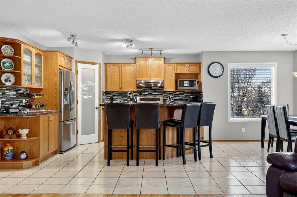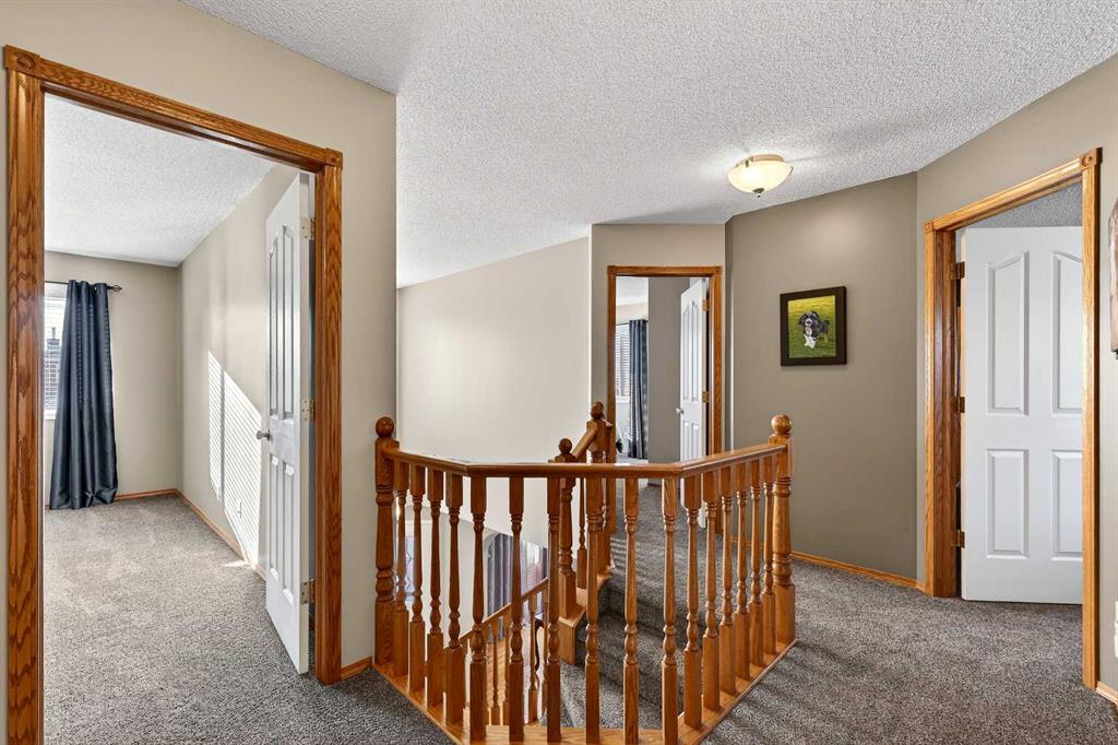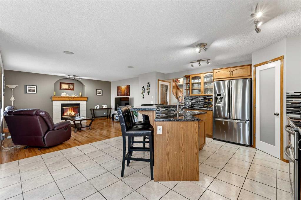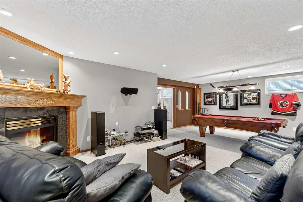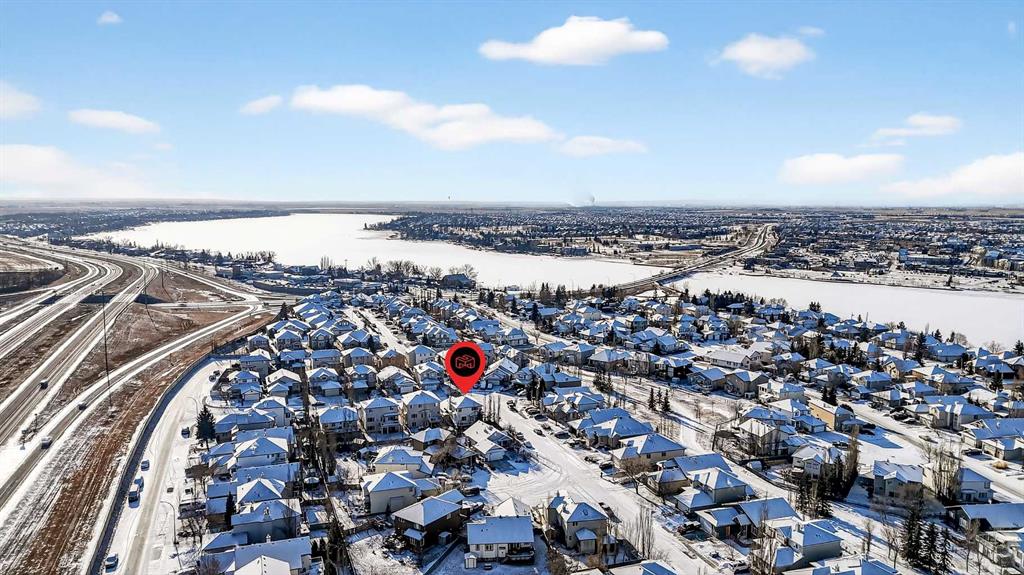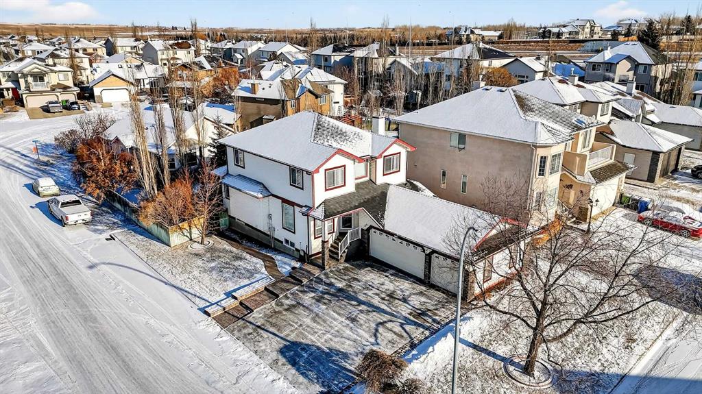 *** OPEN HOUSE Saturday, January 31, 2026 2pm – 4pm *** Just five minutes from Cove Beach, this beautifully updated home is tucked into a quiet street in the Cove, one of Chestermere’s most desirable neighbourhoods. With parks, restaurants, schools, and daily essentials nearby, the location offers unbeatable convenience and lifestyle. Curb appeal starts with an expansive driveway, complete with concrete steps, and clean exterior lines. Inside, a spacious foyer opens into a versatile front den or home office, plus a large formal dining room. The kitchen is both functional and elegant with stainless steel appliances, granite countertops, a large pantry, and a timeless backsplash. The open layout flows into a bright breakfast nook and generous living room with a cozy gas fireplace, ideal for hosting or relaxing. Upstairs, the oversized primary suite feels like a personal retreat, featuring a walk-in closet and a fully renovated ensuite with quartz countertops, soaking tub, dual vanities, and a glass-enclosed shower. Two more large bedrooms share a stylish four-piece bathroom. Downstairs is built for entertainment with a full wet bar, bar fridge, and a spacious rec room complete with a second fireplace and included pool table. Whether it’s game night or movie night, there’s room for it all. Step outside to a custom landscaped backyard with underground sprinklers, a stamped concrete patio, handcrafted bridge, storage shed, and large deck off the living room. Central air conditioning keeps the interior comfortable all year. The triple garage is heated, insulated, and includes hot and cold water, a floor drain system, and a new opener on the double door. This home also features elegant permanent exterior trim lighting for year-round curb appeal. With extensive upgrades, thoughtful layout, and prime location, this property is a rare find. Schedule your private showing today.