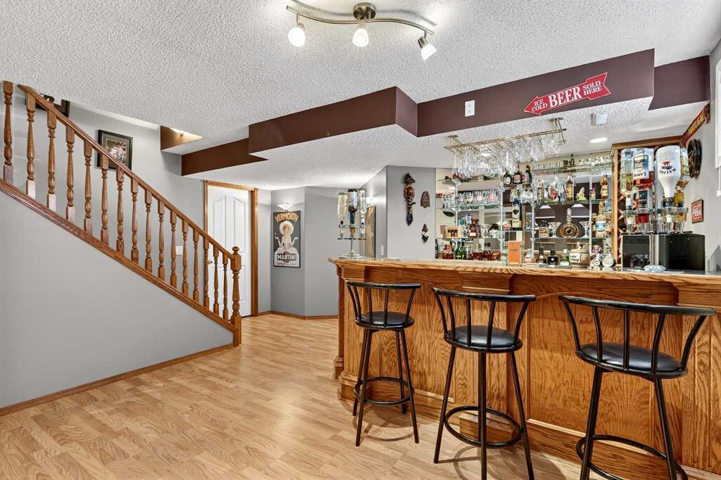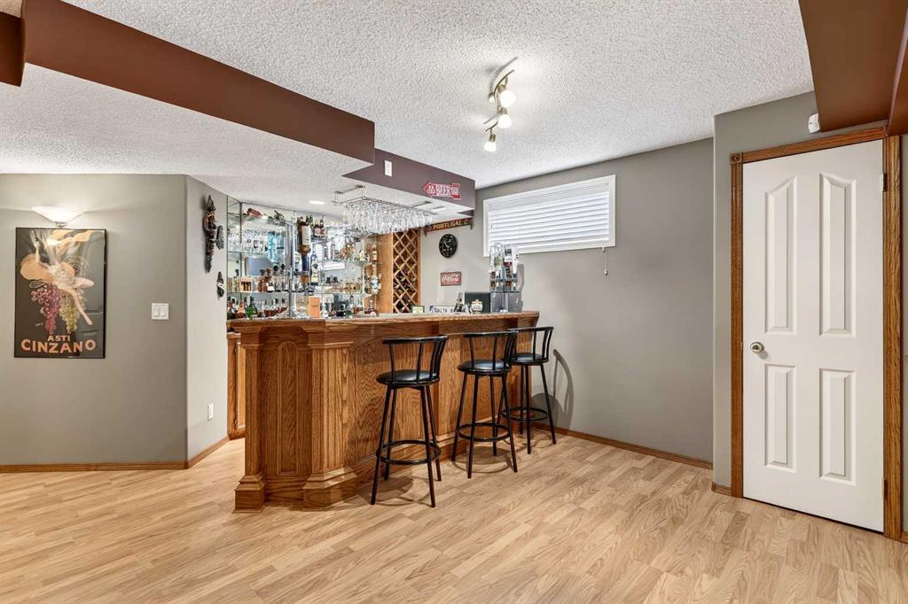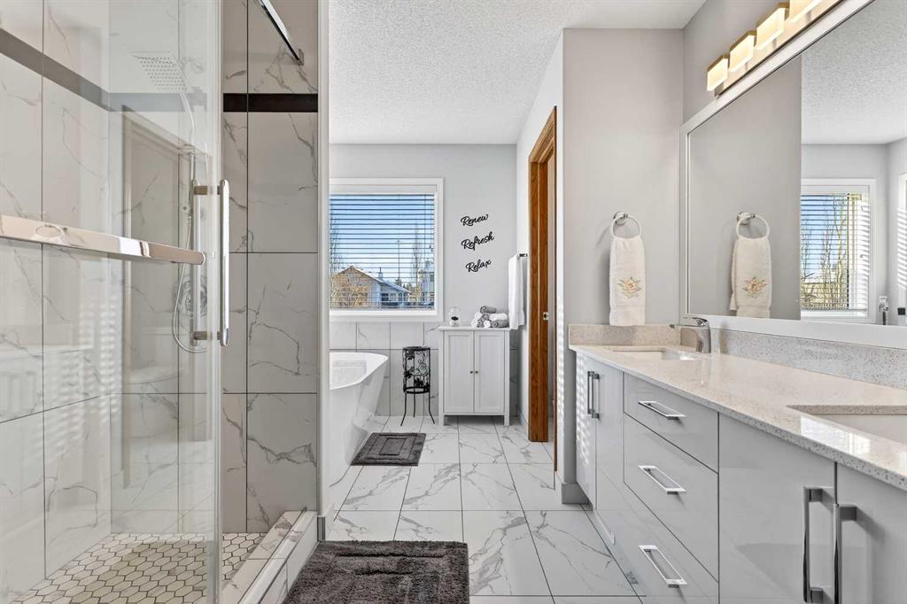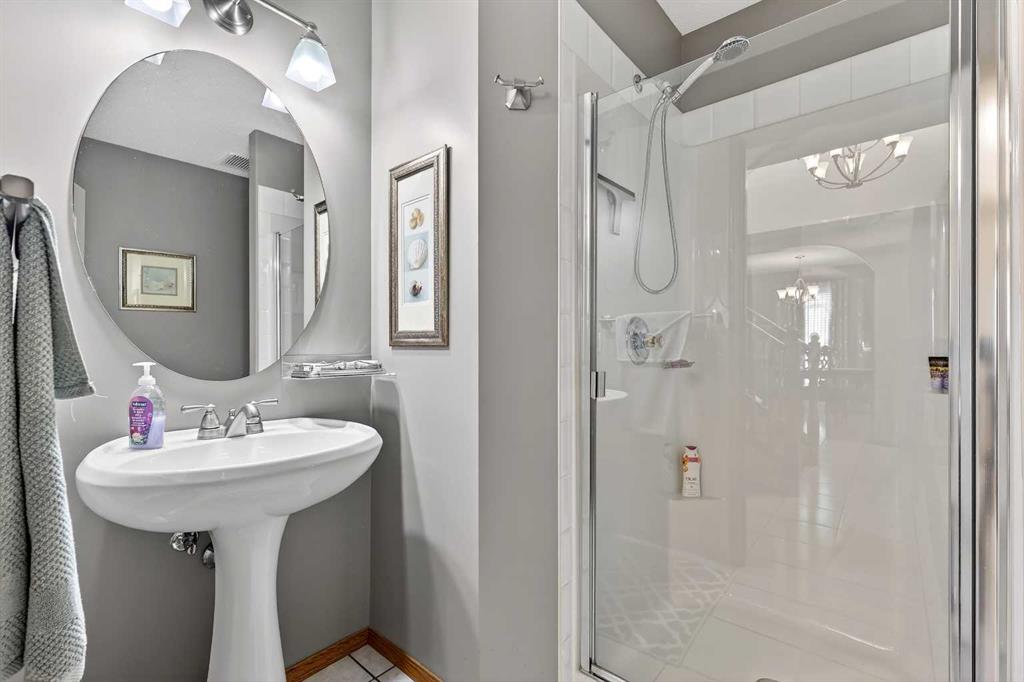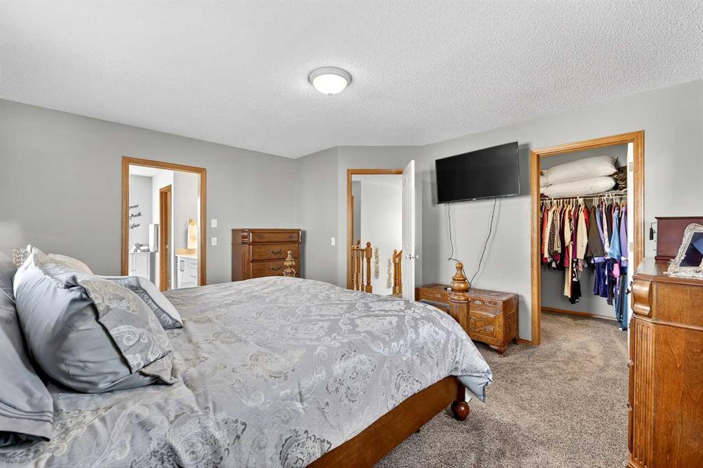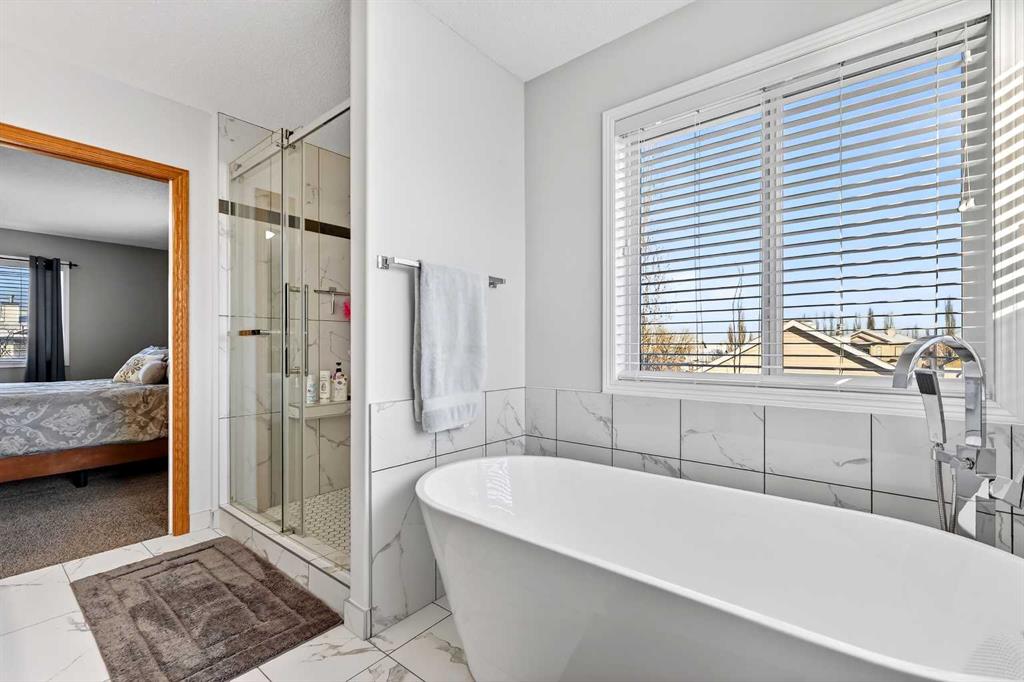 *** OPEN HOUSE Saturday, January 31, 2026 2pm – 4pm *** Just five minutes from Cove Beach, this beautifully updated home is tucked into a quiet street in the Cove, one of Chestermere’s most desirable neighbourhoods. With parks, restaurants, schools, and daily essentials nearby, the location offers unbeatable convenience and lifestyle. Curb appeal starts with an expansive driveway, complete with concrete steps, and clean exterior lines. Inside, a spacious foyer opens into a versatile front den or home office, plus a large formal dining room. The kitchen is both functional and elegant with stainless steel appliances, granite countertops, a large pantry, and a timeless backsplash. The open layout flows into a bright breakfast nook and generous living room with a cozy gas fireplace, ideal for hosting or relaxing. Upstairs, the oversized primary suite feels like a personal retreat, featuring a walk-in closet and a fully renovated ensuite with quartz countertops, soaking tub, dual vanities, and a glass-enclosed shower. Two more large bedrooms share a stylish four-piece bathroom. Downstairs is built for entertainment with a full wet bar, bar fridge, and a spacious rec room complete with a second fireplace and included pool table. Whether it’s game night or movie night, there’s room for it all. Step outside to a custom landscaped backyard with underground sprinklers, a stamped concrete patio, handcrafted bridge, storage shed, and large deck off the living room. Central air conditioning keeps the interior comfortable all year. The triple garage is heated, insulated, and includes hot and cold water, a floor drain system, and a new opener on the double door. This home also features elegant permanent exterior trim lighting for year-round curb appeal. With extensive upgrades, thoughtful layout, and prime location, this property is a rare find. Schedule your private showing today.