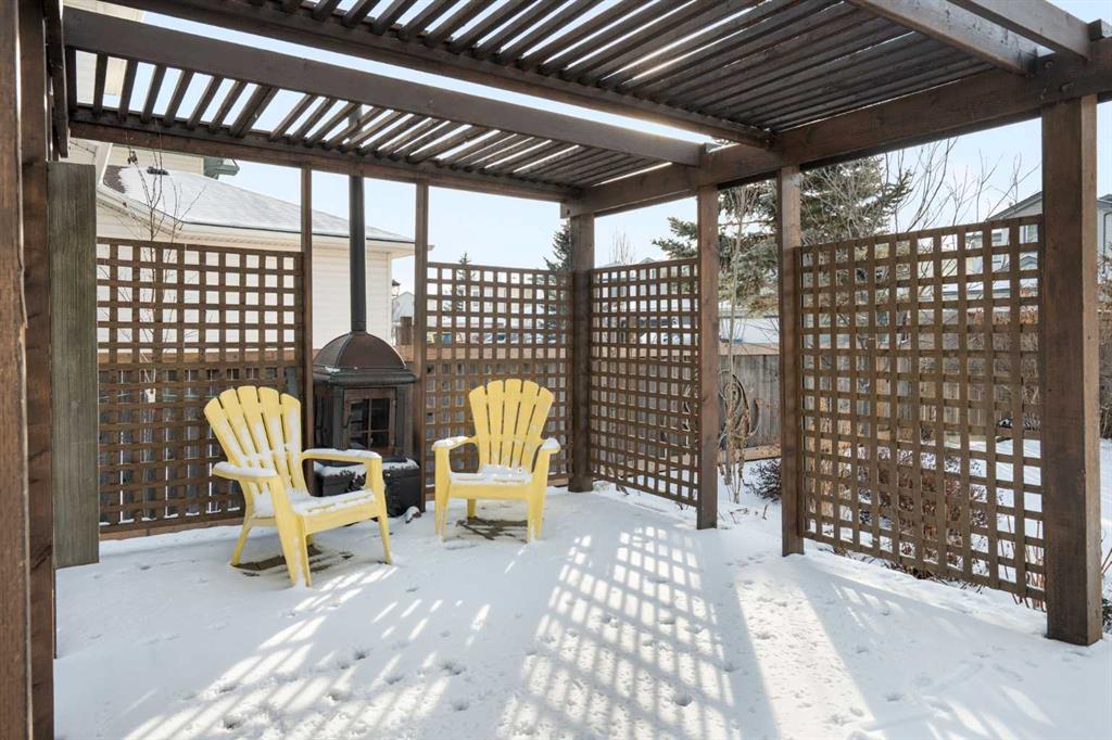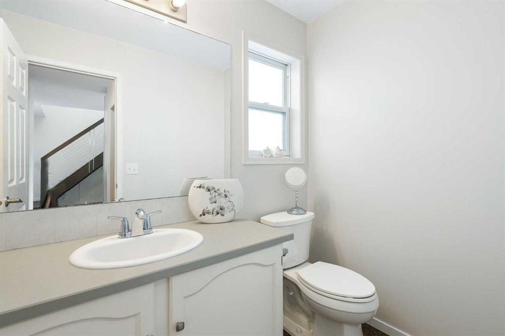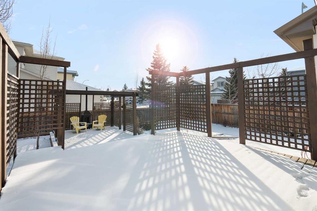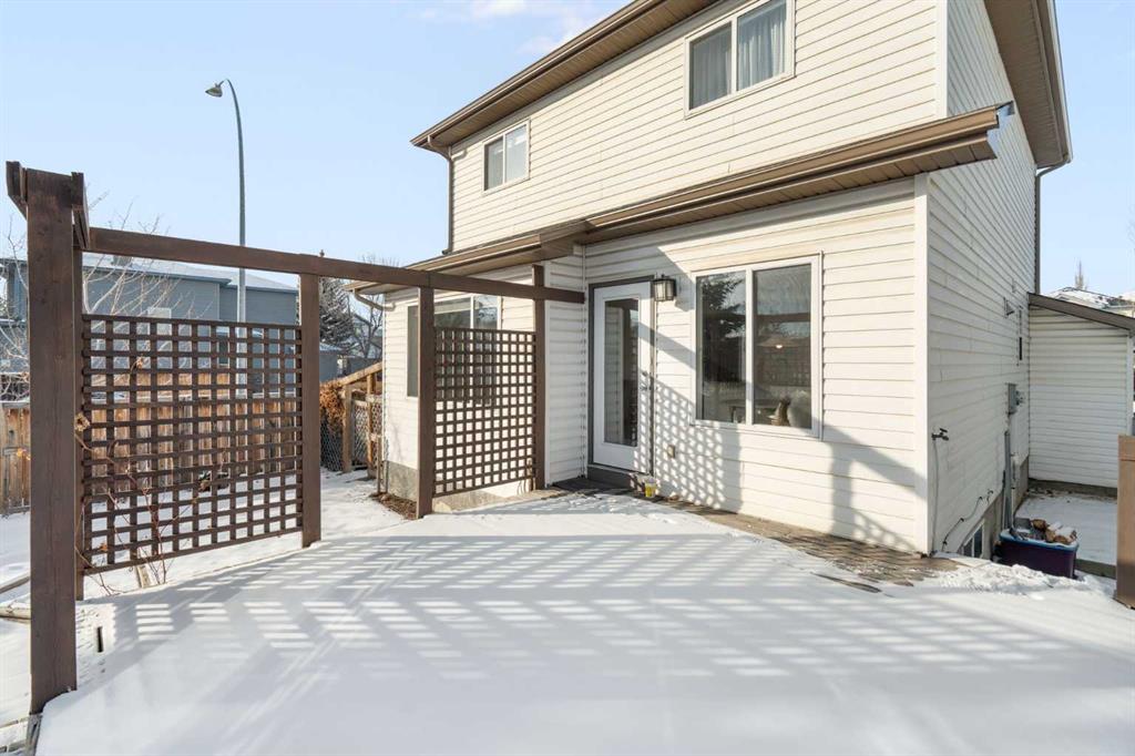 Welcome to this beautifully updated, spotless, 3-bedroom, 2.5-bath family home located on a corner lot in the desirable community of Harvest Hills, with the added bonus of NO sidewalks (on the side) to shovel. Offering fantastic curb appeal, the home features brand new siding, roof, soffits, fascia, and a new garage door on the double detached garage. Step inside from the front deck into a spacious foyer with abundant storage and a conveniently tucked-away main floor powder room. The contemporary open-concept layout showcases a stylish kitchen with new white cabinetry that flows seamlessly into the living room and dining area, where large south-facing windows fill the space with natural light. A sit up breakfast bar is perfect for entertaining! A french door off the dining room leads to the expansive deck and beautifully fenced, landscaped backyard, creating an incredible extension of living space perfect for summer enjoyment. Upstairs, you’ll find three generously sized bedrooms with ample closet spaces, and a four piece bathroom. The fully developed basement offers even more living space with a large family recreation room, full bathroom, and laundry area. A fourth bedroom could be easily added to the large, open space. Thoughtfully upgraded throughout and truly move-in ready, this home is an exceptional and rare find in a welcoming community close to major roadways, shopping, and amenities.