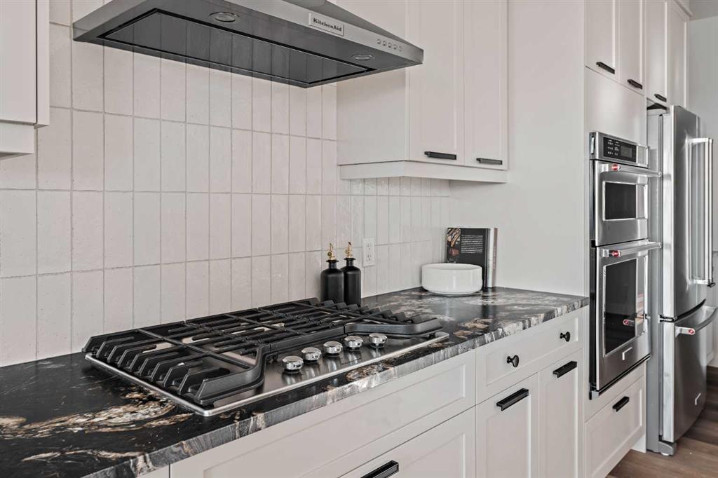 Welcome to the brand-new Accadia by Brookfield Residential, a thoughtfully designed home that blends modern luxury with functional living. Featuring 7 bedrooms and 5 bathrooms, including a legal 2 bedroom suite, this home is perfect for a large family, multi-generational living, or investors that want exceptional value today with incredible resale value long term in this versatile plan that provides endless opportunities. Perfectly situated on a 36' wide traditional lot with a 28’ wide home, this striking residence offers a seamless combination of style and comfort for today’s lifestyle. Elevated interior design carries throughout this stunning entire estate home, providing a timeless space where you'll not only be proud to live but excited to host and entertain. Step inside and be greeted by a bright, open-concept layout featuring 9’ ceilings throughout the main level, designed to maximize space and natural light. The main floor boasts a gourmet kitchen complete with under-cabinet lighting, built-in appliances including a gas cooktop, a full butler's pantry, and high-end finishes including two tone cabinetry with leather finish granite - all designed to make cooking and entertaining effortless. Adjacent to the kitchen, enjoy a spacious dining area with patio doors leading to the rear deck and expansive backyard. The dining space opens to the main living area which has a central fireplace with a beautiful arched surround. A wall of windows across the back of the home capitalize on the southwest backyard exposure - maximizing natural light all year long. Convenience and flexibility are at the heart of this home with a main-floor bedroom with full bathroom that features a tiled shower with 10mm glass, making it ideal for guests or multi-generational living. Natural wood & iron spindle railing lead to the upper level where you're greeted by an expansive central bonus room that separates the primary suite from the other three bedrooms - adding privacy & everyday functionality. The main primary suite spans the entire width of the home and overlooks the backyard, complete with a spa-like 5 pc ensuite with an oversized tiled shower with 10mm glass, soaker tub, tile wainscotting, dual vanity, private water closet & a sprawling walk-in closet. The upper level is complete with a second primary suite complete with its own full ensuite and walk-in closet. The upper level is rounded out with two more bedrooms (4 total), a 5pc main bathroom, laundry room and linen closet. The lower level offers a spacious 2 bedroom legal suite complete with a full kitchen, dining area, living room, bathroom and laundry - all accessed by its own private entry! Lastly, enjoy an oversized double attached garage and optimal sunshine in the private southwest-facing backyard. Additional upgrades include a suite of solar panels on the roof, providing added energy savings in this new home. With both builder’s warranty and Alberta New Home Warranty, enjoy complete peace of mind with your purchase.