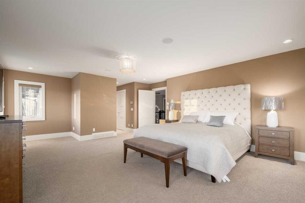 Experience the epitome of luxury living in this custom-built, two-story estate home nestled in prestigious Springbank Hill. Set on an expansive lot, this glorious home offers over 6,564 sq ft of meticulously designed living space, featuring 5 bedrooms (4 up, 1 down) and 6 bathrooms. Immerse yourself in breathtaking mountain and valley views, all while enjoying the home’s impressive curb appeal. Step inside to a grand foyer that opens to a sun-soaked living room adorned with massive floor-to-ceiling windows and a striking gas fireplace. The main floor also includes two elegant vanity bathrooms, a spacious mudroom with built-in storage and main floor laundry, and a dedicated home office with custom shelving. Entertain with ease in the formal dining room featuring vaulted ceilings, or gather in the expansive family room framed by wall-to-wall windows. The chef-inspired kitchen is a true masterpiece, showcasing double quartz islands with seating, high-end stainless steel appliances including a built-in oven and gas range, and a hidden walk-in pantry for optimal organization. The upper level boasts four generously sized bedrooms, a stylish 4-piece bathroom, a 3-piece bathroom, a study area with dual built-in desks, and a second laundry room. The lavish primary suite is a private sanctuary complete with double walk-in closets and a luxurious 5-piece ensuite featuring a soaker tub, dual vanities, and a steam shower. The walkout basement is an entertainer’s dream, offering a 5th bedroom, a full bathroom with another steam shower, a home theatre with projector and screen, a recreation room with abundant natural light, a cozy gas fireplace, and a full wet bar complete with a stunning quartz island, wine room, and ample storage. Additional upgrades include luxury hardwood flooring, triple-glazed low-E windows, three furnaces, central air conditioning, underground sprinklers, and a comprehensive audio and video security system. Outside, the professionally landscaped yard includes a private deck with a cedar pergola, an electric screen, and panoramic west-facing views. A covered patio and exposed aggregate walkway lead to the heated triple tandem garage with extensive driveway parking. Conveniently located near some of Calgary’s top-rated schools, including Webber Academy, Rundle College, and Ernest Manning High School, with quick access to the Westside Rec Centre, LRT, and Stoney Trail. This is more than a home—it’s a lifestyle.