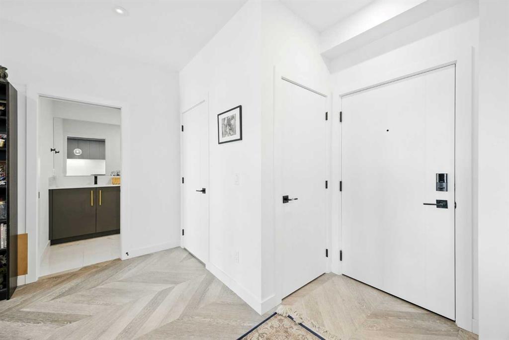 Bright top floor living with a quiet courtyard view and a southeast facing balcony. This 900 square foot 2 bedroom 2 bathroom home in Esquire offers high ceilings, a smart layout, and a clean modern finish package. The kitchen is built for real cooking with ceiling height cabinetry, quartz countertops, tile backsplash, a gas range, and a large island with seating. Herringbone vinyl plank flooring runs through the main living space, which is bright, open, and large enough for a dining setup plus a desk or study nook. Step outside to the southeast facing balcony and enjoy morning sun and evening unwind time overlooking the landscaped courtyard. The primary bedroom features a walk in closet and a 4 piece ensuite with dual sinks and a glass enclosed shower. A second bedroom and full bathroom add flexibility for guests, roommates, or a dedicated office. In suite laundry adds everyday convenience, and a titled underground parking stall keeps your vehicle secure and warm year round. Esquire residents enjoy premium amenities including a fitness centre, pet wash station, and bike storage with maintenance space. Steps from restaurants, cafes, grocery options, parks, pathways, and the off leash area, with quick access to the University of Calgary, Foothills Medical Centre, Alberta Children’s Hospital, and Market Mall. Book your showing today.