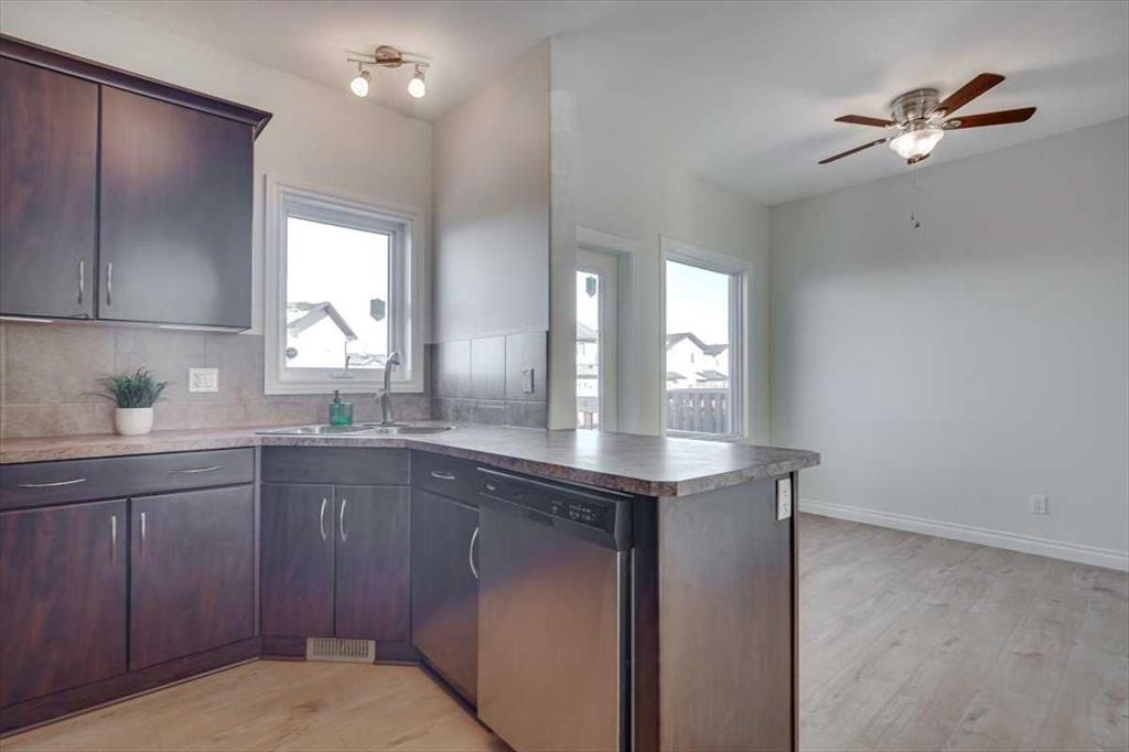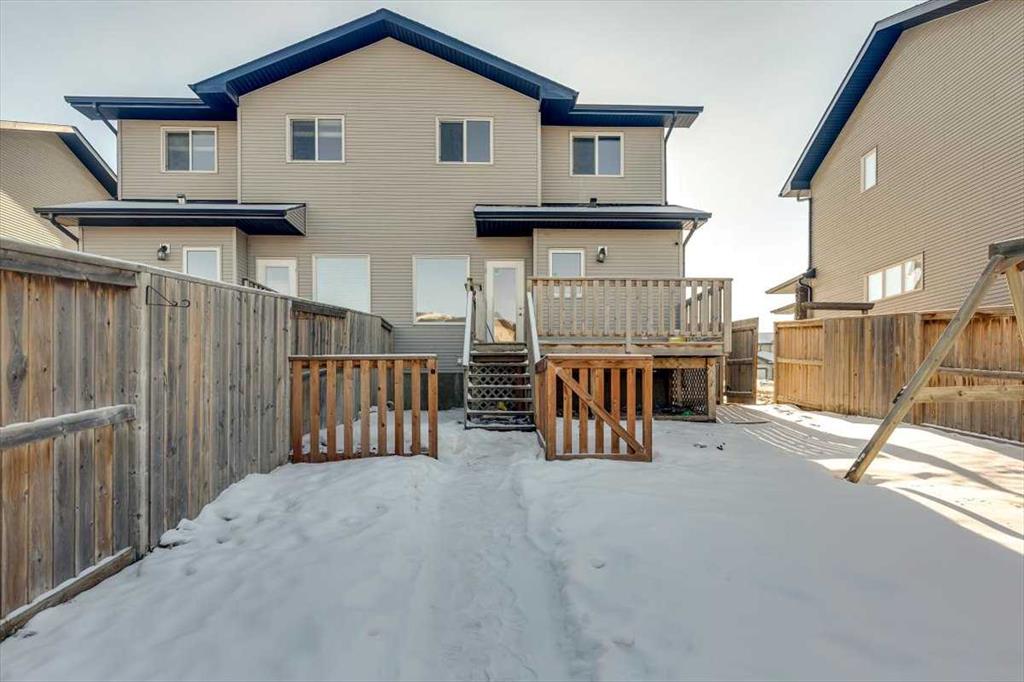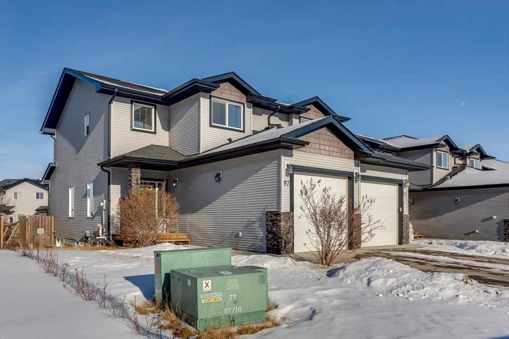 Welcome to 97 Piper Close in Blackfalds, a beautifully maintained and move-in-ready half duplex located on a quiet close in the sought-after Panorama Estates neighbourhood. This inviting two-storey home offers approximately 1,300 sq ft of above-grade living space plus a fully finished basement, providing an ideal layout for families, first-time buyers, or investors . In January 2026, the home received a series of thoughtful updates including new flooring on the main level, new carpet throughout the upper floor and stairways, fresh modern paint, and updated bathroom fixtures, giving the interior a clean, refreshed, and contemporary feel. The current owners have meticulously cared for the property, ensuring it is truly turnkey and ready for its next family. The main floor features a bright and welcoming living room, a convenient 2-piece bathroom, and an open kitchen and dining area perfect for everyday living and entertaining. The kitchen offers ample cabinetry, crown moulding accents, black appliances, a walk-in pantry, and direct access to the rear deck — ideal for summer barbecues and outdoor relaxation . Upstairs, you’ll find three generously sized bedrooms and a full 4-piece bathroom, including a comfortable primary bedroom complete with a walk-in closet. The fully developed basement adds excellent flexibility with a spacious recreation room, fourth bedroom, full bathroom, laundry area, and additional storage — perfect for guests, a home office, or a growing family. Additional highlights include a **front attached single garage**, fenced backyard, private outdoor space, and concrete driveway parking. Situated close to parks, playgrounds, schools, and walking trails, this home combines peaceful residential living with convenient access to community amenities. 97 Piper Close offers exceptional value, modern updates, and pride of ownership throughout — a fantastic opportunity to step into a well-cared-for home in one of Blackfalds’ most desirable neighbourhoods .