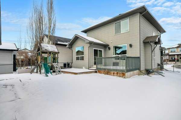 Presented by the original owners, this lovely home has been updated for a new family. New carpet, paint, and countertops are sure to impress. This home sits on a generous corner lot and features a large front porch. The home’s layout really takes everyone’s needs into account. There is a generous front foyer and a flex room at the front of the house that is perfect for a home office, TV room, or playroom. There is some good separation of the main floor, and the rear of the home opens up to a very spacious great room with living area, kitchen, and dining area which leads straight out to the deck for easy indoor/outdoor connection. Some of the upgrades include extra tall kitchen uppers, new kitchen counters and faucet, enlarged opening windows, and a gas fireplace. Completing the main floor are a half bath and a dedicated laundry room. The second floor features a primary suite at the front of the house with a walk-in closet and an ensuite bath with WC, large soaker tub, and separate shower as well as a vanity with plenty of counter space and a large window for natural light. The second floor also contains 2 more bedrooms and a main bath. The basement is unspoiled. It has 2 windows and a rough in for a future bathroom. Outside the back yard wraps around the side of the house for a truly big yard space. The back yard is fenced, has a great deck and kid’s play structure, and is completed with a double detached garage. A few other extras include central air conditioning, underground sprinklers, and permanent Christmas lights.