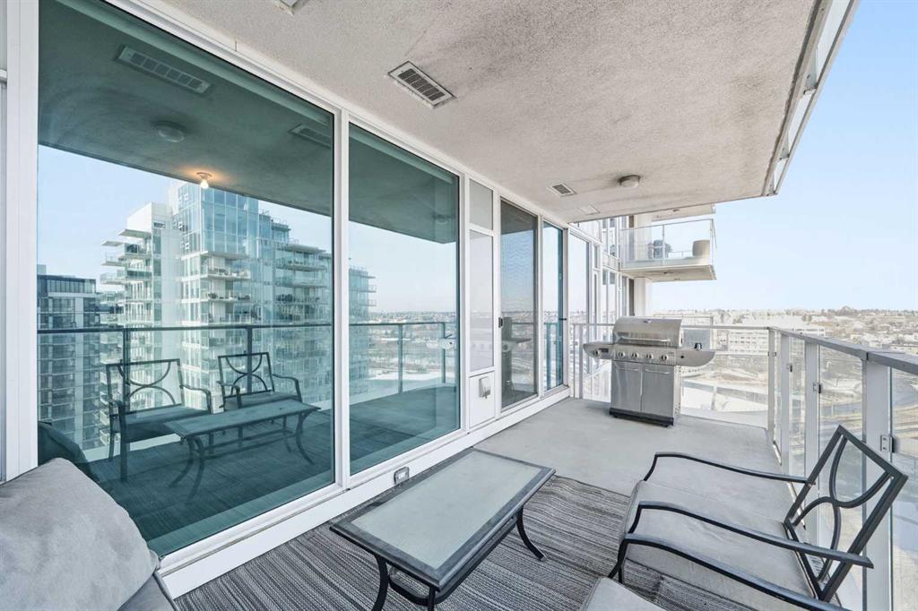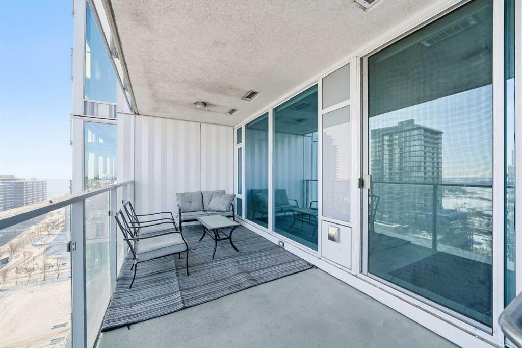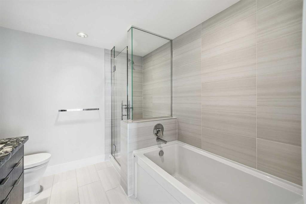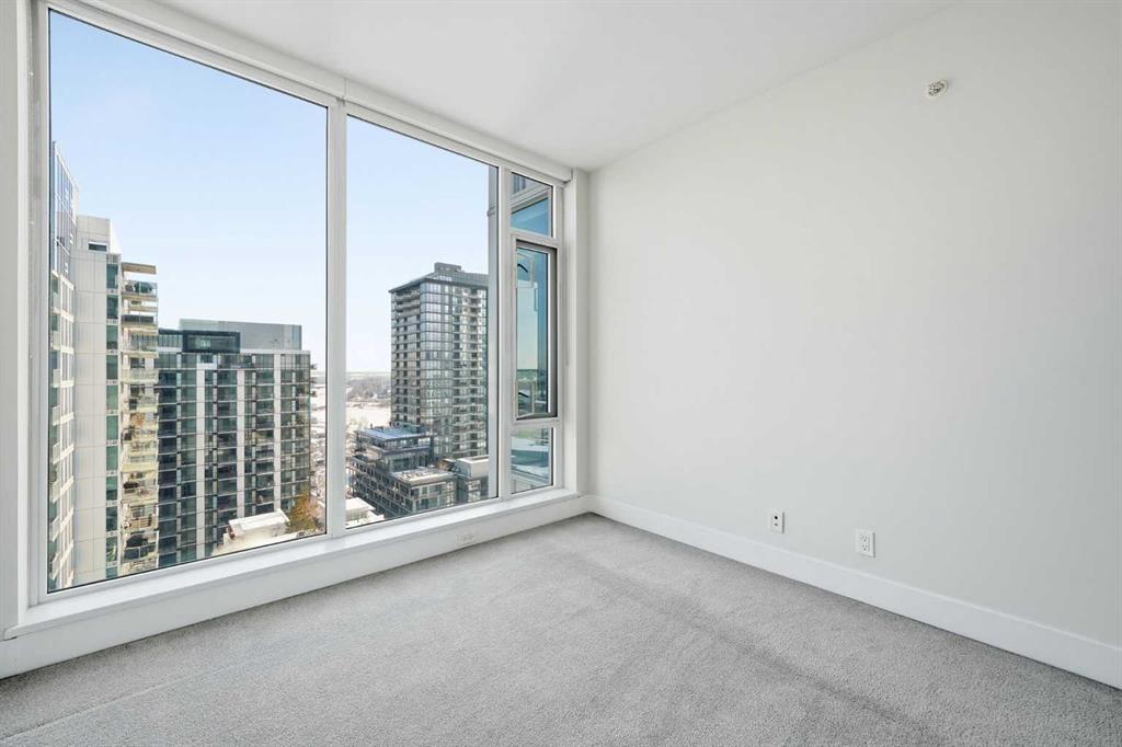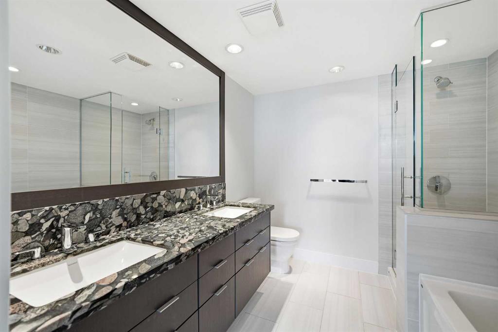 Welcome to this bright and beautifully maintained condo in the heart of East Village, one of Calgary’s most vibrant and walkable communities. This 2-bedroom, 2-bathroom suite in the highly sought-after Evolution complex offers exceptional value for buyers seeking upscale finishings, comfort, and long-term potential. Freshly painted and move-in ready, this modern home features a spacious open-concept layout with floor-to-ceiling windows that flood the space with natural light. The stylish kitchen is equipped with full-size stainless steel Jenn-Air appliances, granite countertops, and sleek cabinetry — perfect for both everyday living and entertaining. Heated tile floors in the bathrooms add an extra touch of luxury that today’s homeowners and renters alike will appreciate. The primary suite offers a walkthrough double closet and a generous ensuite complete with dual sinks, a soaker tub, and a separate shower. The second bedroom is thoughtfully positioned near the second full bathroom, making it ideal for guests, roommates, or a home office. Additional features include central A/C, in-suite laundry, underground parking, and assigned storage. Step outside to your large private balcony with a BBQ gas line and take in beautiful views toward the Bow River. Residents of Evolution enjoy an exceptional lifestyle with 24/7 concierge service, a fully equipped fitness centre, sauna and steam rooms, a rooftop patio with BBQs, a social lounge, bike storage, and underground visitor parking. Located just steps from the RiverWalk, CTrain, Superstore, the new Arena District, Calgary Public Library, Studio Bell, and countless restaurants and cafés, this location truly can’t be beat. Whether you're entering the market or adding to your investment portfolio, this is a rare opportunity to own a low-maintenance, high-appeal property in one of Calgary’s most desirable downtown neighbourhoods.