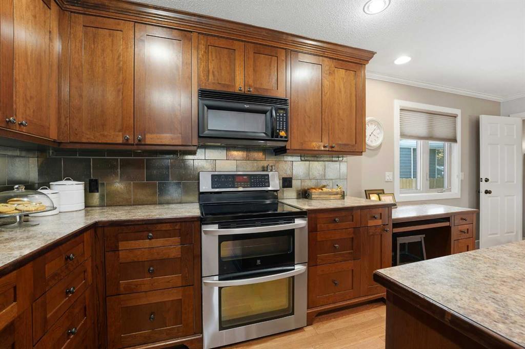 Welcome to an at-home dream that checks all the boxes and then casually adds a few extras to SHOW OFF! Tucked away on a large fully fenced lot in a QUIET NEIGHBORHOOD, this LEGALLY SUITED home backs on to a WEST EXPOSURE, giving you peaceful views, PRIVACY, and a little slice of nature right outside your door. The yard is a standout- lush perennials, mature trees, and plenty of space to relax or entertain. Fire up the grill with built in BBQ HOOKUPS and enjoy summer in your back yard oasis. Inside, the main floor is WARM, STYLISH and WELCOMING. You'll find two comfortable bedrooms and a four-piece bathroom, all grounded by gorgeous MAPLE HARDWOOD FLOORING. The OPEN CONCEPT layout flows beautifully, highlighted by EXPRESSO maple cabinetry, ice maker water line to the fridge, EAT UP ISLAND, stunning full backsplash and a SPACE THAT IS AS FUNCTIONAL AS IT IS INVITING! The fully developed basement is LEGALLY SUITED since 2011, featuring two spacious bedrooms, kitchenet, and beautiful living area. This suite has a PRIVATE SIDE ENTRANCE for convenience. LOCATION WISE? A skip, hop and jump to the elementary school, major bus routes, paved walking trails, evening strolls and weekend adventures right out your door! The extraordinary CURB APPEAL stops you in your tracks. The landscaping is immaculate, the exterior is polished, and you instantly know this is a home that has been exceptionally cared for. A true sense of ownership here, not just maintained but genuinely LOVED! Other great features include: new double patio doors off master bedroom, built in maple cabinets in master, gas hook ups for BBQ, HEATED 26’x24’ garage, high efficiency furnace 2007, shingles and windows 2007, upgraded electrical panel, BUNGALOW, water softener, central vacuum, FENCED YARD. A Solid home that just feels right, all in the DESIREABLE SUNNYBROOK!
