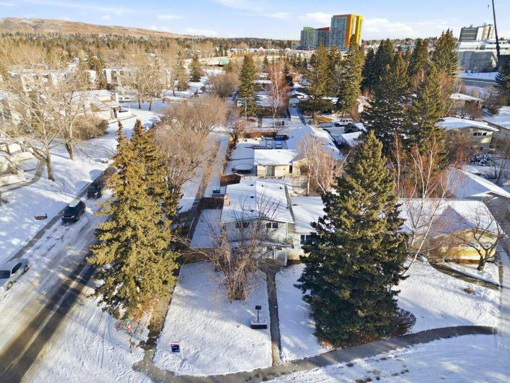 Welcome to this bright and sunny 4-level split located on a corner lot in the desirable community of Varsity. This home offers 3 bedrooms, 2 full bathrooms, and a private yard, making it an excellent option for families or investors. The main level features a spacious entryway, a cozy family room with a wood-burning fireplace, a large laundry room with a new washing machine, and a full bathroom. The kitchen level offers granite countertops, stainless steel appliances, and built-in cabinetry for added storage. The open-concept dining and living areas are filled with natural light from large windows, creating a warm and inviting space. Upstairs, you’ll find three well-sized bedrooms and a 4-piece bathroom. The finished basement includes a large open recreation room with a bar, wood-burning fireplace, and built-in Murphy bed, along with abundant storage in the crawl space. Recent updates to the home include a brand-new roof installed in 2025. Outside, enjoy a fully fenced and large private backyard with a single detached garage and a concrete RV parking pad. Ideally located within walking distance to the University of Calgary and a 9 minute walk to the LRT Station, this is a fantastic opportunity in a prime location.