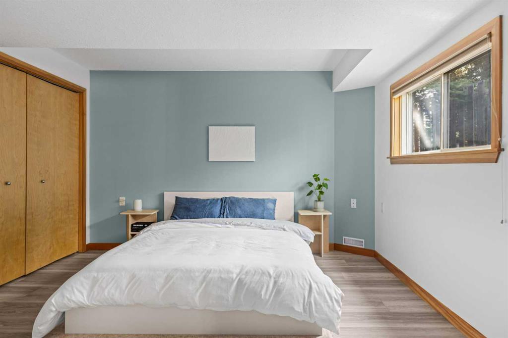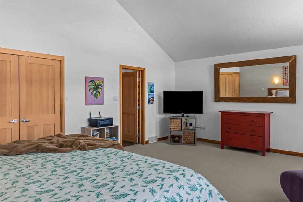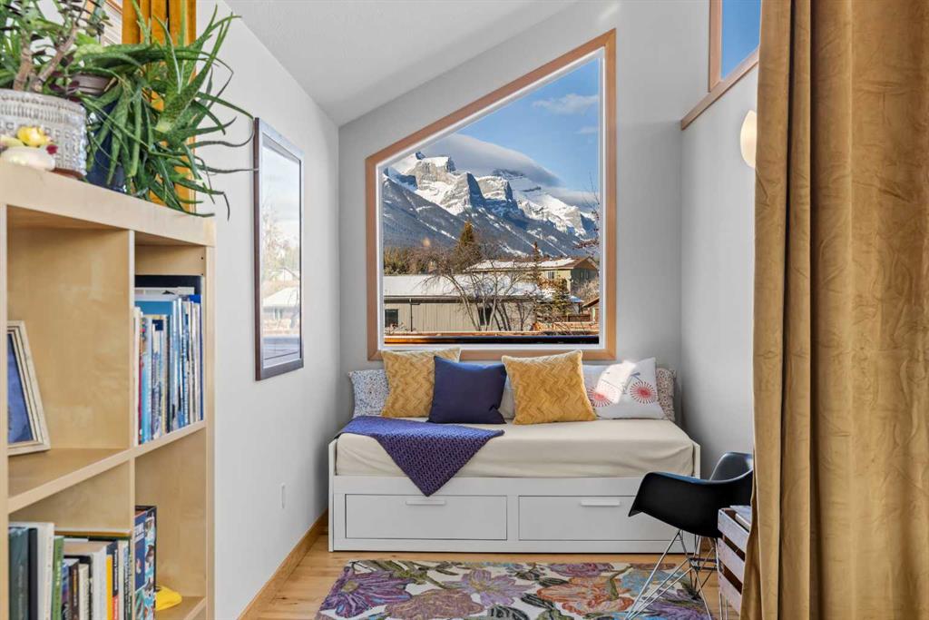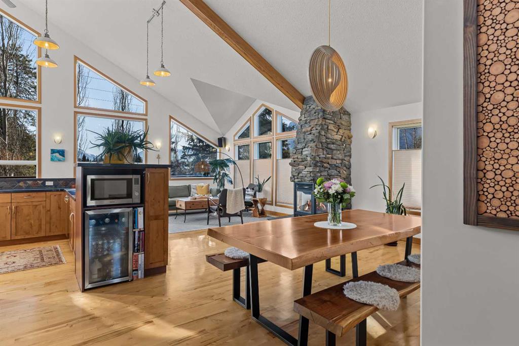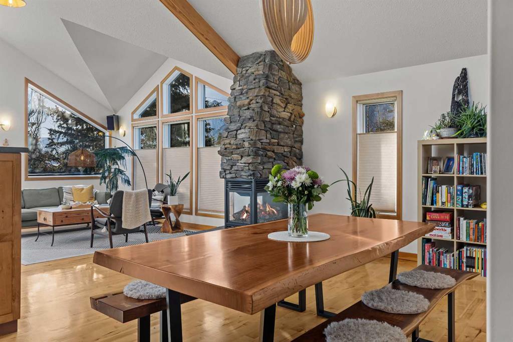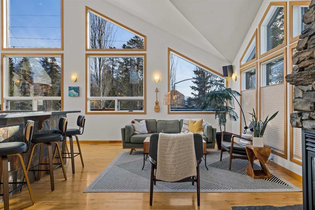 A rare detached home in the heart of Lions Park, one of Canmore’s most walkable and sought-after neighbourhoods. Steps from Main Street, the Bow River, shops, cafés, restaurants, and pathway systems, this location offers true in-town living with privacy. The five-bedroom home features vaulted ceilings, exposed wood beams, a stone fireplace, and large windows that flood the main level with natural light and mountain views. The open layout connects seamlessly to the kitchen and dining area, perfect for everyday living and entertaining. A unique lofted space accessed by ladder offers flexibility as a yoga retreat, office, or quiet escape. The main level also includes a primary bedroom with ensuite and private balcony, plus two additional bedrooms and a full bathroom. The lower level offers excellent space for a growing family, featuring two additional bedrooms, a renovated bathroom, a rec room, and its own laundry area, along with a private walkout entrance. The home also includes solar panels for improved efficiency, a double car garage, and a dedicated workshop at the back of the garage. Out front, the deck overlooks Lions Park and provides immediate access to tennis courts and scenic walking paths A rare combination of location, privacy and mountain views in the heart of Canmore.