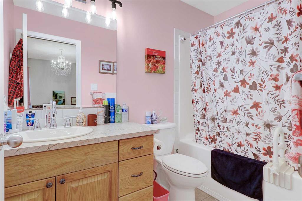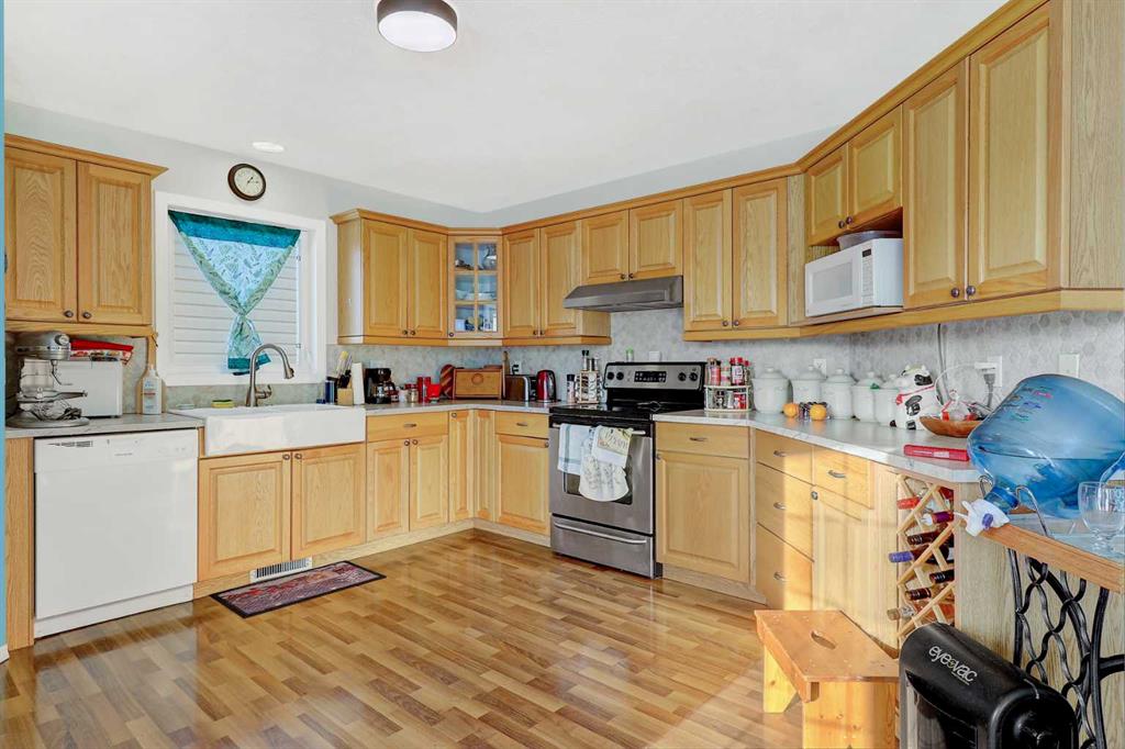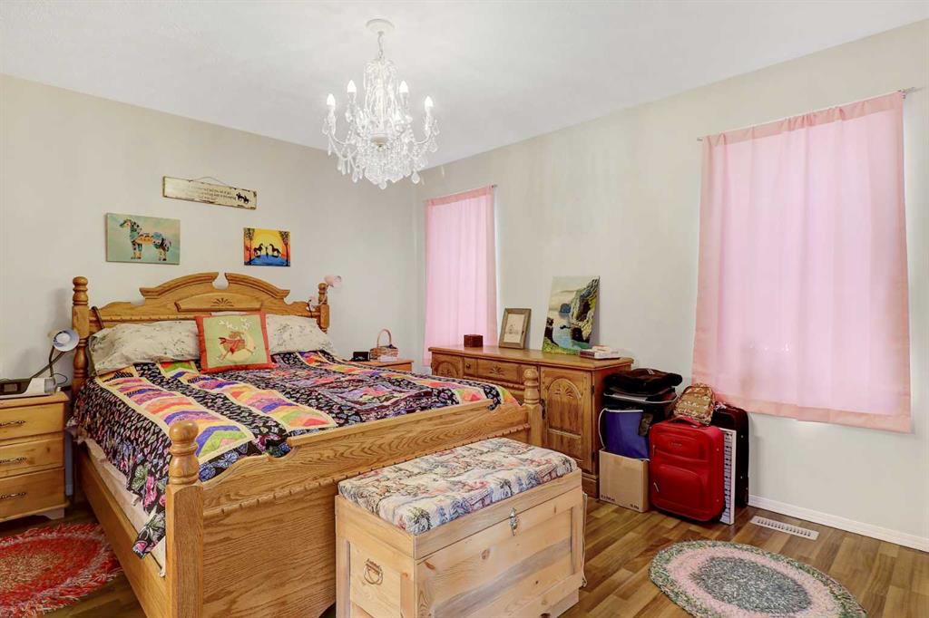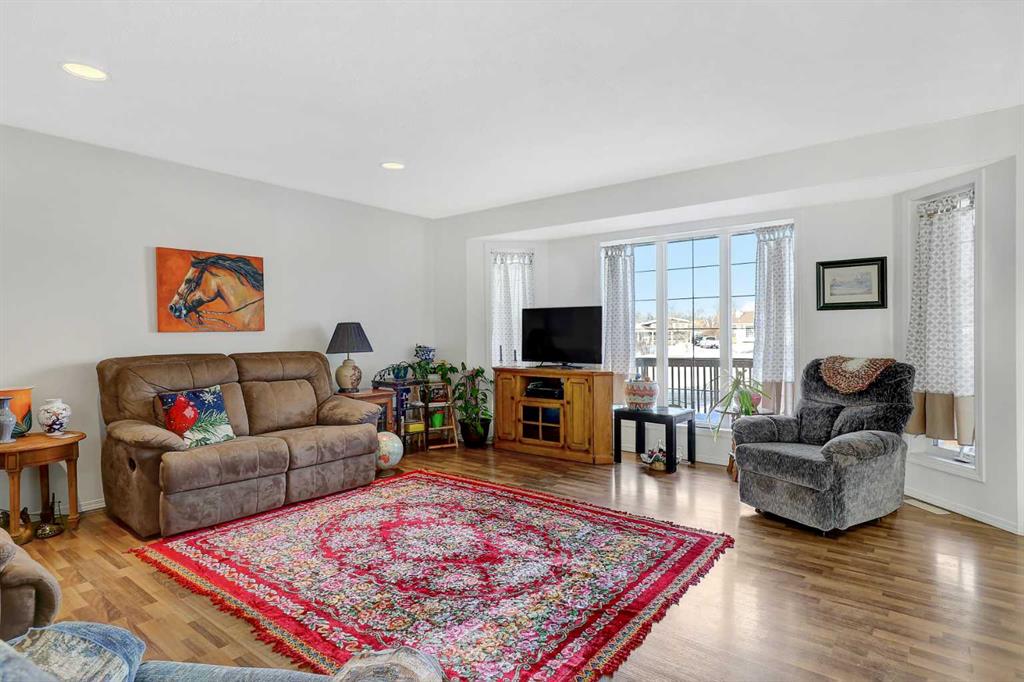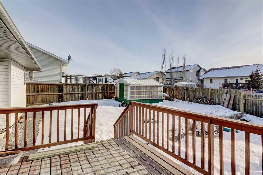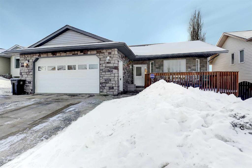 A well-maintained and recently updated bungalow located in a desirable neighbourhood close to the outdoor skating arena. This spacious home features a large front deck at the main entrance, as well as a second deck off the kitchen and dining area—ideal for outdoor living and entertaining. The main floor offers three bedrooms, including a primary bedroom with a private ensuite. The open-concept kitchen and dining area includes a corner pantry, ample cabinetry, and a large double sink. The fully developed basement includes two additional bedrooms, a utility room, a storage room, and a renovated shower. Recent upgrades include a new furnace (2023), new dryer and new shingles (2024), re-stained front deck, fresh paint in several rooms, and updated backsplash in both the kitchen and bathrooms. Additional features include a heated garage with direct access to both the home and the exterior. The front yard is landscaped with lawn, while the backyard has been thoughtfully transformed into flowered and treed areas, along with a dedicated garden space. An excellent opportunity for a family home in a thriving community.