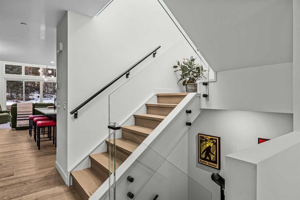 Step into luxury living with this stunning 4 bedroom, 5 bathroom modern built home by Lakusta Custom Homes, who are known for their quality craftsmanship, attention to detail, and refined mountain design. The layout features 2671sqft of livable space spread over three levels with the open concept living and dining area anchoring the home with sleek kitchen appliances and an expansive island leading to a wall of windows that flood the great room with natural light. The beautiful gas fireplace commands the space, making it perfect for gathering with family and friends after a day outdoors. Outdoor living extends seamlessly with a spacious upper-level deck spanning the entire back of the home, overlooking a forested backdrop and generous space that provides excellent privacy. The primary suite is a true retreat, complete with a walk-in closet, soaking tub with a separate luxurious walk-in tiled shower, and serene mountain views from the king bed. Upstairs two spacious bedrooms each with their own spa inspired bathroom and elevated design elements throughout bring comfort and luxury together in perfect balance. Downstairs, there is a media lounge with custom bar, including additional guest space with a large bedroom and 3pc bathroom and access from this level to the 2-car garage and gear storage. Located in a premier Canmore neighbourhood, celebrated for its scenic setting, access to the world class skiing and biking at the Nordic Centre, proximity to the downtown Canmore, trails, and year round recreation. Whether you envision a primary residence or a luxury mountain retreat, this opportunity offers exceptional value in an unbeatable community.