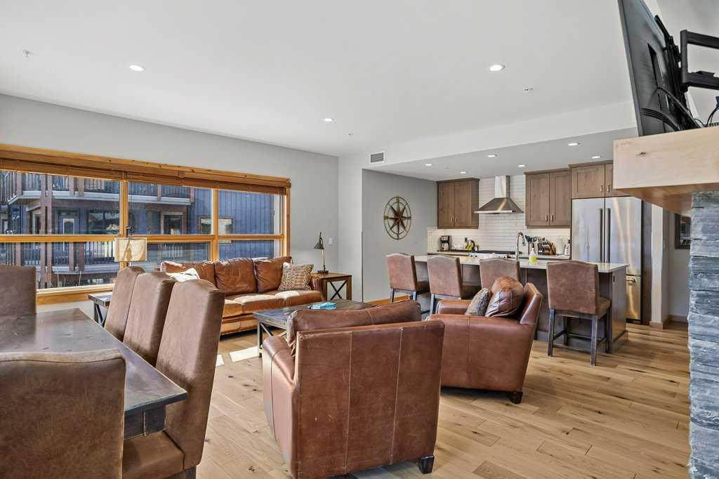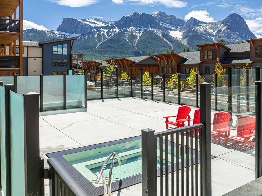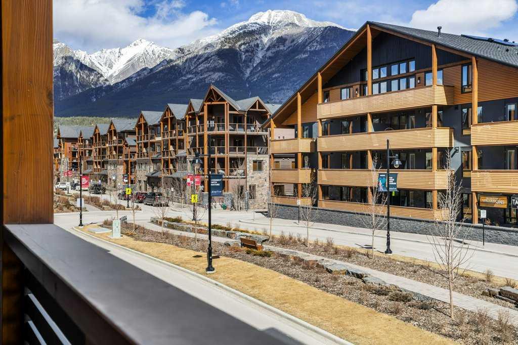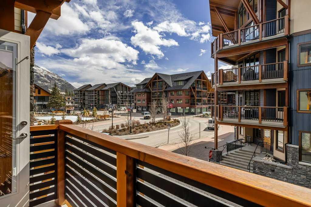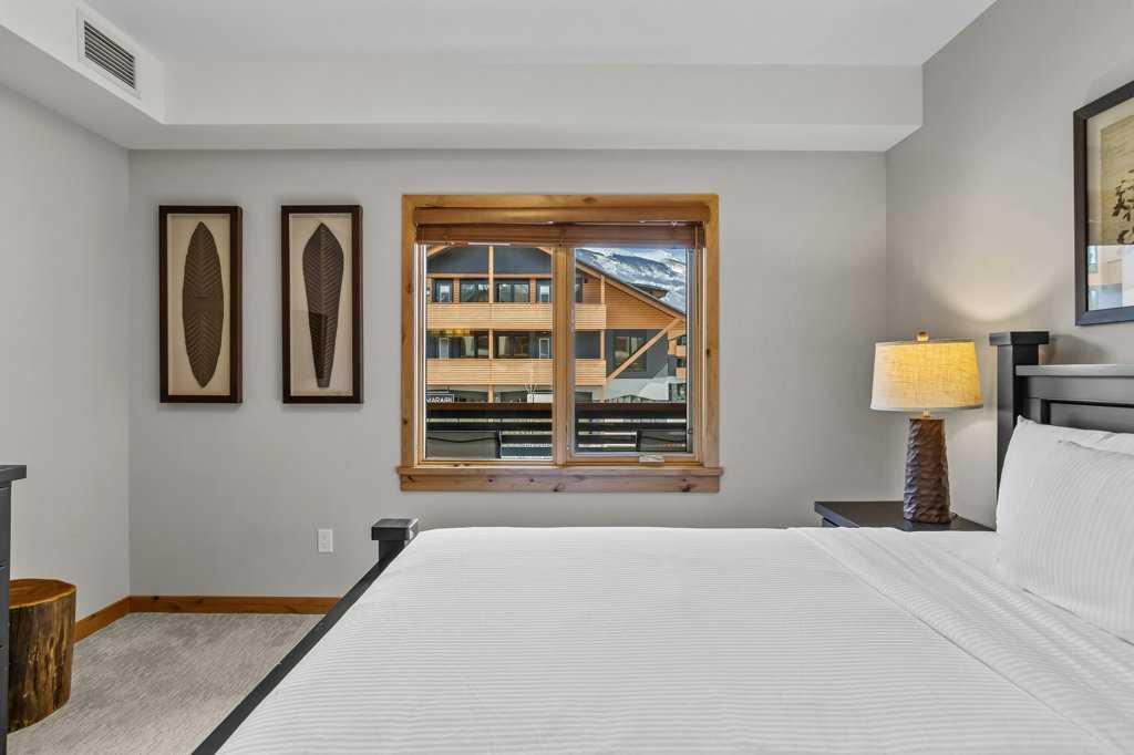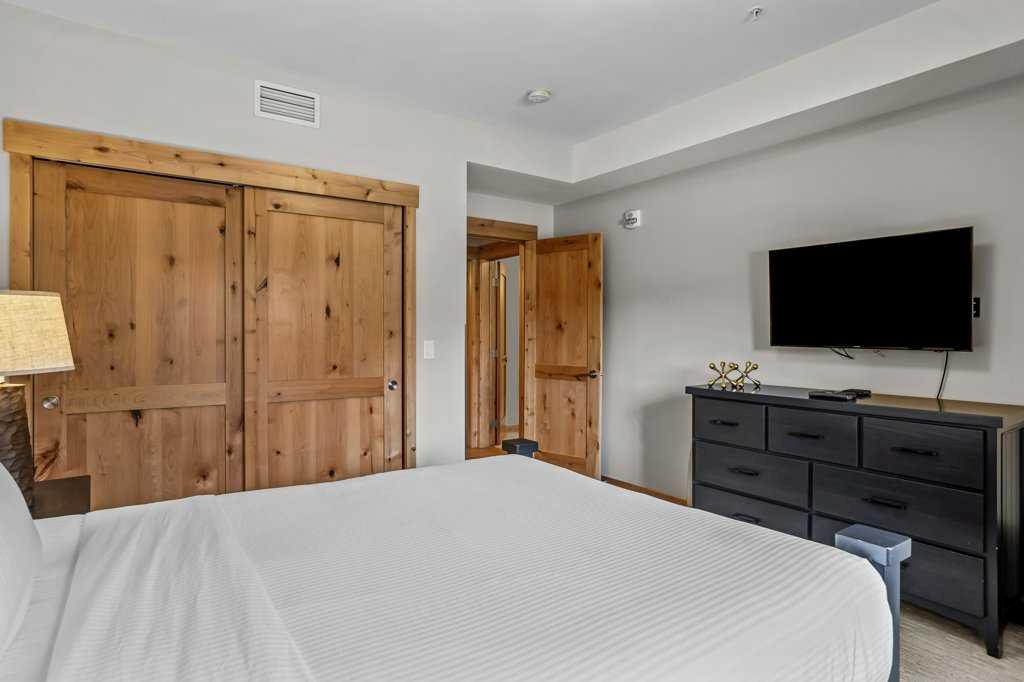 this property is a rare Tourist Home designated 2-bedroom + den (3rd bedroom) investment opportunity in White Spruce Lodge located in Spring Creek in downtown Canmore. This property is turn-key and sold fully furnished, with rentals on the books for 2026. This lovely corner unit has windows on all sides bringing in abundant natural light, great views, and is located on the highly sought after Spring Creek Plaza overlooking the pond and steps from the Bridgette Bar restaurant, other great retail amenities, parks, paths and walking distance to Main Street Canmore. The large gourmet kitchen and living area are ideal for family gatherings complete with stainless appliances, large quartz counters, hardwood floors, and a stone gas fireplace. The primary bedroom features a king bed, walk in closet and a 5-piece spa inspired ensuite bathroom. White Spruce Lodge has an inviting courtyard hot tub, an exercise room on the main level, with an underground titled parking stall and assigned storage cage for the condo.