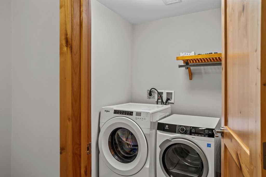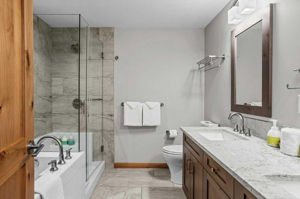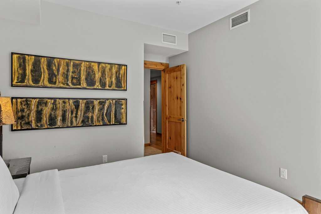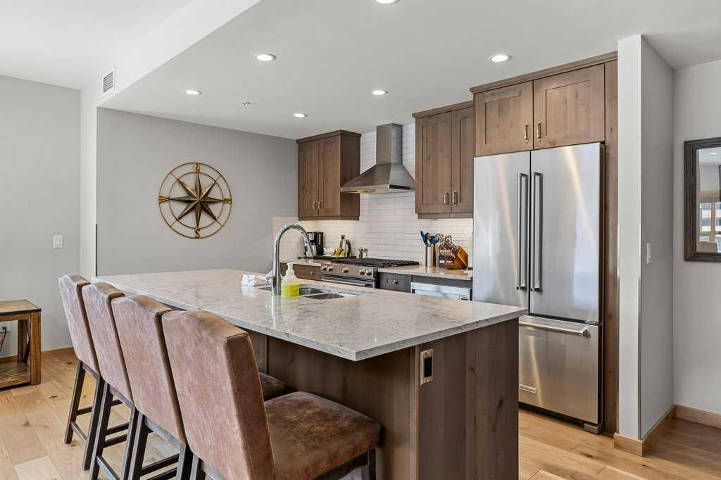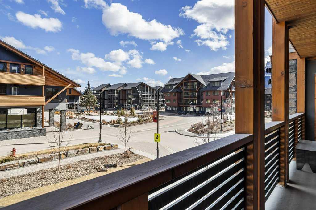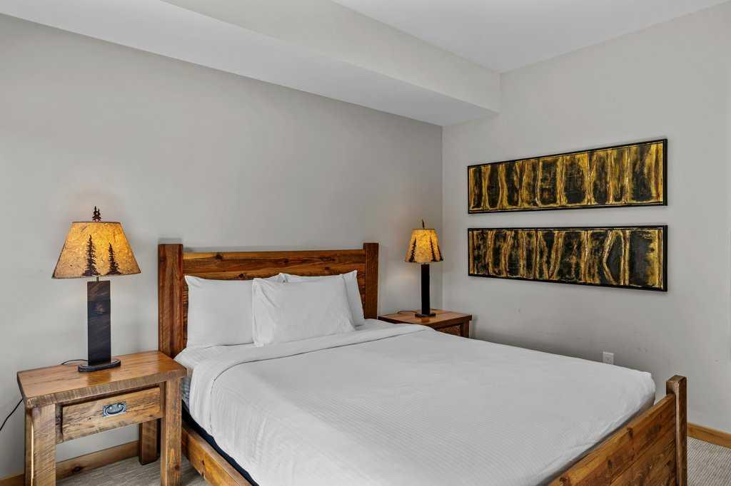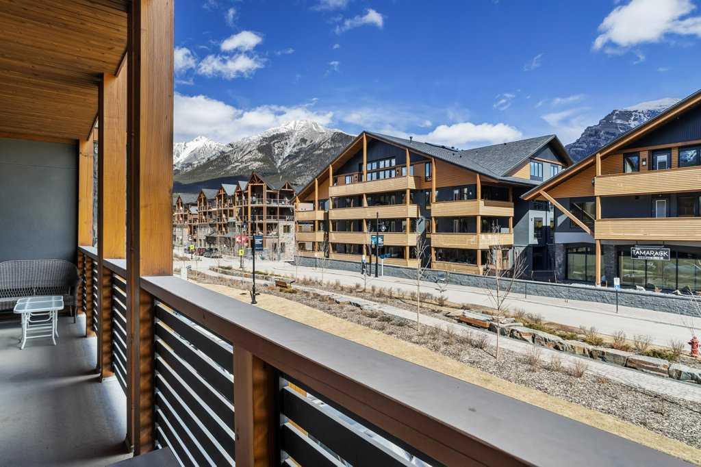 this property is a rare Tourist Home designated 2-bedroom + den (3rd bedroom) investment opportunity in White Spruce Lodge located in Spring Creek in downtown Canmore. This property is turn-key and sold fully furnished, with rentals on the books for 2026. This lovely corner unit has windows on all sides bringing in abundant natural light, great views, and is located on the highly sought after Spring Creek Plaza overlooking the pond and steps from the Bridgette Bar restaurant, other great retail amenities, parks, paths and walking distance to Main Street Canmore. The large gourmet kitchen and living area are ideal for family gatherings complete with stainless appliances, large quartz counters, hardwood floors, and a stone gas fireplace. The primary bedroom features a king bed, walk in closet and a 5-piece spa inspired ensuite bathroom. White Spruce Lodge has an inviting courtyard hot tub, an exercise room on the main level, with an underground titled parking stall and assigned storage cage for the condo.