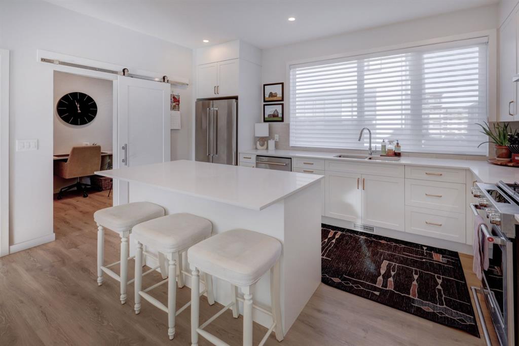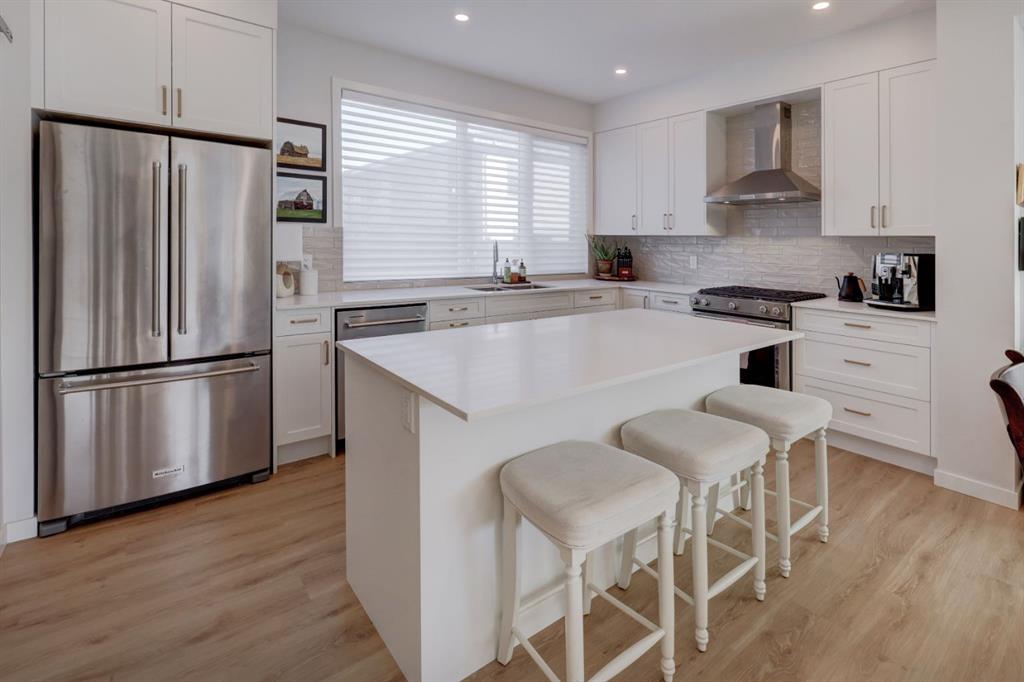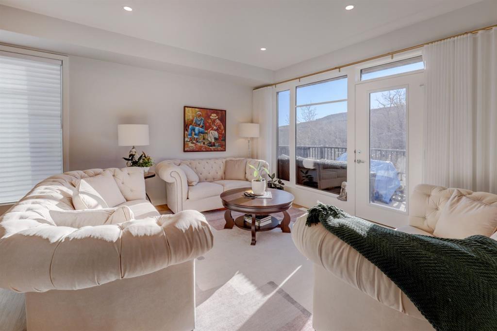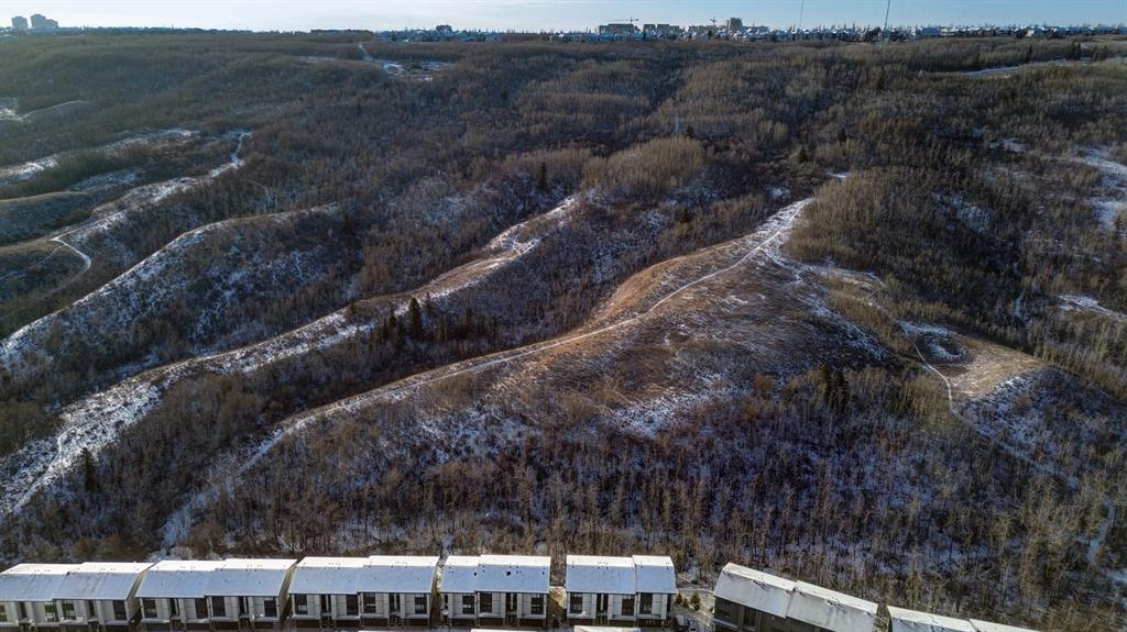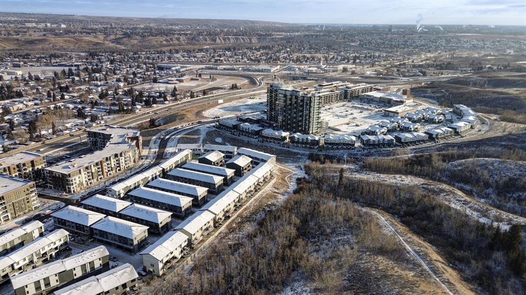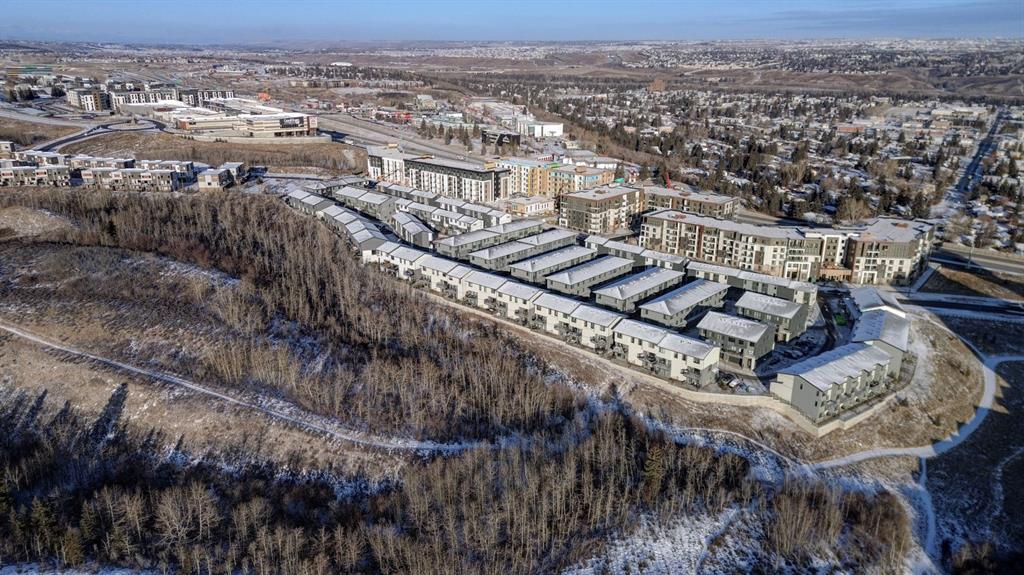 ***Please check out the Virtual Tour!***. Welcome to the community of Medicine Hill and the Village at Trinity Hills. One of Calgary's most elegant and sophisticated urban dwellings. This end unit town home comes with 1988 square feet of finished living space. The open floor plan flows seamlessly from the gorgeous living room with incredible vistas to the large dining room and gourmet kitchen. The kitchen has a large island, upgraded stainless steel appliances and granite countertops. The kitchen flows perfectly into the dining and living rooms which is fabulous for entertaining family and friends. Upstairs, you will find three bedrooms and 2 4pc bathrooms with one bathroom being the primary bedroom ensuite. In the basement you will find a spacious 2 car double attached garage and recreation room which leads outside to a beautiful patio. Back on the main second floor you will love the outdoor patio to cook, eat and relax all the while enjoying beautiful vistas of forest reserve behind you. This home comes with over $35,000 of additional upgrades which include upgraded appliances, California closets, high end window coverings and upgraded drawers. The Village at Trinity Hills is a revolutionary and modern community for the Calgary area; integrates upscale family living within the parameters of commercial and professional buildings and services. This home allows you to walk out your front door and within minutes be at the grocery store, pharmacy, pet shop, medical building and so much more. Within minutes from Calgary Olympic Park this home provides quick access to downtown and just over an hour to Banff National Park. Please contact me for showing information and come see what modern living in the heart of Calgary looks like in 2026.