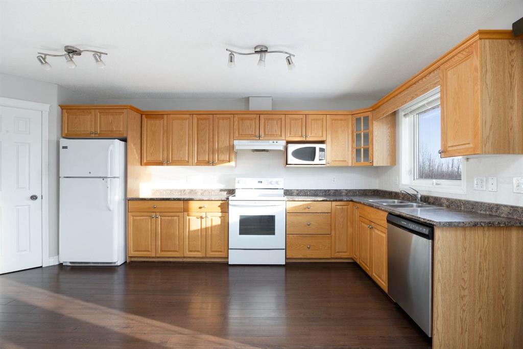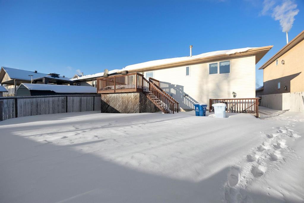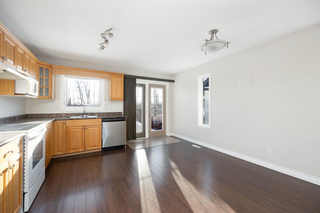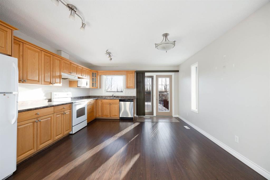 Welcome to 369 Mustang Road, tucked into a quiet pocket of Prairie Creek and backing directly onto a peaceful greenbelt. With no neighbours behind and trees as your backdrop, this home offers a rare sense of privacy while still enjoying quick access to the airport, Gregoire Industrial Park, Vista Ridge Adventure Park, and worksites along the Highway 881 corridor. This 1,448 sq ft bi-level is designed for comfortable living. The main level features a bright front living room with a cozy gas fireplace, a spacious eat-in kitchen with direct access to the raised back deck, and serene views of the treed green space beyond. Down the hall you’ll find 3 bedrooms, including a primary bedroom with a walk-in closet and 4-piece ensuite, a full main bathroom, and the convenience of main floor laundry. The fully developed basement offers a 2-bedroom illegal suite with a separate entrance leading into a large mudroom. Inside, the suite features a generous family room, full kitchen, separate laundry, two spacious bedrooms, and a 4-piece bathroom. Large above-grade windows fill the space with natural light, creating a warm and welcoming atmosphere.The backyard is fully fenced, complete with a raised deck, and backing directly onto the tree line, offering a quiet, private outdoor retreat you’ll enjoy year-round. Sold as is where is