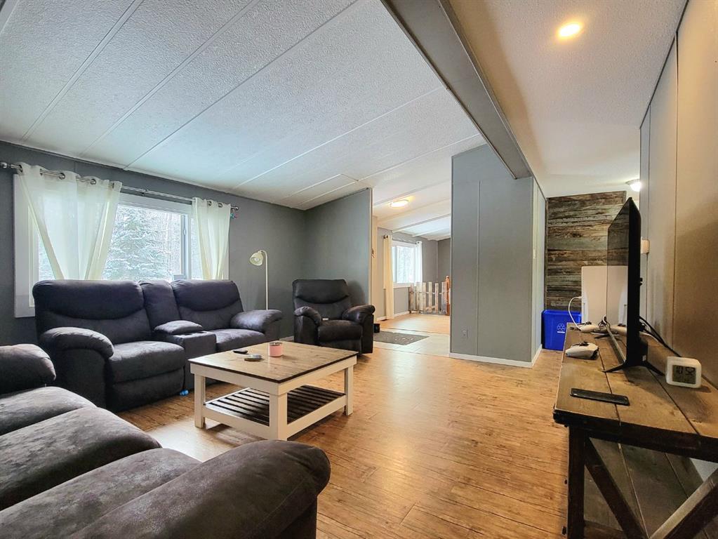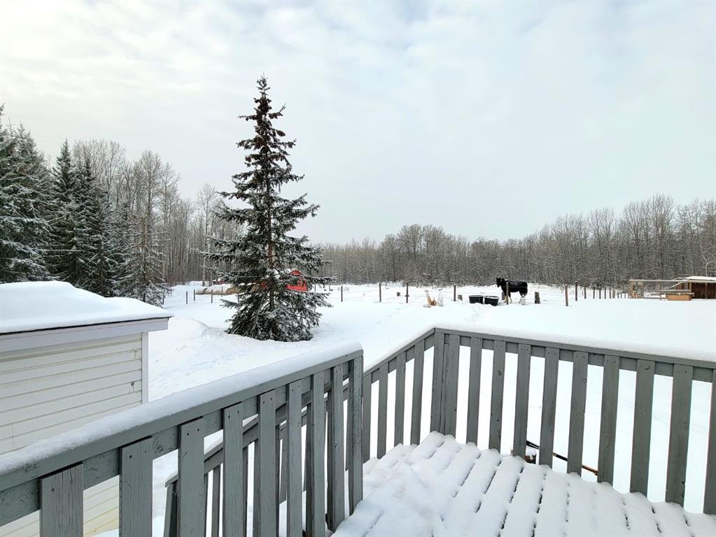 So you're looking to get away from the continual noise of City Living.... Well here you are! Your opportunity for peace and quiet, starts here. How does 4o Tree'd Acres sound? This beautiful acreage is located 25 minutes east of Grande Prairie. Where all you see when you step out the front door of the fully developed 5 bed, 3 bath home is your own private yard surrounded by beautiful mature trees and all you hear are the birds chirping and breeze rustling the leaves. The driveway alone, so picturesque and treed, is sure to welcome you home. The yard is newly developed with a fenced pasture for animals behind the home, a wooden riding pen for horses, an approx. 18 x 28 older workshop with a lot of character, a chicken coop with power, and 2 more out buildings/sheds. There is also plenty of potential in the acres behind for the future development of a shop, a barnyard, a motocross track or just about anything else you can imagine. You are sure to appreciate the home as well, updated with a newer kitchen complete with black appliances, newer windows, newer master ensuite, flooring, paint and fantastic rustic touches like the custom sliding barn door and refinished coffee nook with barn wood backsplash. And with 1,400 sq.ft. on each level, there is plenty of space for the entire family to spread out and enjoy. This property has its own well, its own septic system, and has its own propane heat source. Properties like this are hard to find so be sure to book your private viewing today! Wondering about the bus system for your school aged kids? The Bezanson School Bus picks the kids up and drops them off... At the end of your driveway!