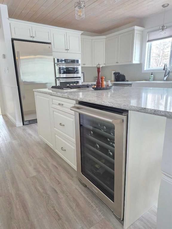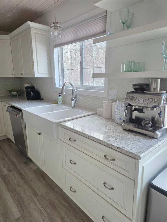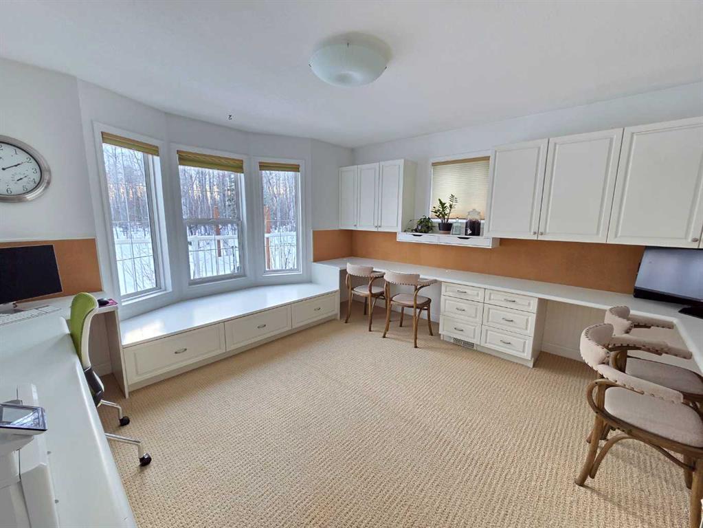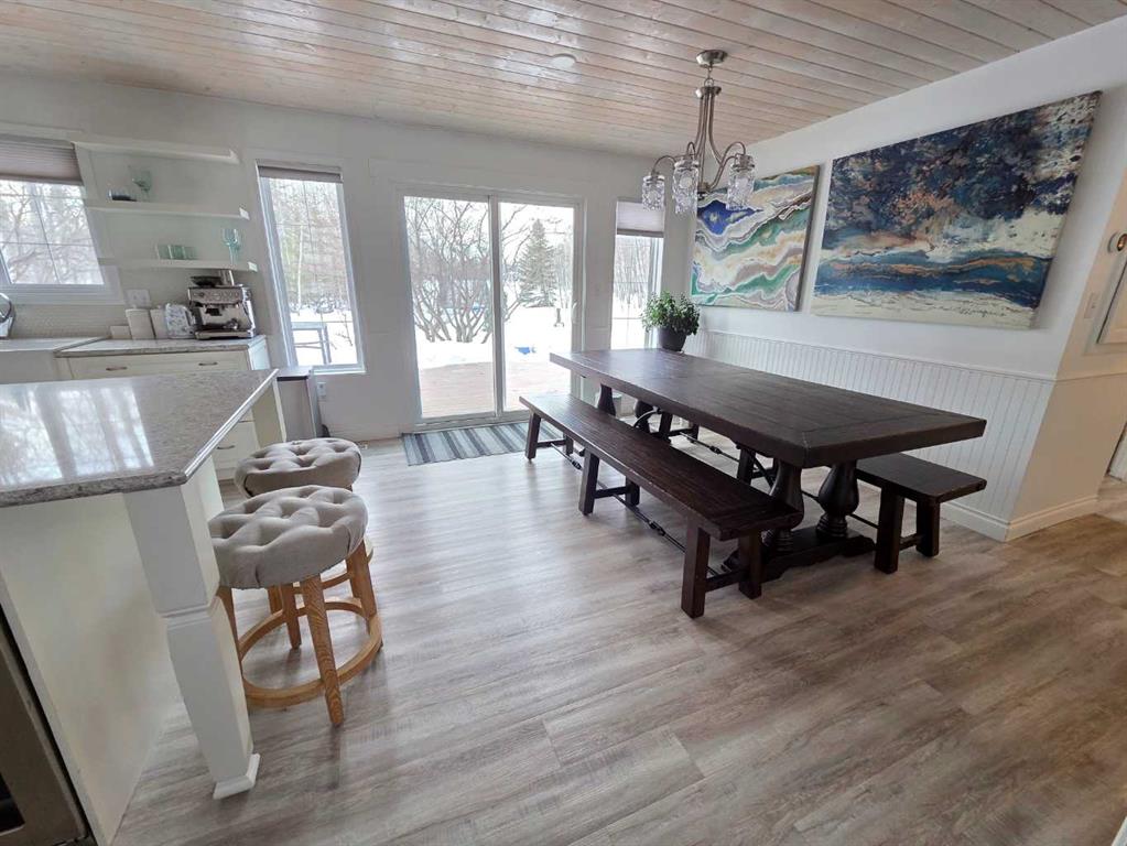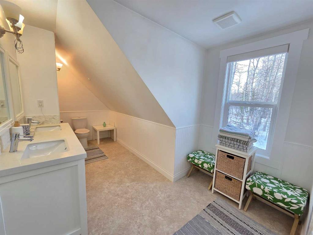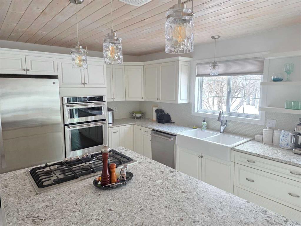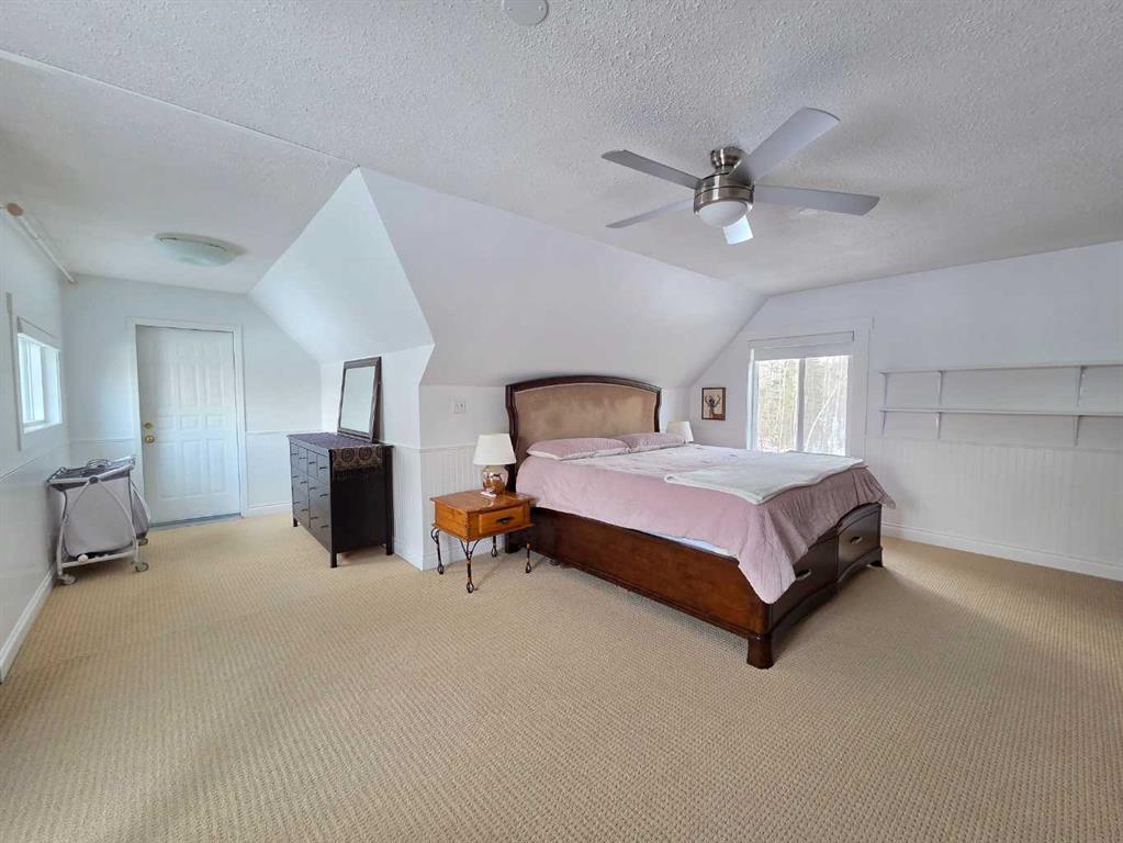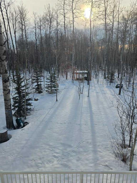 Welcome to the peace and serenity of country living with this charming, renovated home and beautifully treed 5.6 acres of land. Just outside the hamlet of Grovedale and only 15 minutes from Grande Prairie. This spacious home has been completely renovated and boasts a professionally installed kitchen complete with an oversized island with gorgeous granite countertops, gas stove top, wine cooler, lots of beautiful cabinetry. Plus, a wall of pull-out pantry drawers, high-end stainless-steel appliances, and a lovely large farmhouse sink. Patio doors lead from the dining area out to the expansive maintenance free deck. The family room area is separated by glass French doors and boasts a very stylish gas fireplace, with large windows for great views and natural light. There is a large bedroom with a walk-in closet and a wall of wardrobe cabinets, and ensuite with a large soaker tub. The other spacious bedroom on the main level has been made into an office/study room with a nice large window seat, and lots of great storage. There is main floor laundry as well as a 2-piece bathroom. Upstairs you will find another cozy sitting room and study area, as well as the very large master bedroom with a charming gas stove fireplace. A spacious full bathroom that features double sinks, with separate tiled shower and soaker tub. An additional very large bedroom can fit two beds, with lovely window seats and fantastic views out the windows. The double garage has extension to make it larger, is heated and finished with fantastic wood panel walls, plus has an EV charger that can be also used for your RV. Most all the windows and blinds are brand new, and patio doors as well. There is a water softener and RO water system. The well was serviced in 2024, and there is an option to hook up to municipal water if you decide. Shingles were replaced in 2018, and the 2-stage septic system was replaced in 2020. The overhead garage doors are new in the last 5 years, as well as the deck upgraded to composite maintenance free boards. The yard is landscaped with lots of weeping tile for great drainage, and features a lovely fire pit area, and children’s play fort area. The property is fully fenced and boasts lots of trees. The Driveway that leads to the home has a circle drive around and plenty of parking space. This is a wonderful place to enjoy and call home! Plus its only minutes away from the Nitehawk ski and recreation park.