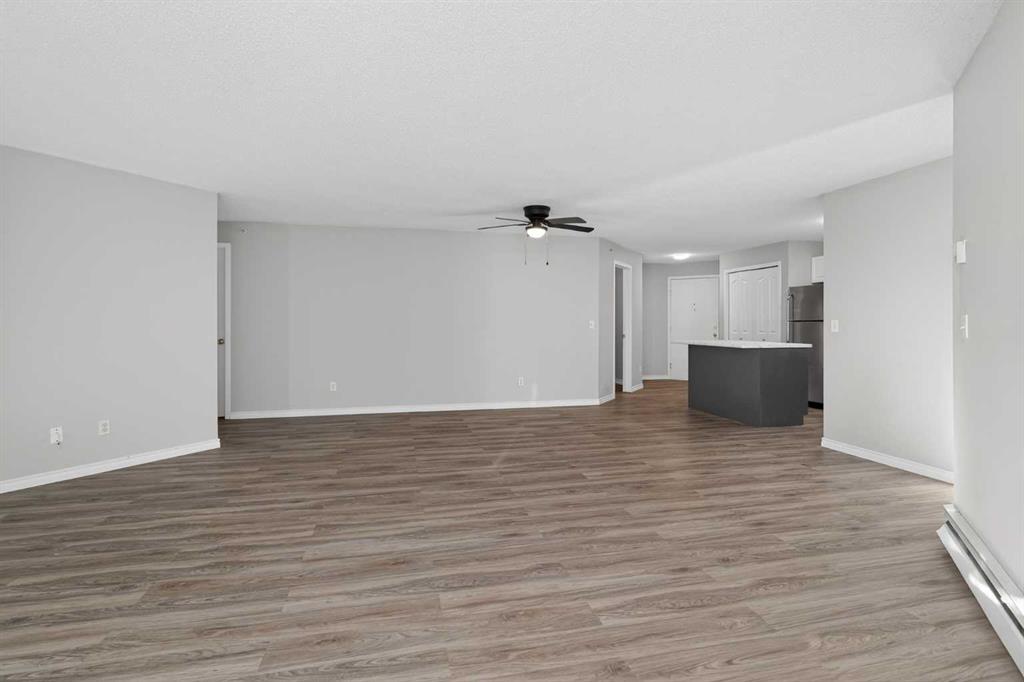 Welcome to this exceptionally spacious top-floor condo in the vibrant community of Somerset, perfectly positioned adjacent to the endless amenities of Shawnessy. Offering an impressive 1201 sq. ft - the largest floor plan in the building - this 2 bed + den, 2 bath residence delivers space, functionality, and value rarely found at this price point. Enjoy sunny days on your south-facing covered balcony (7'7" x 12'4"), complete with a gas BBQ line, ideal for year-round grilling and outdoor relaxation. Inside, you’ll find newer flooring throughout, complemented by a stylish kitchen featuring two-tone cabinetry (white uppers, charcoal lowers), newer stainless steel appliances, and a central island perfectly suited for meal prep and entertaining. The thoughtfully designed layout includes a generous den / storage room, plus a separate laundry room with additional storage - a true standout for condo living. The spacious primary bedroom offers a walk-in closet and a private ensuite, while the second bedroom and full bath provide excellent flexibility for guests, a home office, or shared living. Condo fees are exceptionally comprehensive and include ELECTRICITY - a rare and valuable inclusion not offered by most buildings - along with heat, water, sewer, and trash, delivering substantial monthly savings. The unit also comes with an assigned parking stall and ample visitor parking. All of this is just steps from shopping, dining, recreational services, and the Somerset LRT, making daily life and commuting effortless. A rare combination of size, location, and inclusions, this top-floor Somerset condo is one you won’t want to miss.