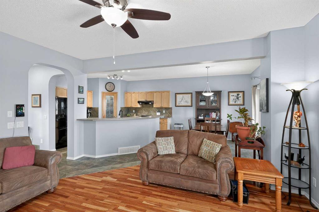 Welcome to Silver Creek. One of Airdrie's most sought after communities. This 3 bedroom, 2.5 bathroom, fully finished home truly does have it all. Gorgeous curb appeal welcomes you as you approach the home with mature trees and a quaint garden. Entering the home you are greeted with high ceilings in the entryway, tile floors leading you into your open floor plan. The kitchen is a chef's dream with ample counter space, newer appliances, tons of cabinetry, an island, making it the perfect area for entertaining or cooking at home with the family. The dining room is next to the kitchen and overlooks not only your north facing backyard but your expansive living room as well. A gas fireplace illuminates the living room adding a great feeling of comfort and gives you a great area for home movies or board games. Your half bathroom and main floor laundry area finish off the main level before heading upstairs. The primary suite is large enough for a king size bed as well as all of your additional bedroom furniture and features a huge walk-in closet, spa inspired ensuite bathroom and new triple pane window. The second and third bedrooms are also a great size with large closets and your 4 piece second bathroom completes the upstairs. The basement is fully finished with a massive entertainment space, office area and wet bar, perfect for game nights or having friends over. The back yard is really what sells this home. Unobstructed north views of expansive Alberta wilderness brings wildlife to your door and stunning sunrises along with peace, quiet and privacy. Sitting on your deck with a nice glass of wine or coffee in the morning will have you never wanting to leave. Airdrie is a growing city with great schools, shopping, parks, pathways and access to all of the amenities that you might need. Do not miss out on this opportunity to own this exclusive home backing on to one of the most beautiful views in the entire city.