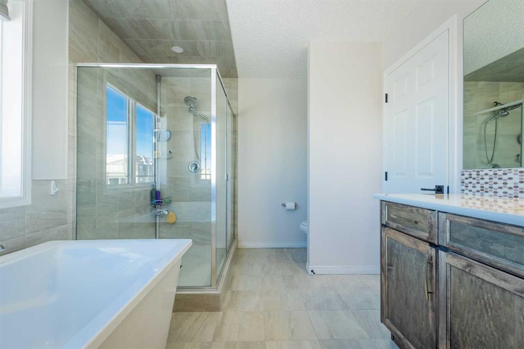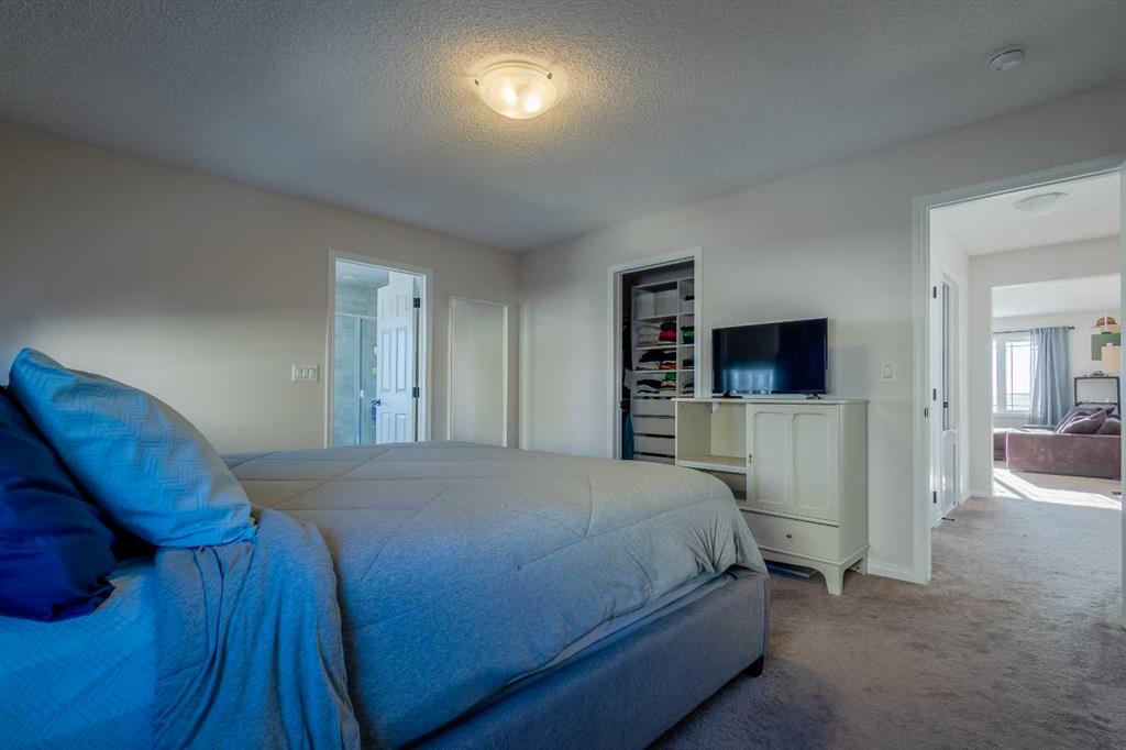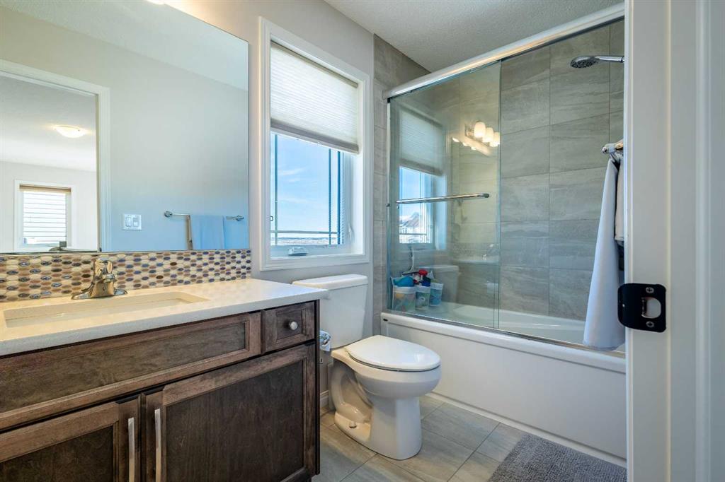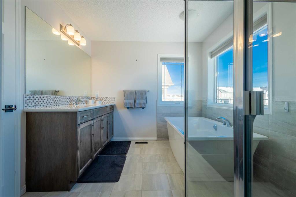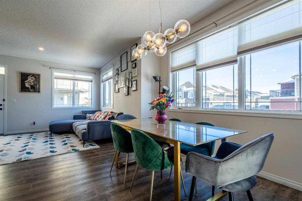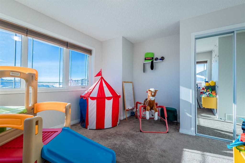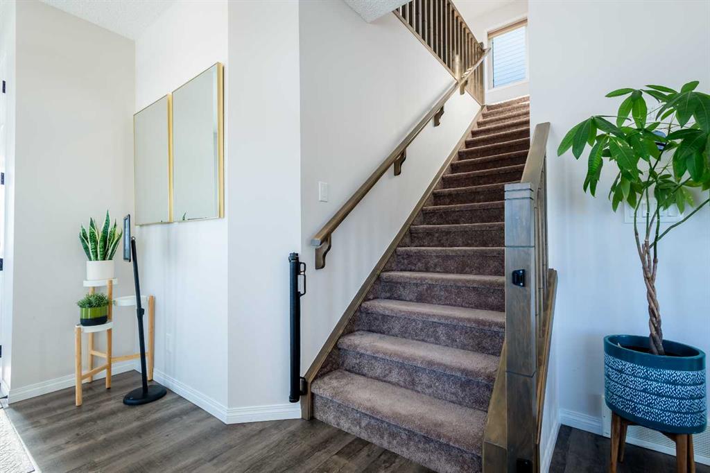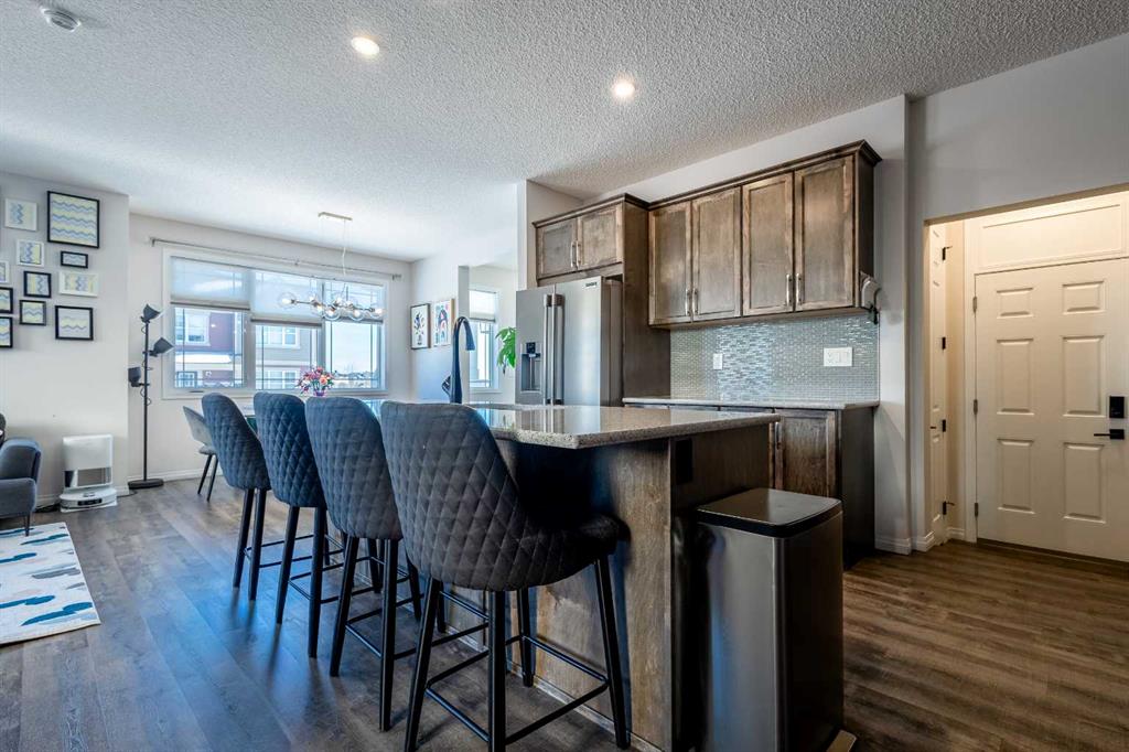 This beautifully maintained corner home is filled with natural light and thoughtfully designed to maximize space, flow, and everyday functionality. With windows on multiple exposures, soaring 9-foot ceilings, and 8-foot doors with transom details, the home feels bright, open, and welcoming from the moment you step inside. A spacious foyer opens to luxury vinyl plank flooring that runs throughout the main level. The kitchen is both stylish and practical, offering expansive quartz countertops, stainless steel appliances, and generous cabinetry—ideal for daily living and entertaining. The oversized dining area flows seamlessly into the open-concept living space, where a dual-sided gas fireplace adds warmth and definition. Large glass doors lead to a fully fenced backyard and deck, extending the living space outdoors. A main-floor office enjoys the glow of the dual-sided fireplace, creating a comfortable work-from-home environment. A functional mudroom provides access to the insulated, drywalled double attached garage, while the large driveway offers excellent additional parking—an added benefit of this corner unit. Upstairs, a sun-filled bonus room is surrounded by walls of windows and accented by a wraparound wood railing, creating a bright and airy retreat. A large upper-level laundry room and linen storage enhance everyday convenience. The primary bedroom comfortably accommodates a king-sized bed and features a walk-in closet and a spa-inspired ensuite with a floating soaker tub, glass walk-in shower, and extra-tall quartz-topped vanity. Two additional generously sized bedrooms and a well-appointed main bath continue the home’s light-filled design. The fully finished lower level, completed by the builder, offers exceptional versatility with a walk-up separate entrance, second laundry area, and wet bar/kitchenette. A spacious fourth bedroom and full four-piece bathroom complete this level, along with a large finished storage room—ideal for guests, extended family, or future suite potential. Located in a vibrant, family-friendly community with multiple playgrounds—including a rock-climbing park—just steps away, as well as nearby shopping, services, and convenient access to major commuter routes. This bright corner home truly stands out and is a must-see.