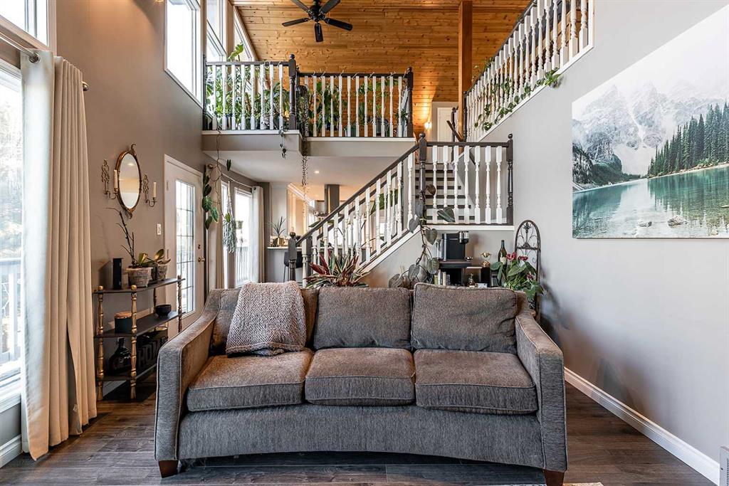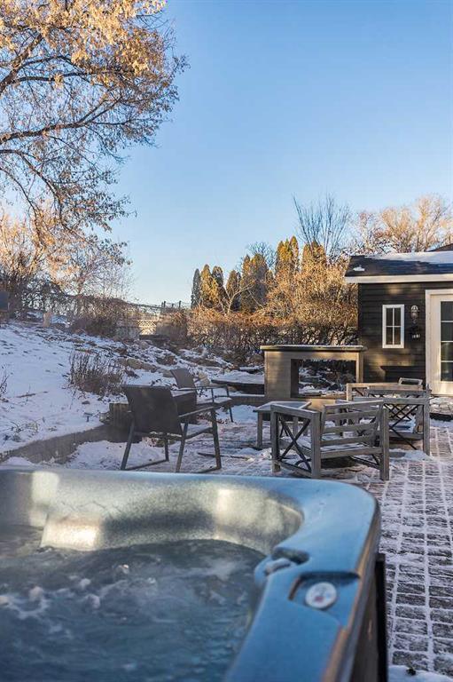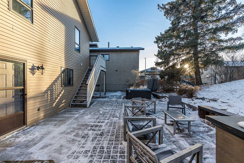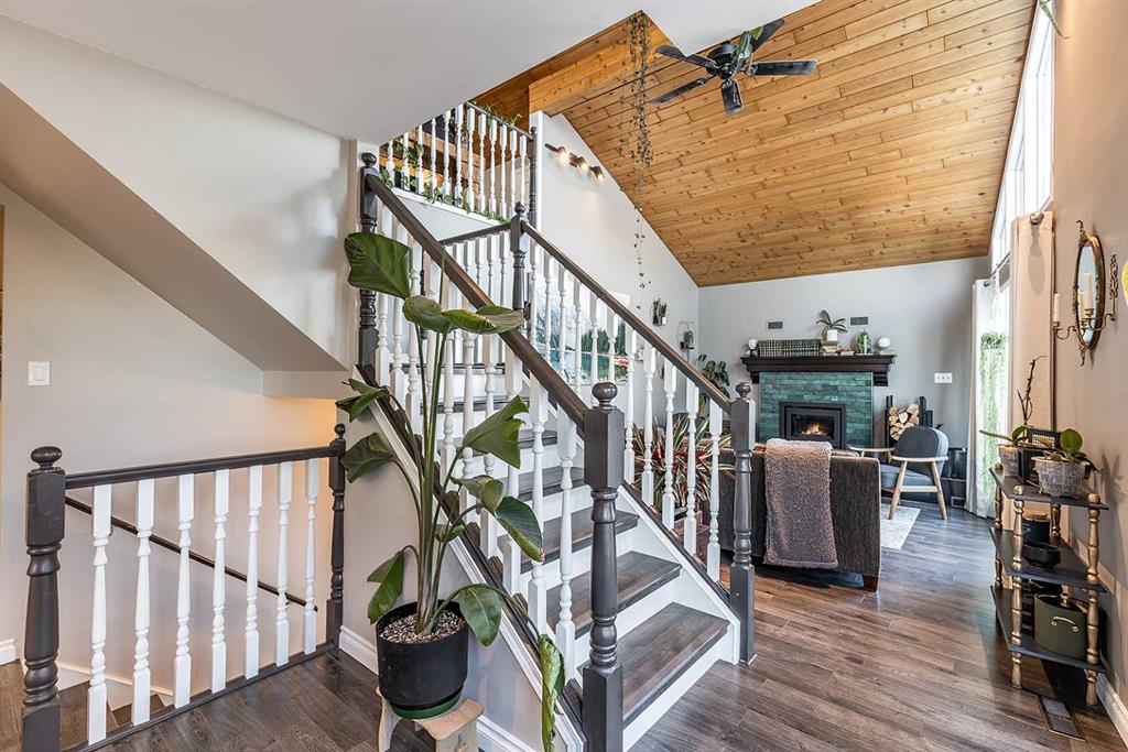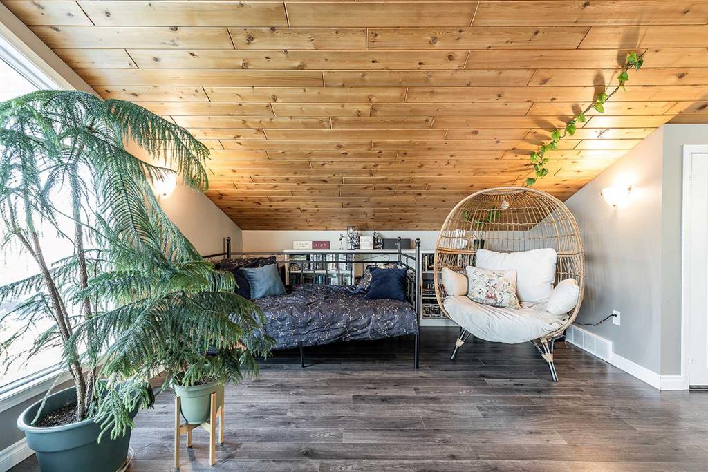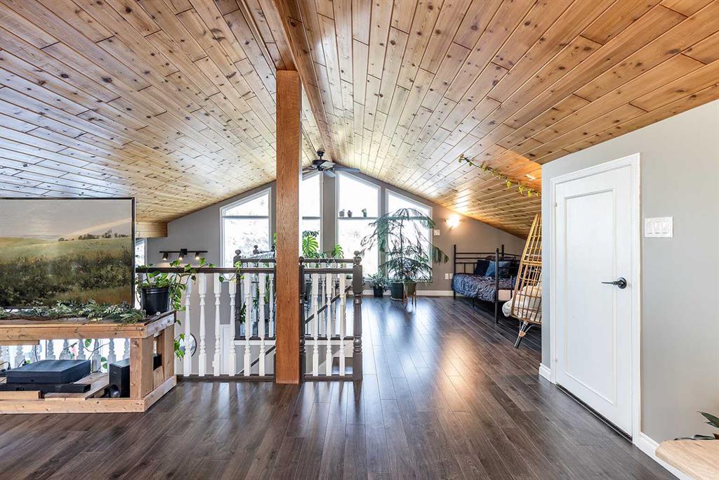 1168 16 Street NE is a truly special home, offering a rare blend of character, thoughtful updates, and an exceptional location with views of the river valley — all tucked away on a quiet, desirable street. The home’s unique design welcomes you through the front door into the lower level, where a spacious and inviting rec room/living area awaits. Functional details like built-in cabinetry, a Murphy bed, and charming wallpaper make this level incredibly versatile. Heading upstairs, the main level is nothing short of breathtaking. Vaulted cedar ceilings, expansive windows, and open sightlines flood the space with natural light and create an airy, uplifting feel. The living room is anchored by a brand new wood-burning fireplace complete with updated hearth, mantel, tile, and insert. The kitchen is elegant and seamlessly connects to the dining area, offering direct access to the large wrap-around deck where you can enjoy peaceful views and morning coffee overlooking the yard and river valley beyond. This level also features a spacious primary suite, complete with double closets and a private 3 pc ensuite. Two additional bedrooms, a beautifully updated 4 pc main bathroom, and a convenient laundry room complete this floor. Above it all, the third floor loft is a standout feature and a truly inspiring space. Bathed in natural light, it offers the perfect spot to relax by the windows and take in those gorgeous views! Whether used as a library, home office, family room, or creative retreat, the loft also includes smart built-in storage along both sides, making it just as functional as it is charming. Set on an impressive 11,800 sqft lot, the outdoor space is an absolute oasis. While winter has it resting, it’s easy to imagine how stunning and serene this yard becomes in the warmer months: mature landscaping with UGS, a peaceful pond with waterfall, relaxing hot tub, and a charming shed with electrical — all creating a private retreat rarely found in the city. Additional highlights include solar panels, adding efficiency and long-term value, and a home layout that feels both open and intimate. Homes with this much character, space, and setting rarely come available. This is a property that must be experienced to truly appreciate its warmth, charm, and timeless design.