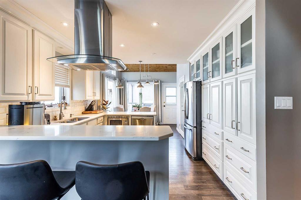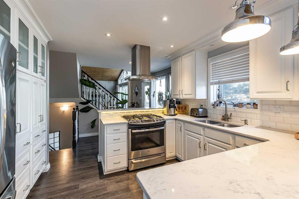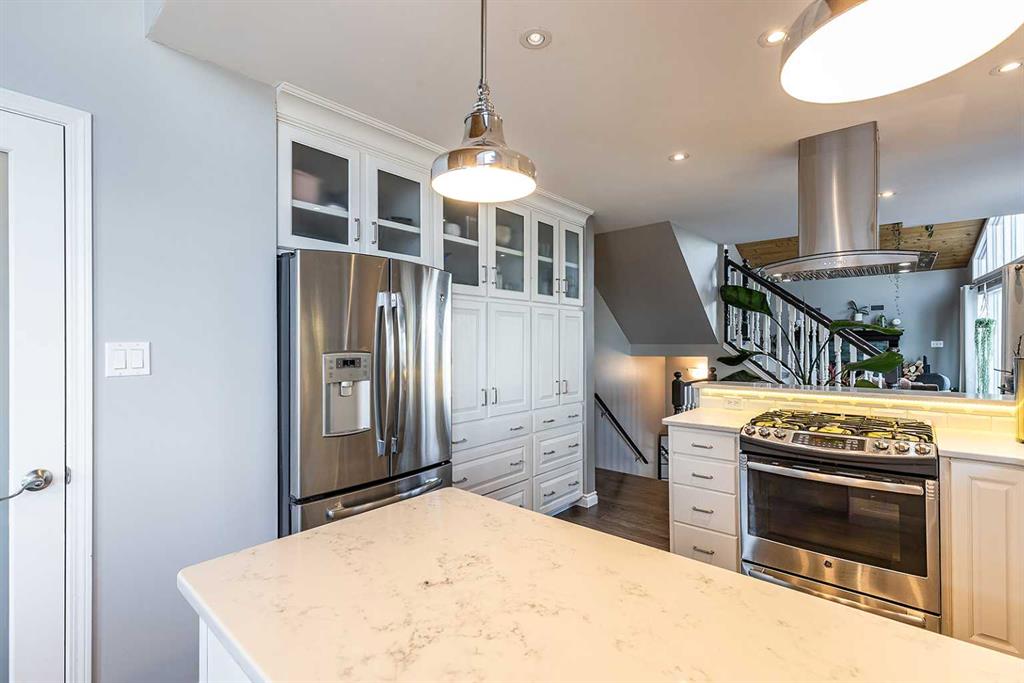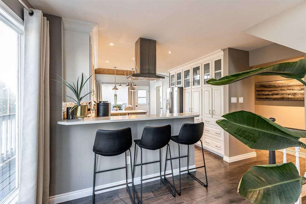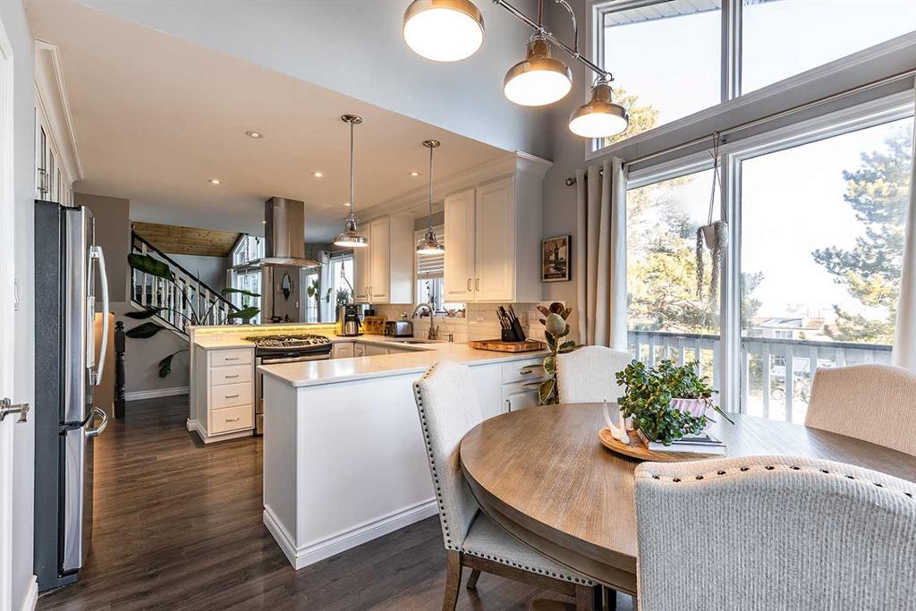 1168 16 Street NE is a truly special home, offering a rare blend of character, thoughtful updates, and an exceptional location with views of the river valley — all tucked away on a quiet, desirable street. The home’s unique design welcomes you through the front door into the lower level, where a spacious and inviting rec room/living area awaits. Functional details like built-in cabinetry, a Murphy bed, and charming wallpaper make this level incredibly versatile. Heading upstairs, the main level is nothing short of breathtaking. Vaulted cedar ceilings, expansive windows, and open sightlines flood the space with natural light and create an airy, uplifting feel. The living room is anchored by a brand new wood-burning fireplace complete with updated hearth, mantel, tile, and insert. The kitchen is elegant and seamlessly connects to the dining area, offering direct access to the large wrap-around deck where you can enjoy peaceful views and morning coffee overlooking the yard and river valley beyond. This level also features a spacious primary suite, complete with double closets and a private 3 pc ensuite. Two additional bedrooms, a beautifully updated 4 pc main bathroom, and a convenient laundry room complete this floor. Above it all, the third floor loft is a standout feature and a truly inspiring space. Bathed in natural light, it offers the perfect spot to relax by the windows and take in those gorgeous views! Whether used as a library, home office, family room, or creative retreat, the loft also includes smart built-in storage along both sides, making it just as functional as it is charming. Set on an impressive 11,800 sqft lot, the outdoor space is an absolute oasis. While winter has it resting, it’s easy to imagine how stunning and serene this yard becomes in the warmer months: mature landscaping with UGS, a peaceful pond with waterfall, relaxing hot tub, and a charming shed with electrical — all creating a private retreat rarely found in the city. Additional highlights include solar panels, adding efficiency and long-term value, and a home layout that feels both open and intimate. Homes with this much character, space, and setting rarely come available. This is a property that must be experienced to truly appreciate its warmth, charm, and timeless design.