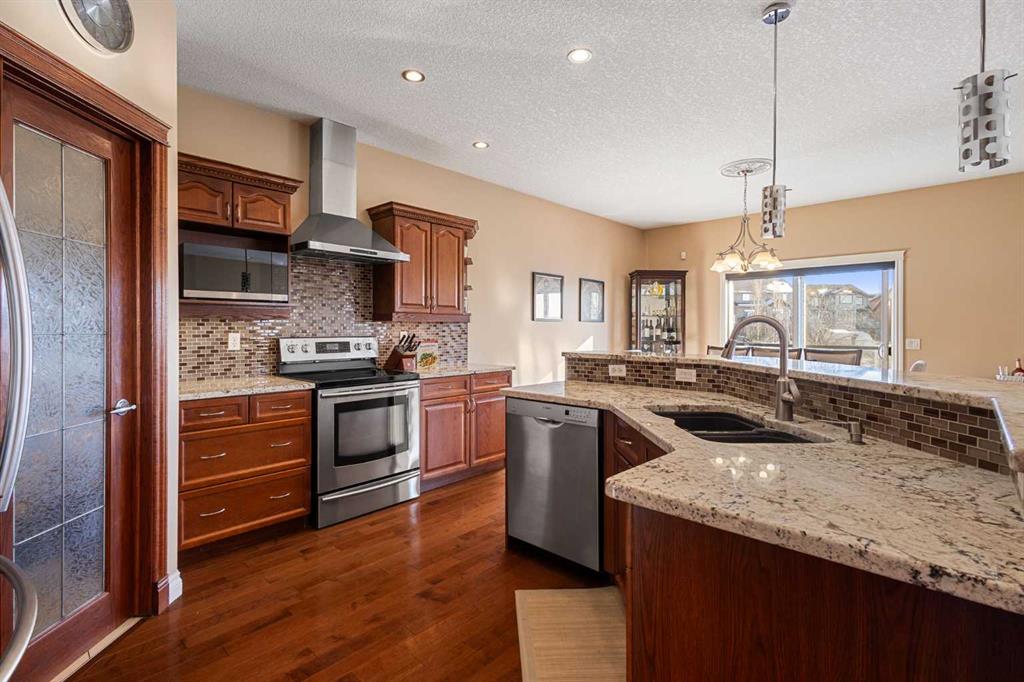 Welcome home! Experience refined living in the exclusive and desirable neighborhood of Hanson Ranch. SET on an EXTRA-DEEP, SE-facing WALKOUT LOT BACKING DIRECTLY ONTO RAVINE offering PRIVACY and a true connection to nature. ALL NEW ROOF, fresh exterior paint, professionally sealed driveway, and many other updates were completed in 2025. Additional highlights include CENTRAL A/C, OVERSIZED DOUBLE GARAGE with plenty of built-in storage, NAT GAS FIREPLACES, and expansive windows with year-round UNOBSTRUCTED NATURE VIEWS on all three levels. The main level is bright and open, featuring hardwood floors, a spacious living room with a fireplace, and large windows showcasing the ravine views. The Chef's dream kitchen flows seamlessly into the dining and living areas, offering granite countertops, stainless steel appliances, ample cabinetry, and a large island—perfect for everyday living and entertaining. Adding convenience is a MASSIVE walk-through pantry and mudroom/laundry area that leads to the oversized insulated garage. Upstairs features a VAULTED bonus room with a cozy FIREPLACE supplemented by LUTRON enabled dimmers for added ambience. Wake up every morning to picturesque NATURE VIEWS in the primary suite which connects to a large walk-in closet and 5-pc ensuite. Completing the upper floor are two bright secondary bedrooms and a spacious full bath. Experience the perfect multi-generational setup in this bright, illegal suite walkout basement. Highlights include a spacious rec room, gym area, and a 4th bedroom serviced by a full bath. The kitchenette is equipped with a stove and hood fan, with a mechanical room already roughed-in for a stackable laundry set. With its high ceilings and separate walkout entrance, this non-conforming suite offers privacy and comfort for extended family or long-term guests. Outdoors is where this property truly shines. The EXTREMELY RARE 164-FT DEEP LOT backs onto natural reserve with no rear neighbours, offering privacy, mature trees, and a backdrop that changes beautifully with the seasons. The maintenance free deck & patio are ideal for summer evenings and weekend gatherings, while the yard provides space for kids, pets, or quiet relaxation. This is a MUST-SEE property that won't last!