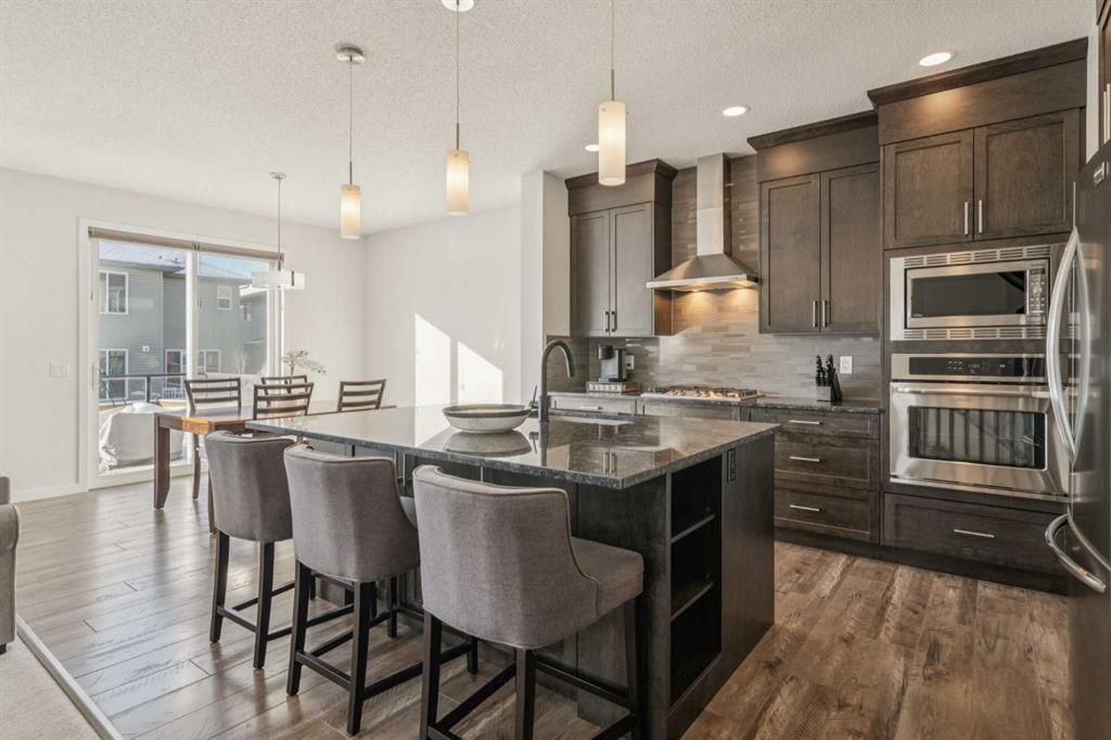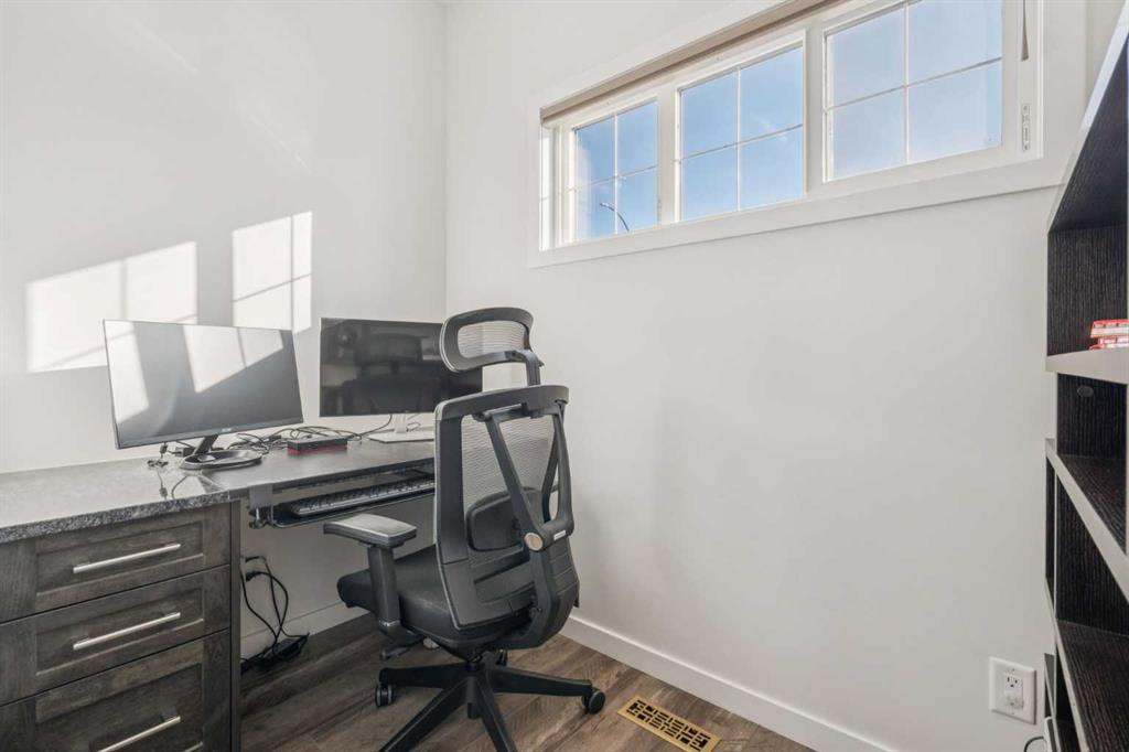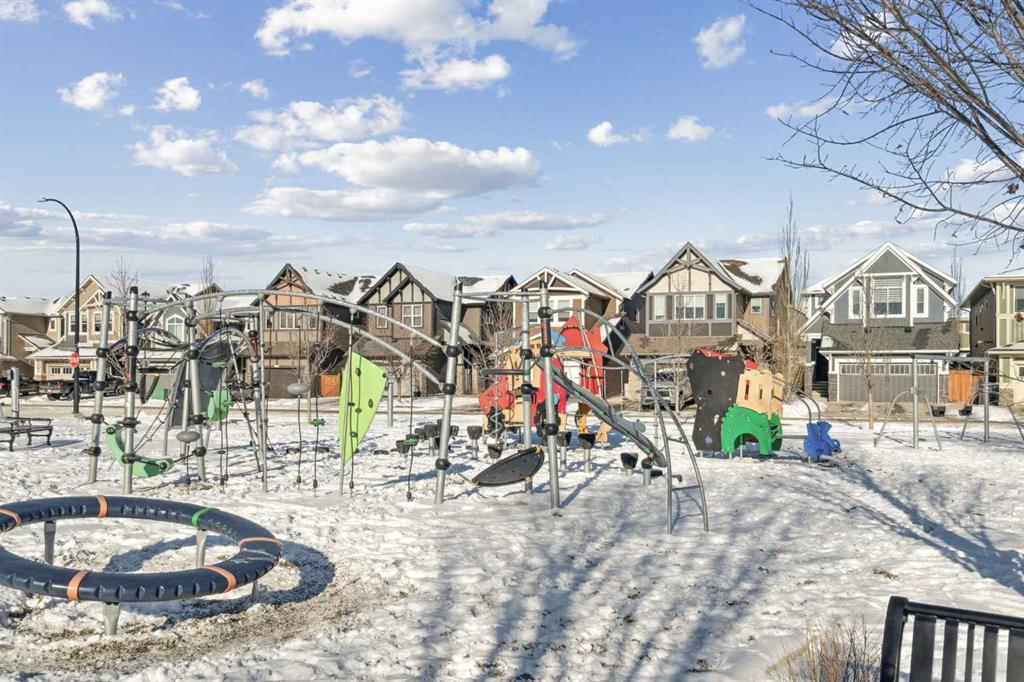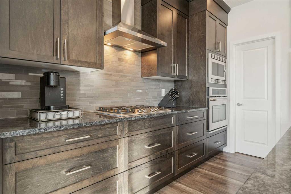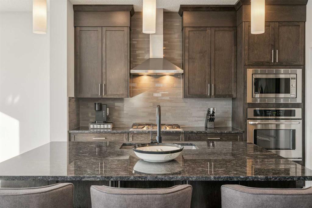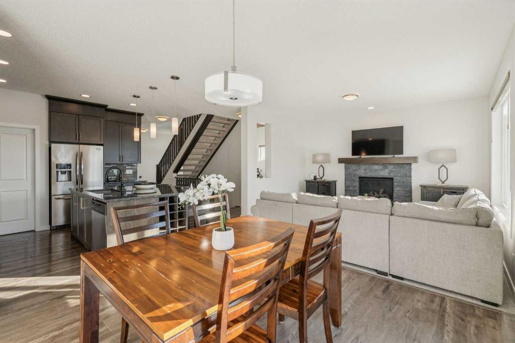 Welcome to this exceptional 2,242 sq ft home, perfectly situated on a premium corner lot fronting a park and playground. Built in 2016, this thoughtfully designed residence showcases a striking open staircase and upgraded VINYL PLANK FLOORS throughout, complemented by tile at the front entry and a FULLY FINISHED basement featuring a rubber subfloor for added warmth and comfort. The main level is designed for both everyday living and entertaining, offering a PRIVATE OFFICE, a cozy GAS FIREPLACE, and a seamless OPEN CONCEPT layout. The chef’s kitchen impresses with ceiling-height cabinetry, UPGRADED APPLIANCES, a built-in microwave, wall oven, gas cooktop and range hood, and timeless finishes throughout. Upstairs you will find VAULTED CEILINGS that elevate both the bonus room and the primary retreat. The spa-inspired ensuite features a tiled shower, relaxing soaker tub, double undermount sinks with QUARTZ COUNTERTOPS, and a WALK-IN CLOSET with custom built-ins. You can also enjoy the convenience of UPPER FLOOR LAUNDRY. The professionally FINISHED BASEMENT expands your living space with a stylish TV wall, mini fridge, dishwasher, barn door accents, and ample room to relax or entertain. ADDITIONAL HIGHLIGHTS include dual-zone heating, central A/C, a HEATED GARAGE with mudroom and built-in bench, a 75-gallon hot water tank with recirculation pump, UV furnace light, water softener, window coverings, and a private fire pit area. Meticulously maintained and truly MOVE-IN READY, this home offers comfort, style, and functionality in an unbeatable location.