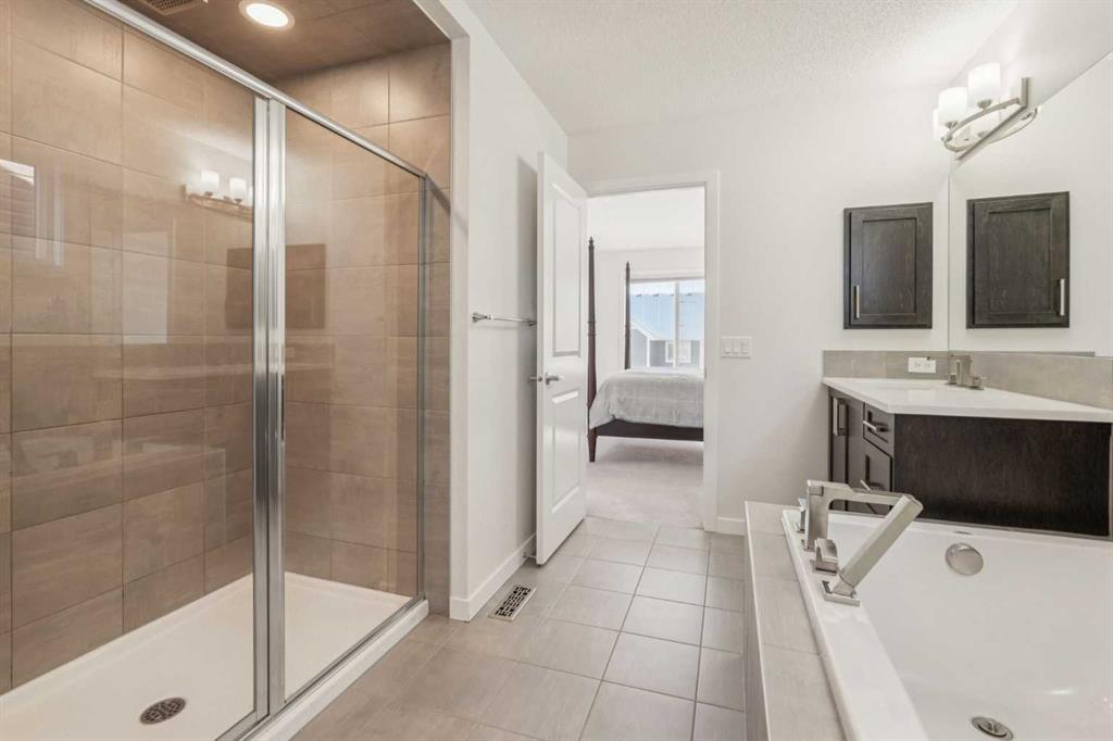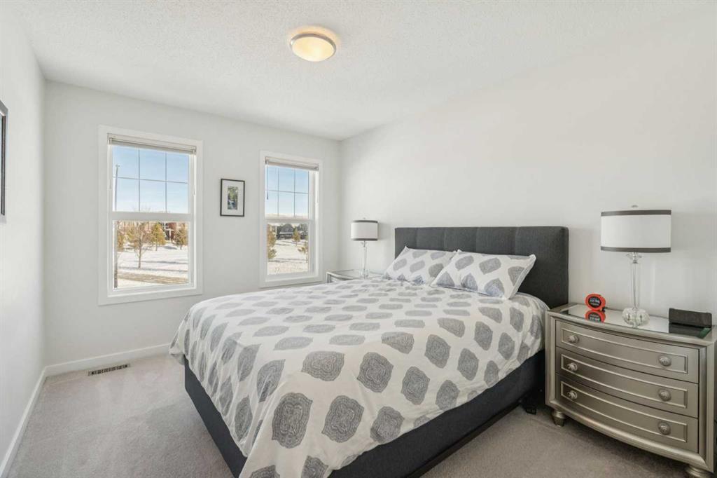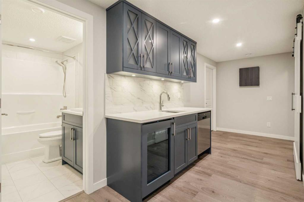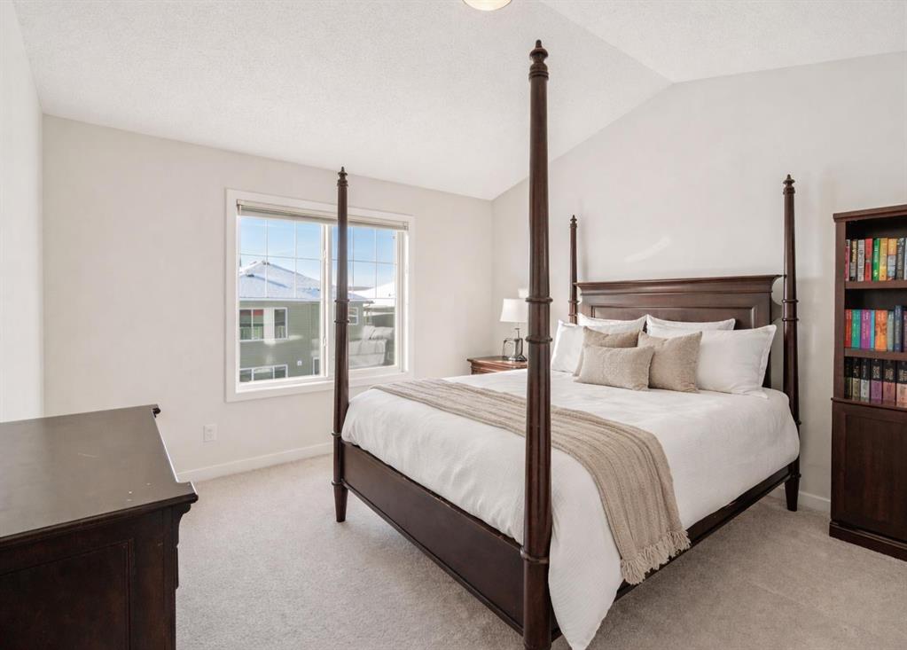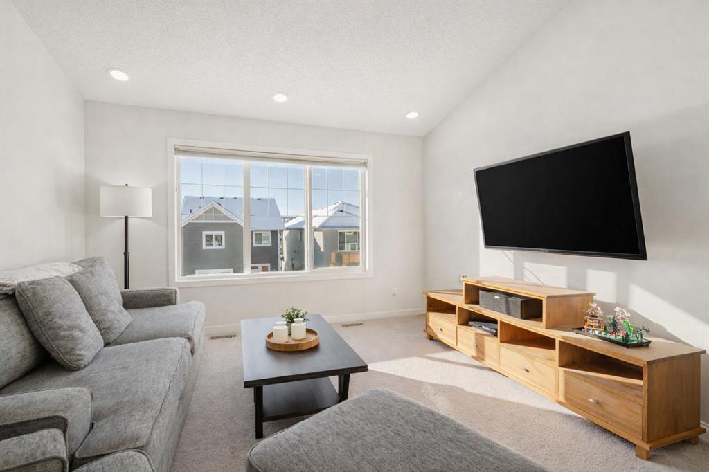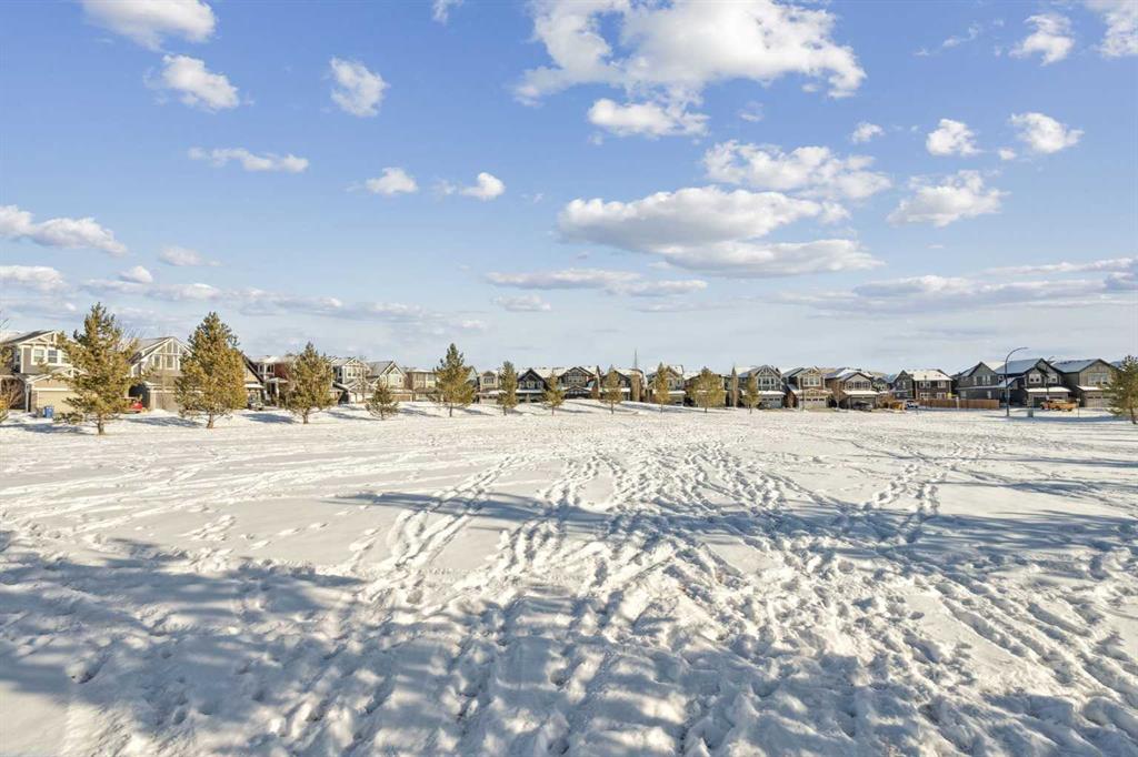 Welcome to this exceptional 2,242 sq ft home, perfectly situated on a premium corner lot fronting a park and playground. Built in 2016, this thoughtfully designed residence showcases a striking open staircase and upgraded VINYL PLANK FLOORS throughout, complemented by tile at the front entry and a FULLY FINISHED basement featuring a rubber subfloor for added warmth and comfort. The main level is designed for both everyday living and entertaining, offering a PRIVATE OFFICE, a cozy GAS FIREPLACE, and a seamless OPEN CONCEPT layout. The chef’s kitchen impresses with ceiling-height cabinetry, UPGRADED APPLIANCES, a built-in microwave, wall oven, gas cooktop and range hood, and timeless finishes throughout. Upstairs you will find VAULTED CEILINGS that elevate both the bonus room and the primary retreat. The spa-inspired ensuite features a tiled shower, relaxing soaker tub, double undermount sinks with QUARTZ COUNTERTOPS, and a WALK-IN CLOSET with custom built-ins. You can also enjoy the convenience of UPPER FLOOR LAUNDRY. The professionally FINISHED BASEMENT expands your living space with a stylish TV wall, mini fridge, dishwasher, barn door accents, and ample room to relax or entertain. ADDITIONAL HIGHLIGHTS include dual-zone heating, central A/C, a HEATED GARAGE with mudroom and built-in bench, a 75-gallon hot water tank with recirculation pump, UV furnace light, water softener, window coverings, and a private fire pit area. Meticulously maintained and truly MOVE-IN READY, this home offers comfort, style, and functionality in an unbeatable location.