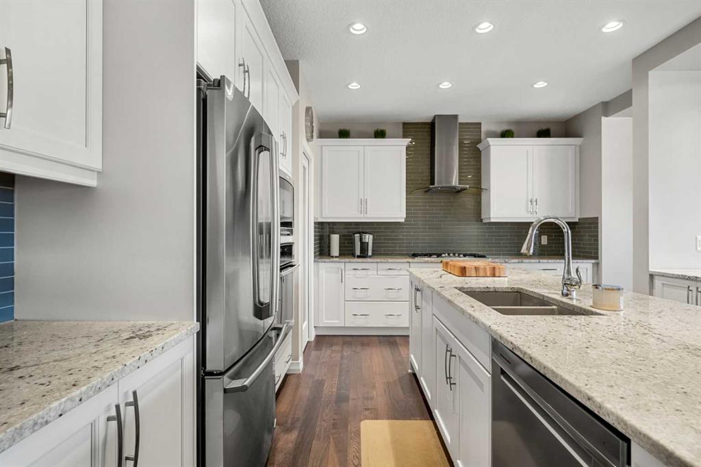 Welcome to 206 Mahogany Passage SE, a beautifully designed family home in the heart of Calgary’s premier LAKE COMMUNITY of Mahogany, offering over 2,500 square feet of thoughtfully planned living space with a seamless balance of style, comfort, and functionality. Step inside the private entryway that leads to the the open-concept main floor including hardwood flooring throughout. The spacious living room is anchored by a cozy gas fireplace, flowing effortlessly into the dining area—perfect for both everyday living and entertaining. The show-stopping kitchen features DOUBLE ISLANDS, built-in appliances, ample counter space, and generous pantry storage, making it ideal for hosting gatherings or preparing family meals. . A convenient two-piece powder room and a large mudroom with direct access to the oversized double attached garage complete the main level. Upstairs, the primary retreat offers a peaceful escape with a spacious walk-in closet and a luxurious five-piece ensuite with a custom tile and glass shower. Two additional well-sized bedrooms share a second five-piece bathroom, while upper-level laundry adds everyday convenience. A versatile bonus room completes this level, providing flexible space for relaxation, work, or play. The undeveloped lower level offers endless potential, with room for a future recreation area, home gym, media room, or additional storage—ready to be customized to suit your lifestyle. Step outside to your well manicured private backyard with NO REAR NEIGHBOURS. Enjoy the spacious deck perfect for entertaining and BBQing. Don't forget the Air Conditioner for the hot summer nights. Located in one of Calgary’s most desirable communities, Mahogany offers year-round lake access, scenic pathways, parks, schools, shopping, and everyday amenities just moments away. With exceptional living space, premium features, and an unbeatable neighbourhood lifestyle, this home is an opportunity not to be missed.