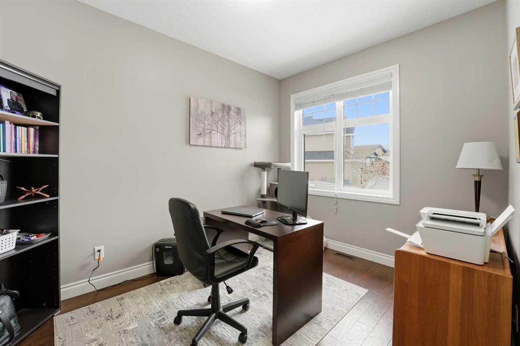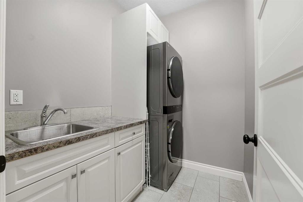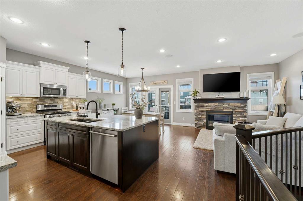Executive-style fully developed bungalow backing onto a walking trail, located on a massive SOUTH-facing pie lot in a quiet close! 5 bedroom + office, 3 bathroom home offers upscale finishes, functional design, and exceptional space throughout. The open-concept main floor features 9 ft ceilings, pot lights, and lighted niches. The chef’s kitchen includes custom cabinetry with crown moulding, granite countertops, full tile backsplash, built-in wine rack, gas range, corner pantry, and a large island with undermount sink and lowered eating bar. The living room is anchored by a gas fireplace with stacked stone surround, and the dining area opens to a south-facing covered deck with maintenance-free decking. The spacious primary suite accommodates a king bed and features a walk-in closet and spa-like 5pc ensuite with soaker tub, dual vanities, separate shower, and private water closet. A second bedroom, full bath, main floor office, mudroom with built-in lockers, and main floor laundry with cabinets and sink complete the level. The fully finished basement offers a big family room with wet bar, a media room with built-in speakers, projector and tiered seating, plus three additional bedrooms and a 5pc bath with dual sinks. In-floor heat adds year-round comfort. The heated triple attached garage is fully finished with epoxy floors, floor drain, and a drive-through door to the backyard with extra parking pad. The beautifully landscaped yard includes mature trees, shrubs, perennials, area for a hot tub, fire pit area, shed, and direct access to the walking path leading to green space and playgrounds. Additional features include central air conditioning, Gemstone lighting, gas stove, newer 75-gallon hot water tank (2024), and exceptional curb appeal.