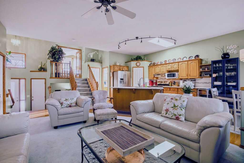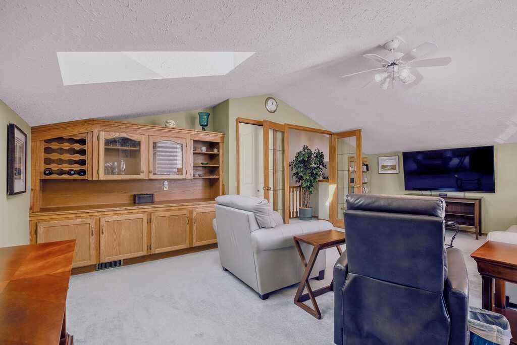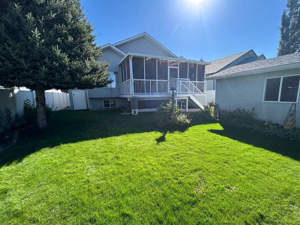 Welcome to your lovingly maintained and updated home located in Cambridge Glen, close to schools and recreational facilities, this home backs onto the bike/walking path system connecting you and your family to several parks including Dinosaur Hill just steps away. The yards are beautifully landscaped with large trees and lush gardens and feature an underground sprinkler system. The home boasts an open concept main floor with kitchen, dining area, living room, and full bathroom. You will immediately notice the soaring 10 foot ceilings with three skylights bringing in incredible natural light throughout the day. The kitchen features loads of cabinets, a large island, and a large corner pantry. The bonus room above the garage is great space for an office, den, or tv room, featuring built in cabinets and bar. The home has three bedrooms, incl the conveniently accessible main floor primary bedroom with en-suite bathroom and walk-in closet. The entry level features a den/office with closet which could also be used as an additional bedroom. The basement features two additional bedrooms, a 4 piece bathroom, and a rec room. The large covered and fully screened-in composite (maintenance free) back deck is a tranquil oasis to enjoy your morning coffee or game night with the family. Head down from your covered deck, through the landscaped back yard and you'll find the heated and finished 14x18 shop, perfect for the hobbyist/tinkerer/gardener/mechanic. At the front of the home you'll find the heated double attached garage and veranda. Recent updates include: new 50 year architectural roof shingles, eavestroughs and facia (2025), new skylights (2025), new A/C (2025), newer high efficiency furnace (2023), newer HWT (2023), Bosh dishawsher (2024). So many more features to mention... convenient main floor laundry, gas fireplaces up and down, water softener, central vac, additional shed for storage, maintenance free vinyl and chain link fencing, gas BBQ outlet, and Telus Fibre internet wiring. This home shows incredibly well with clear pride of ownership throughout.