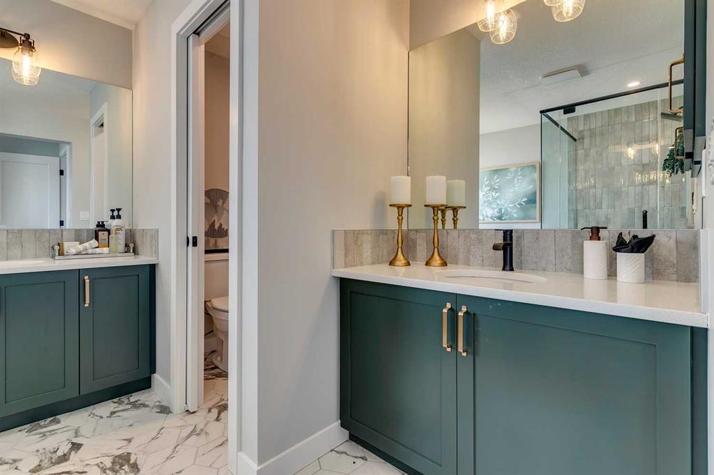 Set within the vibrant and fast-growing community of Seton, this brand-new home at 182 Setonstone Green SE by Trico Homes offers a rare combination of modern design, functional living space, and income-generating potential. Thoughtfully crafted with both style and versatility in mind, this residence is ideal for families, professionals, or investors seeking long-term value in one of southeast Calgary’s most connected neighbourhoods. The main living area immediately impresses with high ceilings and expansive windows, flooding the space with natural light and creating a bright, open atmosphere. The grand fireplace anchors the living room, adding warmth and architectural presence. The kitchen is designed to inspire, featuring quartz countertops, a gas stove, built-in oven, and ample cabinetry—perfect for both everyday cooking and entertaining. An added highlight is the separate spice kitchen, complete with an electric stove and dedicated sink, offering exceptional convenience for those who love to cook. Upstairs, the home features three well-appointed bedrooms and a full upper-level laundry room, keeping daily routines efficient and organized. The primary bedroom serves as a private retreat with a luxurious 5-piece ensuite, including dual sinks, a soaker tub, and a walk-in shower. The walk-in closet with built-in organizers completes the space, providing both function and elegance. Two additional bedrooms and a full bathroom round out the upper level, ideal for family living. The fully finished basement adds significant value, offering a legal secondary suite with two bedrooms, one full bathroom, a separate entrance, and its own laundry closet—perfect for rental income, extended family, or guests. Additional features include a double attached garage, modern finishes throughout, and a location just minutes from Seton’s Urban District, South Health Campus, schools, shopping, restaurants, and major commuter routes. Combining contemporary design, thoughtful upgrades, and a fully legal suite, 182 Setonstone Green SE delivers exceptional flexibility and lifestyle appeal in one of Calgary’s most desirable new communities. *Measurements have been pulled from builder drawings*