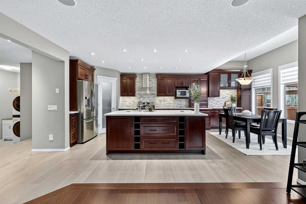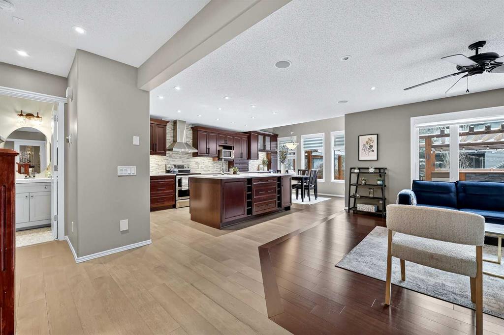 **OPEN HOUSE - Saturday, January 31 & Sunday, February 1 - 1PM-4PM*** Welcome to this well cared for and upgraded family home in Panorama Hills! Offering over 2,900 sq ft of developed living space designed for comfort, entertaining, and everyday living. The bright, open concept main floor features gleaming hardwood flooring throughout and is filled with natural light. A main floor office, updated 2-piece bathroom, and laundry area with sink add functionality for busy households. The heart of the home is the $50,000 fully renovated kitchen, complete with custom cherry wood cabinetry, crisp quartz countertops, tile backsplash, pantry, large center island with undermount sink, and upgraded stainless steel appliances: including a dual oven and water-dispensing refrigerator. The kitchen opens to the dining area with extended cabinetry, 10-foot ceilings and a garden door leading to a newly built $55,000 Hawaiian themed two-tiered composite deck with custom wood pergolas, creating an ideal outdoor entertaining space! The large living room is anchored by a floor-to-ceiling stone faced fireplace and features a large picture window overlooking the sunny SW backyard. Upstairs the huge, vaulted bonus room offers a flexible space for a kids play area, games room, or movie room! The spacious primary bedroom features a spa-inspired ensuite with tile flooring, soaker tub, seperate shower, and a walk-in closet with custom organizers. Two additional well-sized bedrooms and another full 4-piece bathroom complete the upper level. The fully finished basement expands the living space with a large recreation room with full wet bar, spacious fourth bedroom, and full bathroom, perfect for guests or entertaining! Additional highlights include central air conditioning for those hot summer days and an oversized 21.5' x 21.5’ double attached garage. Also, brand new roof shingles, fascia, and eaves completed in Fall 2025! Prime location on a quiet cul-de-sac adjacent to the ravine pathways and surrounded by parks, schools, shopping, and transit! Quick access in and out and to Stoney Trail ring road, making commuting a breeze. This move-in-ready home offers exceptional value in one of NW Calgary’s most established and sought after communities.