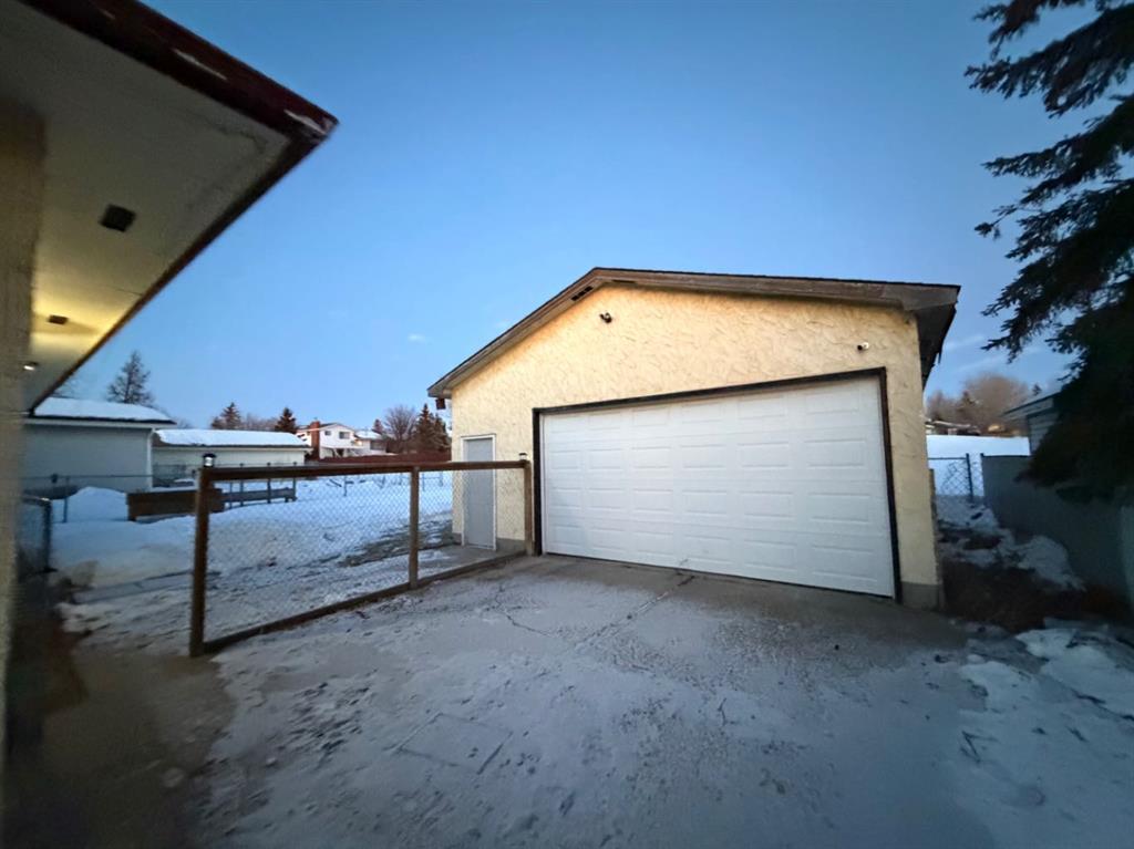 This is a fantastic opportunity for first-time buyers, young families, or anyone looking for space to grow. Set on a large lot and backing directly onto a park, this home offers privacy, green views, and room to expand. Upstairs features three comfortable bedrooms, including a primary with a private two-piece ensuite. The undeveloped basement provides a blank canvas for future bedrooms, a family room, or a suite—perfect for adding long-term value. Recent updates include flooring, trim, paint, and select windows, giving the home a fresh, move-in-ready feel. Outside, you’ll love the oversized 24’ x 24’ detached shop—ideal for vehicles, hobbies, or extra storage. Located in a desirable, family-friendly area with quick access to schools, parks, and amenities, this property delivers space, flexibility, and lifestyle at an exceptional value.