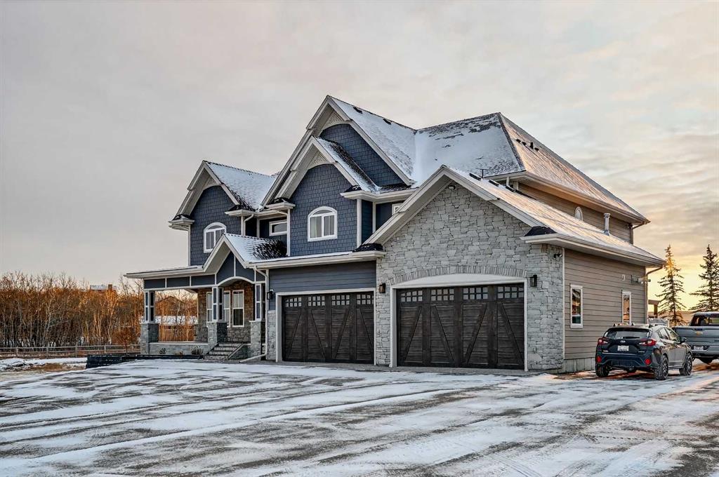 **COME JOIN US AT OUR OPEN HOUSE SATURDAY JANUARY 31ST FROM 11-3PM** Welcome to a truly exceptional Foothills estate where refined design, modern luxury, and wide-open space come together in perfect balance. Set on 3.1 fully fenced and gated acres, this impressive 4,800 sq ft residence is tucked into one of the area’s most sought-after upscale subdivisions, offering privacy, convenience, and breathtaking views of the mountains, rolling valley, and even glimpses of the city skyline. The striking exterior immediately sets the tone with HardiePlank siding, extensive stone detailing, Gemstone lighting, a welcoming front porch, and a brand new 44'x20' cedar deck designed for entertaining and sunset views roughed in for an outdoor fireplace. A heated 4-car garage and a newly completed 1,420 sq ft detached workshop, architecturally matched to the home with freshly paved access, provide exceptional space for vehicles, hobbies, or ample storage. Step inside to soaring 20-foot ceilings, oversized windows, and sun-filled living spaces anchored by a modern fireplace. The main floor is thoughtfully laid out with a private home office, a grand living room, and a refined dining area with a statement feature wall and fireplace. The chef’s kitchen is fully outfitted with newer high-end appliances including a brand new chef's dream gas stove and dual ovens, quartz countertops, a large island, modern cabinetry and a walk-in pantry, perfectly blending function and style. A generous recreational flex space offers endless possibilities. An ideal games room, home gym, theatre, man cave, or easily converted into a main-floor bedroom with exterior access to the massive deck. Upstairs, retreat to a large bonus room with mountain views, the perfect place to relax and unwind. Two spacious bedrooms are connected by a beautifully finished Jack & Jill bathroom, while a designer laundry room adds everyday convenience. Further down the open hallway you’ll find the primary suite that is nothing short of spectacular!! Featuring west-facing mountain views, its own fireplace, and the showstopping en-suite bathroom with top tier luxury, complete with a deep soaker tub, his and hers sinks and vanities, massive walk-in shower, designated water closet, and an expansive walk-in that truly has the WOW Factor. With 3 large bedrooms, 3.5 baths, multiple flex spaces for work, fitness, play, or entertaining, and remarkably efficient utilities, this home delivers both luxury and practicality. Enjoy nearby walking and quad trails, while being just 5 minutes to Okotoks, 7 minutes to Costco, 45 minutes to downtown Calgary, and 50 minutes to the airport. This property truly stands above the rest offering an unmatched combination of location, craftsmanship, space, and lifestyle. Schedule your private tour today and experience a home that genuinely has it all.