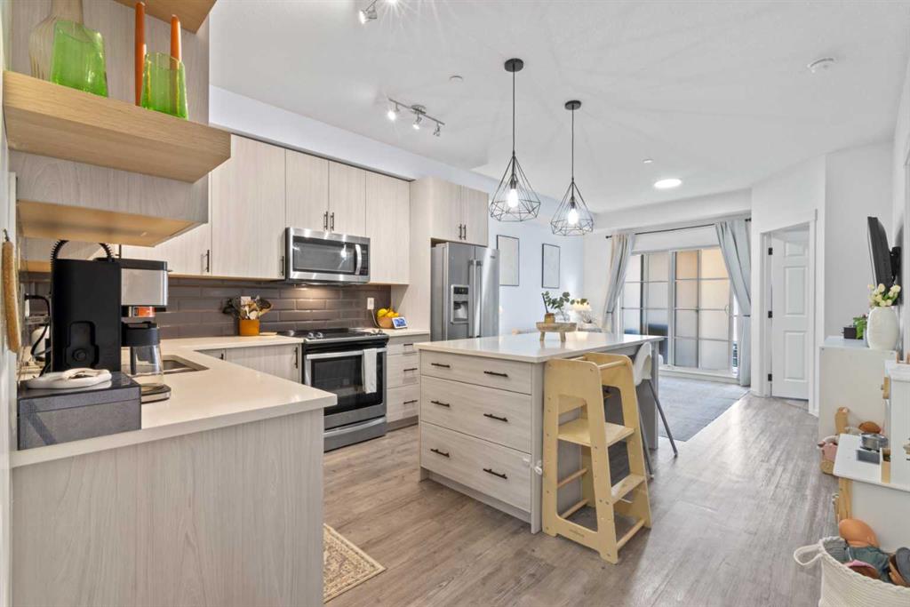 Welcome to Unit #6214 at Legacy Park II, a bright and stylish condo built by award-winning Brad Remington Homes, ideally located in Legacy Park within the heart of the family-friendly community of Legacy. This contemporary 2-bedroom, 1-bathroom condo offers 658 sq ft of thoughtfully designed living space. The primary bedroom features a large window and a convenient two-way walk-through bathroom. Luxury vinyl plank flooring flows throughout the modern open-concept layout, which includes a functional kitchen with a large island perfect for entertaining, quartz countertops, and a stainless-steel appliance package. Enjoy abundant natural light and sunny days on your south-facing balcony. The unit also includes in-suite laundry, one titled parking stall, and an assigned storage unit for added convenience. Legacy offers an unmatched urban lifestyle where nature, convenience, and community seamlessly intersect. Residents enjoy over 300 acres of environmental reserve, 12 playgrounds, and four vibrant commercial shopping districts, including Legacy Township. The community is home to the newly built All Saints High School, with a new K–9 school opening in 2026. With parks, schools, shopping, dining, fitness facilities, and entertainment just steps away, this condo offers exceptional value and effortless everyday living. Book your showing today.