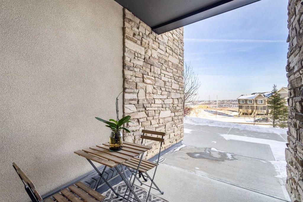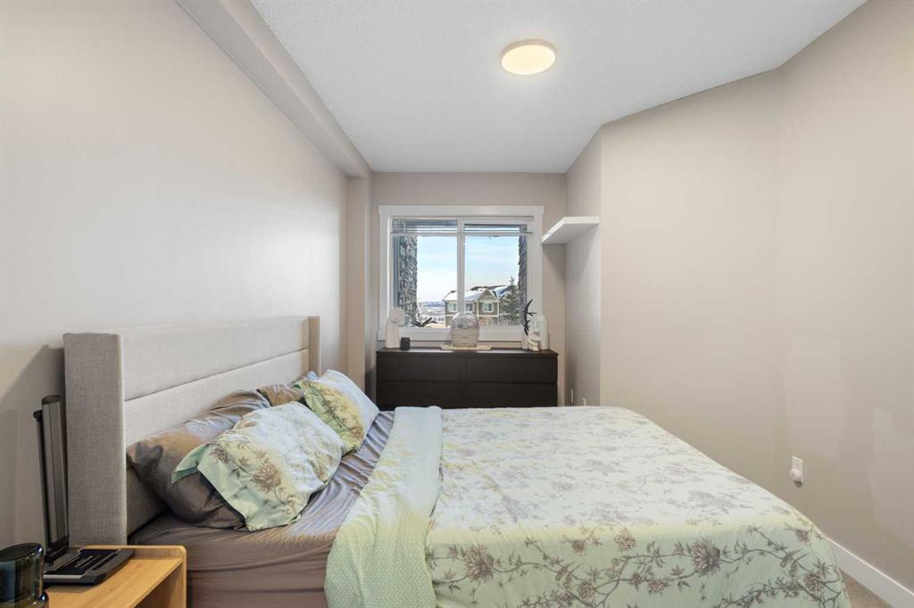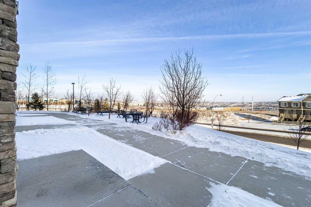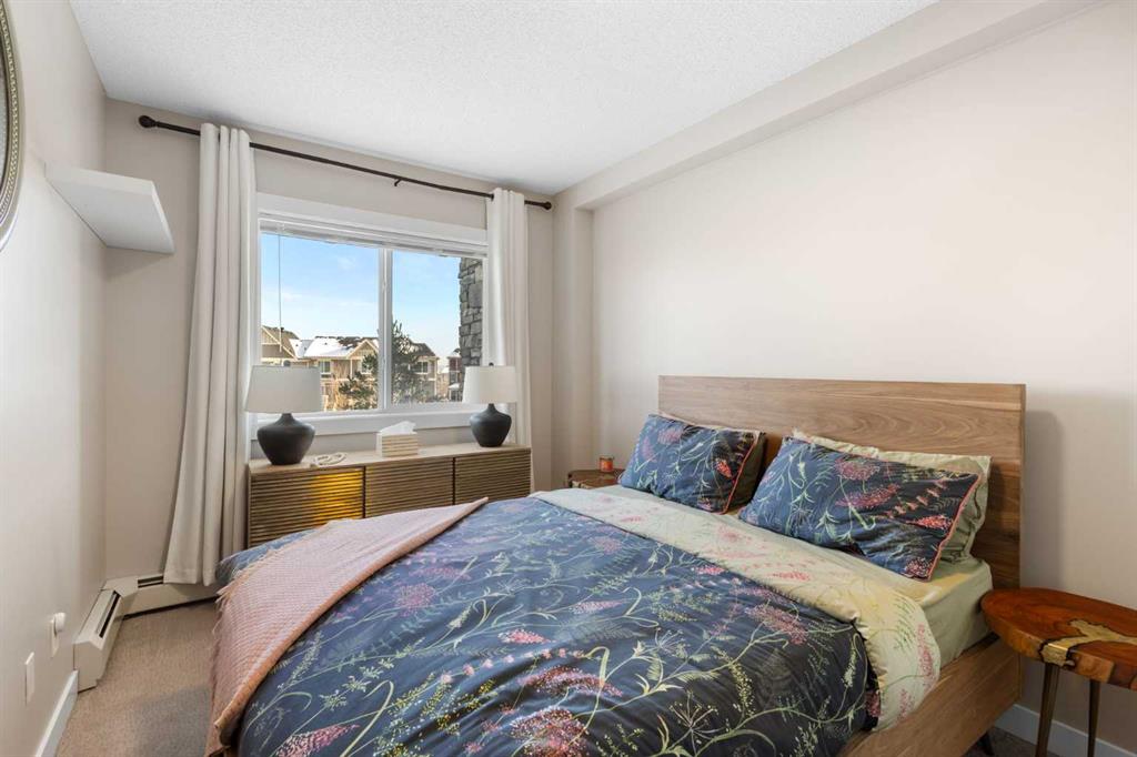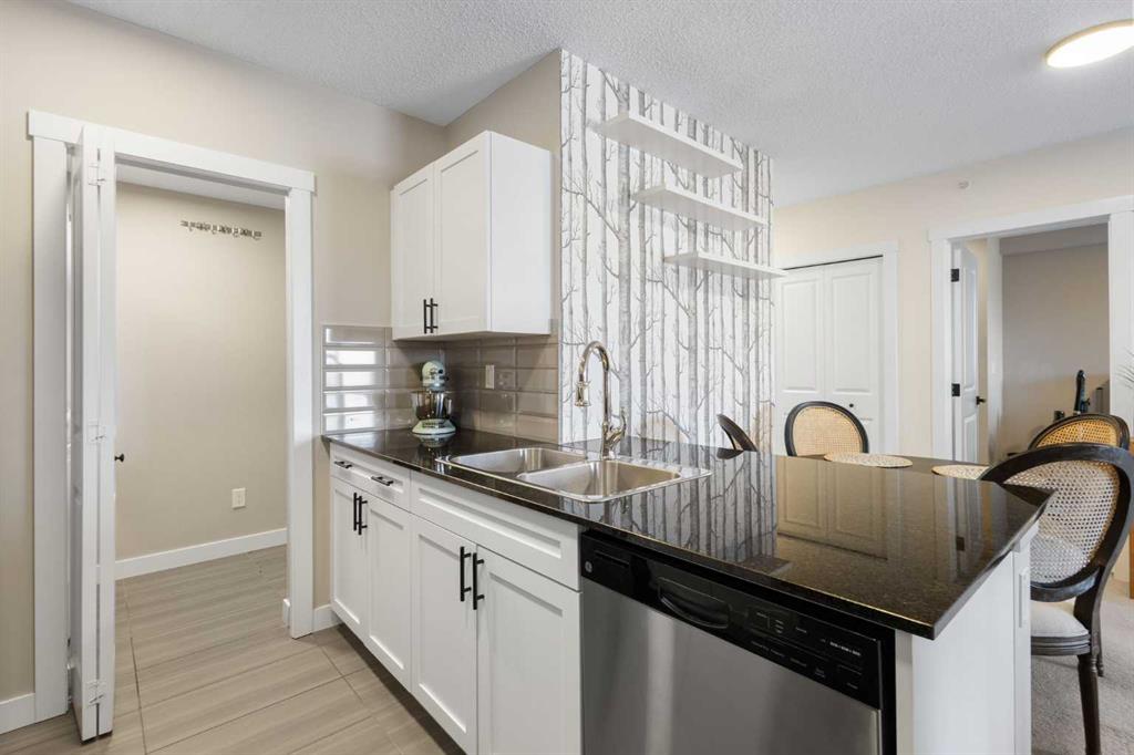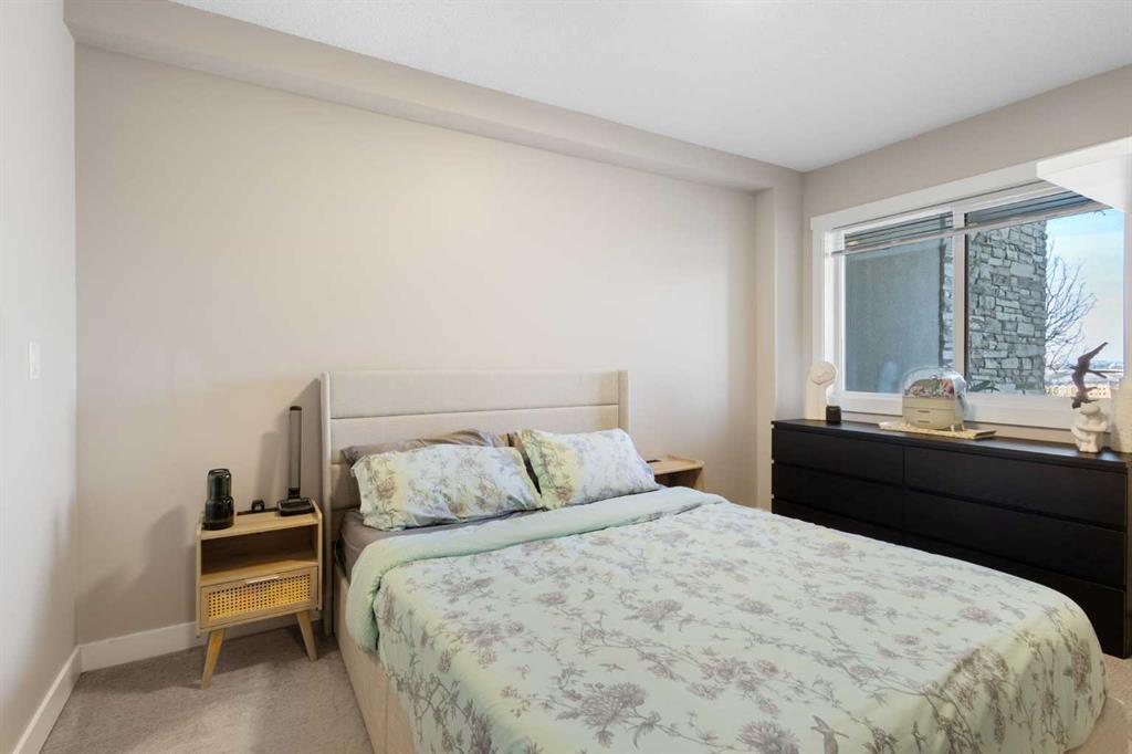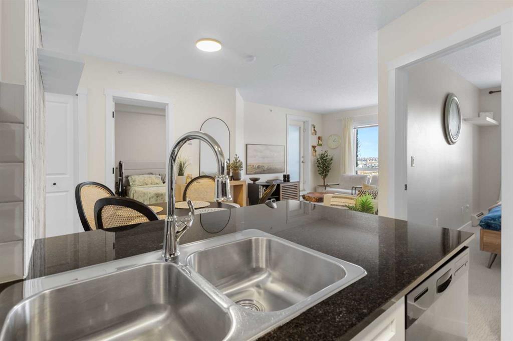 Discover an excellent opportunity to own in Kincora’s most affordable concrete and steel 8-storey mid-rise, perched on a hilltop with sweeping panoramic views. Designed as a modern urban village, this well-built complex offers exceptional peace, comfort, and durability. This 2-bedroom, 2-bathroom condo is attractively priced, features low condo fees, and includes heated titled underground parking located just steps from the unit. Offering over 750 sq ft (RMS), the layout is efficient, stylish, and highly functional. The contemporary kitchen showcases white cabinetry, stainless steel appliances, tile backsplash, a pantry, and black granite countertops. A peninsula accommodates up to three bar stools, creating an ideal space for casual dining and entertaining. The open living and dining area is filled with natural light from its east exposure, enjoying warm morning sun while remaining comfortable throughout the day. From here, step out to the concrete patio, which provides privacy along with convenient access to walking paths and shared green spaces with picnic tables. The primary bedroom is generously sized and includes a walkthrough closet leading to a 3-piece ensuite finished with granite countertops and modern cabinetry. A second well-proportioned bedroom sits on the opposite side of the unit, offering excellent separation and flexibility for guests or a home office. Additional features include a spacious in-unit laundry and storage room, a rooftop terrace with community views, ample visitor parking, and pet-friendly living with board approval. All daily amenities are within walking distance, including Walmart, restaurants, cafes, banks, daycares, schools, parks, and playgrounds. Nearby shopping options include Creekside, Beacon Hill Centre, and Costco. Quick access to YYC International Airport, Stoney Trail, Deerfoot Trail, and major roadways makes commuting easy. Whether you’re buying your first home, downsizing, or investing, this property delivers strong value in a prime location.