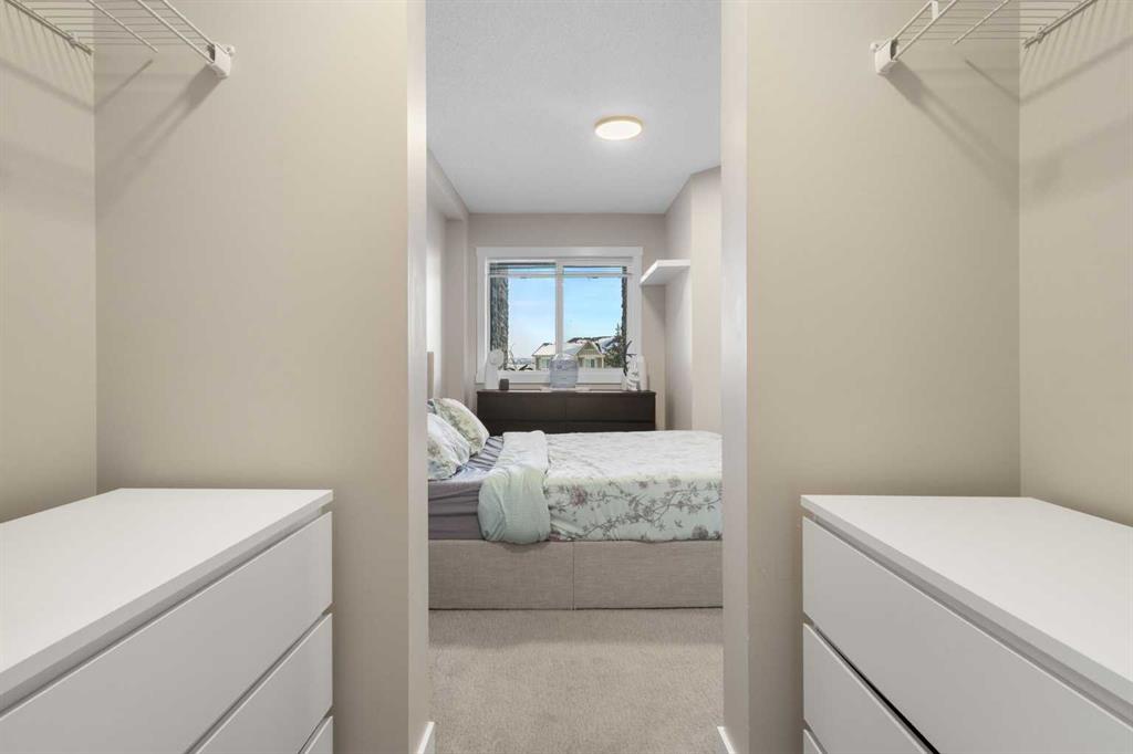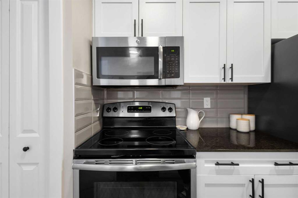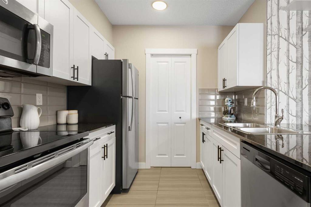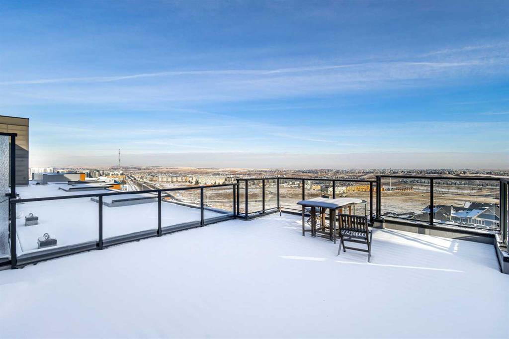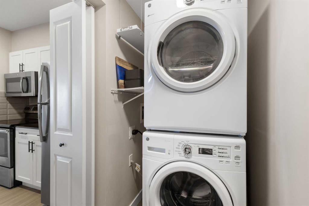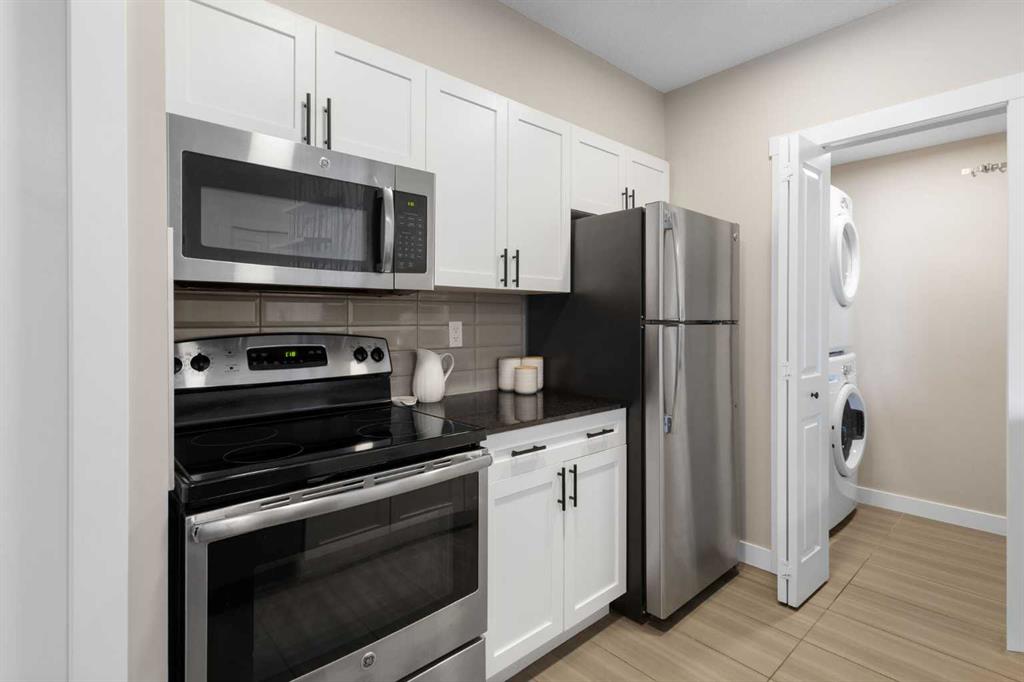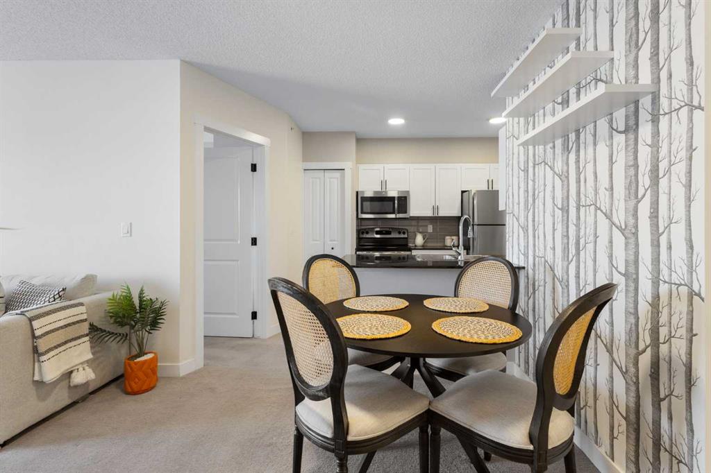 Discover an excellent opportunity to own in Kincora’s most affordable concrete and steel 8-storey mid-rise, perched on a hilltop with sweeping panoramic views. Designed as a modern urban village, this well-built complex offers exceptional peace, comfort, and durability. This 2-bedroom, 2-bathroom condo is attractively priced, features low condo fees, and includes heated titled underground parking located just steps from the unit. Offering over 750 sq ft (RMS), the layout is efficient, stylish, and highly functional. The contemporary kitchen showcases white cabinetry, stainless steel appliances, tile backsplash, a pantry, and black granite countertops. A peninsula accommodates up to three bar stools, creating an ideal space for casual dining and entertaining. The open living and dining area is filled with natural light from its east exposure, enjoying warm morning sun while remaining comfortable throughout the day. From here, step out to the concrete patio, which provides privacy along with convenient access to walking paths and shared green spaces with picnic tables. The primary bedroom is generously sized and includes a walkthrough closet leading to a 3-piece ensuite finished with granite countertops and modern cabinetry. A second well-proportioned bedroom sits on the opposite side of the unit, offering excellent separation and flexibility for guests or a home office. Additional features include a spacious in-unit laundry and storage room, a rooftop terrace with community views, ample visitor parking, and pet-friendly living with board approval. All daily amenities are within walking distance, including Walmart, restaurants, cafes, banks, daycares, schools, parks, and playgrounds. Nearby shopping options include Creekside, Beacon Hill Centre, and Costco. Quick access to YYC International Airport, Stoney Trail, Deerfoot Trail, and major roadways makes commuting easy. Whether you’re buying your first home, downsizing, or investing, this property delivers strong value in a prime location.