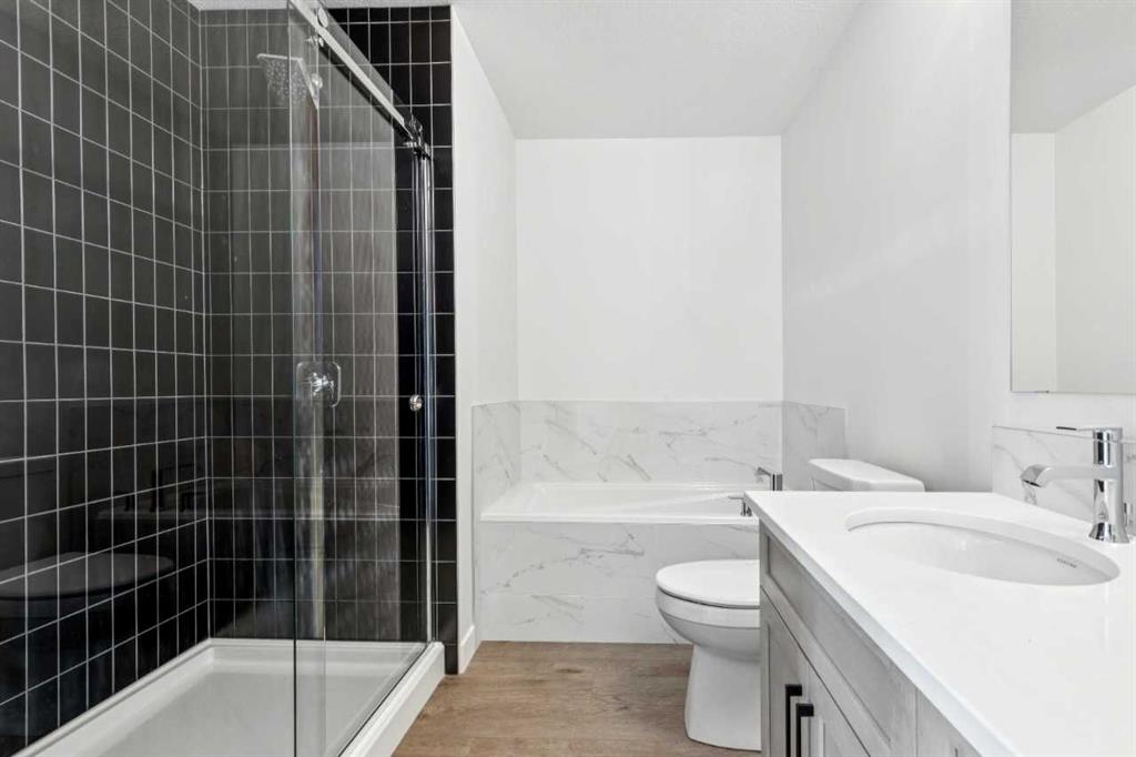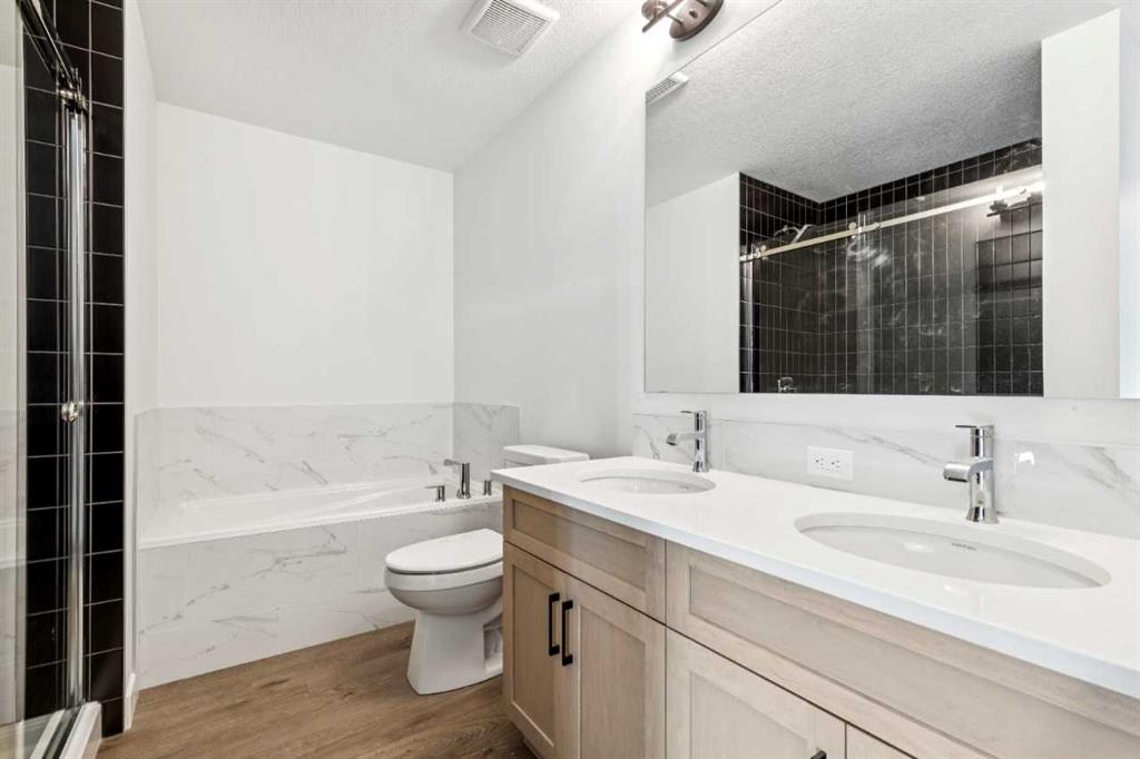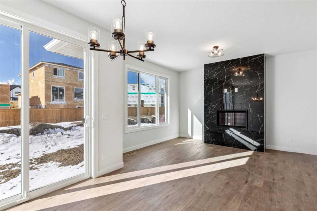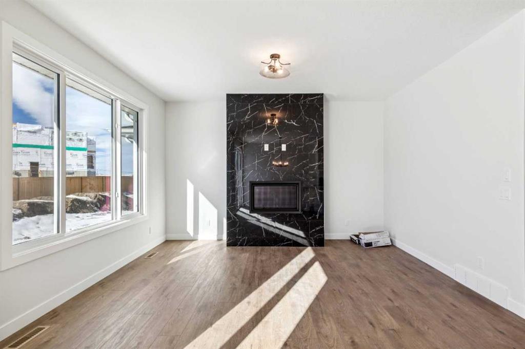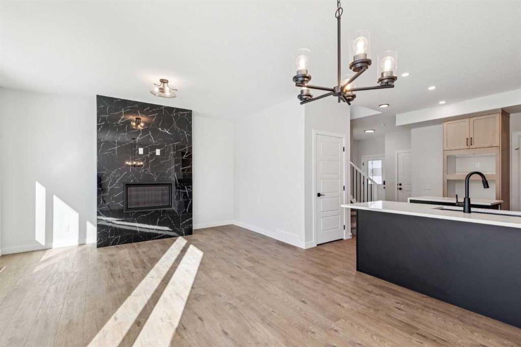 Welcome to the Valmore 4 by Sterling Homes Calgary. Built by a trusted builder with over 70 years of experience, this home showcases on-trend, designer-curated interior selections tailored for a home that feels personalized to you. Energy efficient and smart home features, plus moving concierge services included in each home. Built to 2025 specifications, this home features LVP throughout the main floor and all wet areas, triple-pane and additional windows, and a gas fireplace with floor-to-ceiling tile. The executive kitchen offers built-in stainless steel appliances, gas cooktop, fridge with water and ice, a peninsula layout with waterfall island edge, walk-in pantry, and Quartz countertops with undermount sinks. The primary bedroom includes a 5-piece ensuite with soaker tub, tiled walk-in shower with niche, and stylish finishes. With 9' basement wall height and a BBQ gas line rough-in, this home delivers comfort, efficiency, and modern design. This energy-efficient home is Built Green certified and includes triple-pane windows, a high-efficiency furnace, and a solar chase for a solar-ready setup. With blower door testing that may be eligible for up to 25% mortgage insurance savings, plus an electric car charger rough-in, it’s designed for sustainable, future-forward living. Featuring a full range of smart home technology, this home includes a programmable thermostat, ring camera doorbell, smart front door lock, smart and motion-activated switches—all seamlessly controlled via an Amazon Alexa touchscreen hub. Some photos are representative.