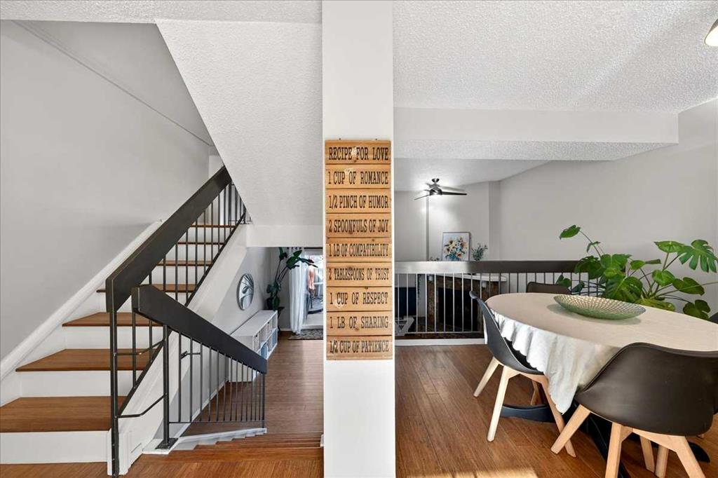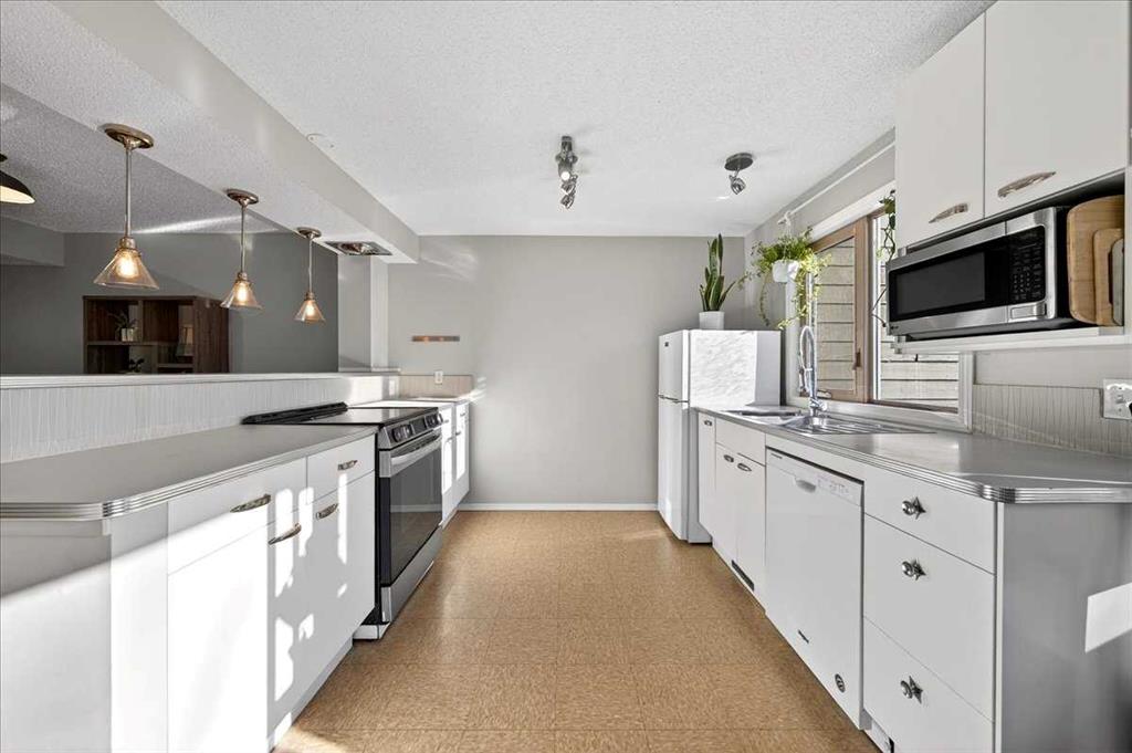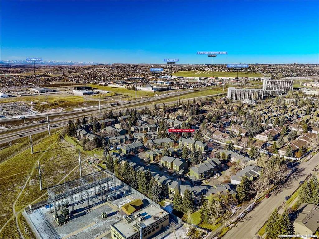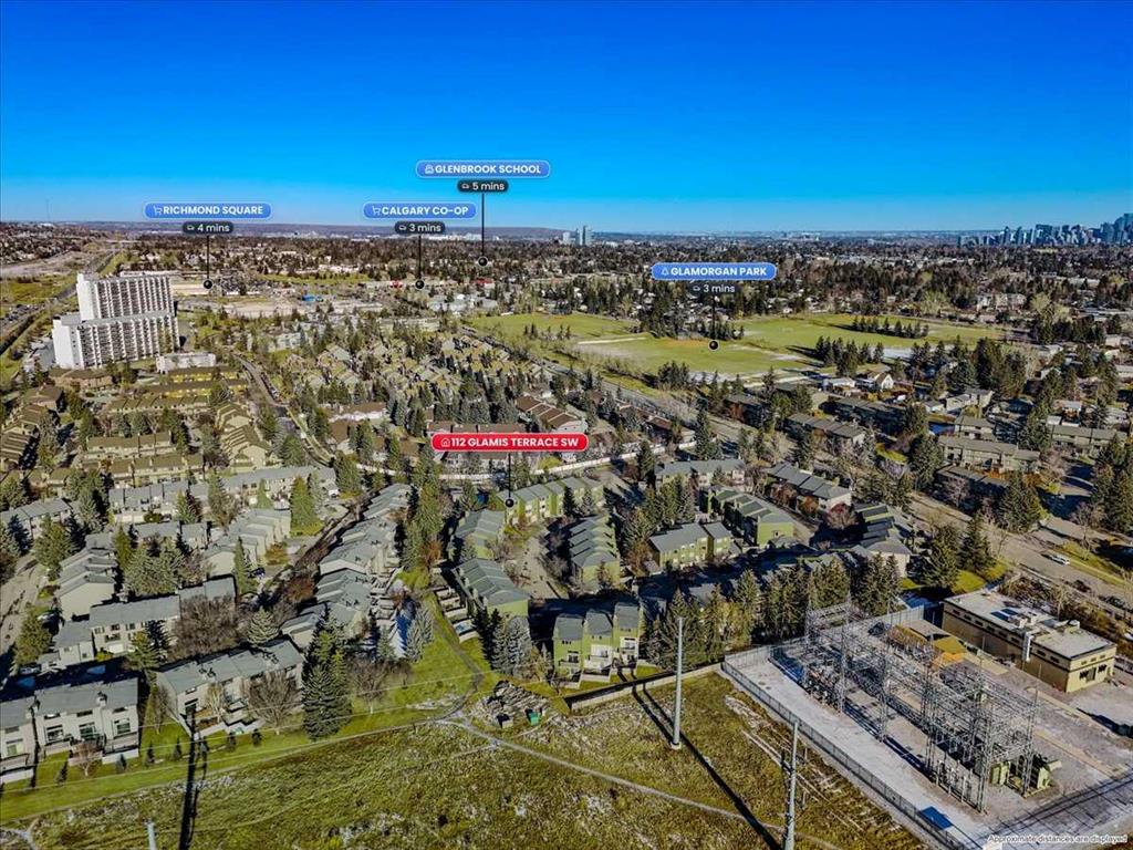 Unique and ideally located, this townhouse is found in the sought after community of Glamorgan. A bright and airy SW facing home - perfectly positioned END UNIT not only sides, but also backs onto peaceful GREEN SPACE with mature trees. Minutes away from all the amenities you need – public transit, shopping, groceries and Stoney trail for quick drive anywhere in the city. SIGNAL HILL SHOPPING CENTER, RICHMOND SQUARE, MOUNT ROYAL UNIVERSITY are only minutes away, while excellent schools, parks, playgrounds and pathways are abundant in this walkable community. In this WEST SIDE location, a bright and spacious 3-bedroom, 2.5 baths offers so many perks. A SINGLE CAR GARAGE WITH DRIVEWAY for your vehicles, while ELECTRIC HEAT is ready to go in the garage and your own PRIVATE AND SPACIOUS YARD WITH DECK offers endless options to enjoy your space while facing the mature trees in the area. 12 FT CEILINGS greet you in the living area off the deck, a WOOD BURNING FIREPLACE soothes you on those chilly evenings, and the OVERSIZED KTICHEN and dining area on the next level up are glowing with sunlight year round. NEW APPLIANCES in 2025 include REFRIGERATOR, ELECTRIC OVEN, as well as a WASHER AND DRYER. Upstairs you’ll find a massive primary bedroom with wall to wall closets and a 4 piece ensuite. 2 secondary bedrooms and another 4 piece bath complete the upper floor with the open stairwell flooding light in from below. Recent upgrades include new flooring, newer windows, and upgraded attic insulation. The basement level is unfinished, but still offers plenty of opportunity and storage space for added convenience. Located close to everything, this well maintained complex is tucked into one of Calgary’s most established and desirable communities offering comfort, space, and unbeatable value. This one might be “THE ONE”