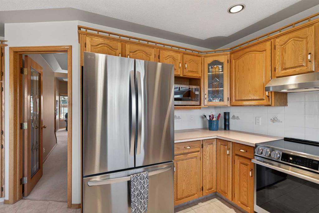 Backing West onto a winding urban environmental reserve is this mint-condition two storey in the highly sought-after estate community of Hamptons. Custom-crafted for the builder, this truly wonderful home enjoys a total of 5 bedrooms & 4 full bathrooms, glistening tile floors & oak woodwork, 2 fireplaces, oversized 2 car garage & a host of updates including new furnaces, metal roof, hot water tank & new PEX plumbing. Perfectly designed with the family in mind, you will love the inviting design & flow of this beautiful home, which features the gracious living room with bow window & soaring vaulted ceilings, elegant open concept formal dining room & spacious West-facing family room with brick-facing fireplace, built-ins & views of the backyard. The bright & sunny kitchen is loaded with cabinets & counterspace, & comes complete with phone desk, dining nook with access to the backyard deck & upgraded appliances including stainless steel Miele dishwasher & brand new LG stove (2026) & LG fridge (2026). Upstairs there are 3 great-sized bedrooms & 2 full bathrooms, highlighted by the oversized owners’ retreat with big bow window, large walk-in closet & gorgeous ensuite – renovated in 2022 - with tile floors, oversized glass shower, free-standing soaker tub & quartz-topped double vanities. The other 2 bedrooms each have their own private balconies & share a Jack & Jill-style bathroom with 2 sinks. The lower level is finished with another bedroom & bathroom with steam shower, cold room with built-in shelves & fantastic rec room with built-in shelving, lounge with gas stove fireplace & home office with built-in desk & shelving. The main floor also has your laundry room with LG washer & dryer, another bedroom (or home office) & bathroom with shower. Additional features & extras include a 2nd floor loft overlooking the living room, oversized garage with built-in storage, fenced backyard with gate to the reserve & deck with under-deck storage & new covering/glass/railings (2020), underground sprinklers & in addition to the new PEX plumbing (2025), new furnaces (2024), water tank (2019) & metal roof (2011 with transferrable lifetime warranty), there is newer cladding on the windows (2012), new garage door (2016), 3 new toilets (2022), 2nd floor window blinds (2022), landscaping (backyard & side in 2021) & vinyl decking on the 2 upper balconies (2020). A truly incredible home you will be proud to call your very own, here on this quiet crescent within walking distance to the Hamptons Park tennis courts & bus stops, just minutes to the Hamptons School & local shopping plus quick easy access to highly-rated schools & major retail centers, Crowfoot Centre & LRT, University of Calgary, hospitals & downtown.