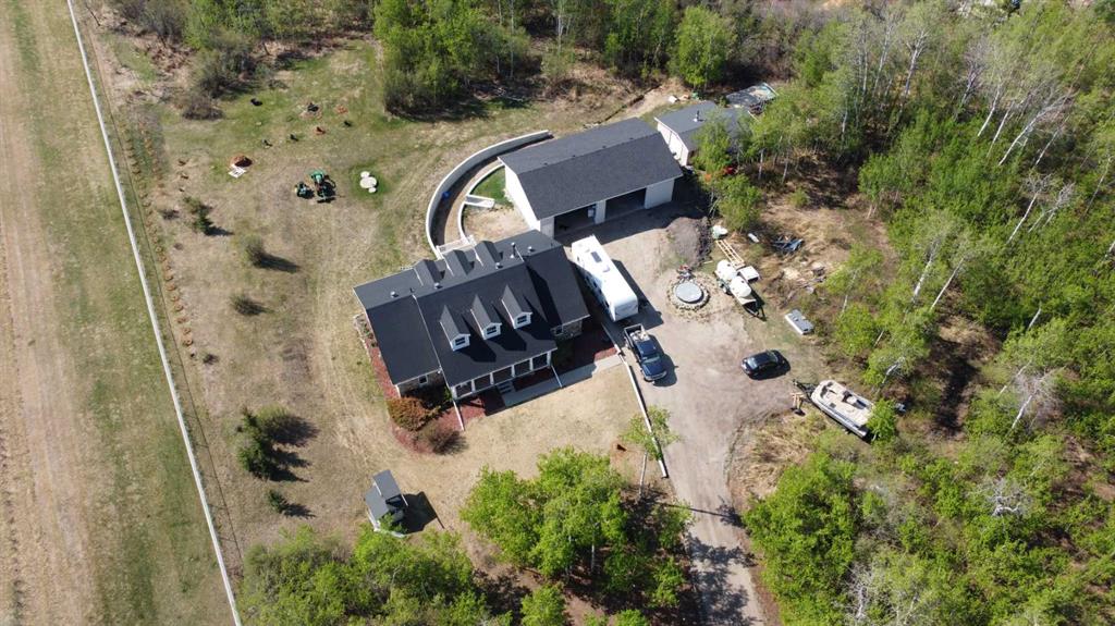 Country living just minutes from the city, this private, tree-surrounded acreage is located only 5 minutes from Grande Prairie and offers the space, freedom, and upgrades Northern Alberta buyers are searching for. Follow the winding driveway to a beautifully updated country-style 7 bedroom, 3 bathroom family home with over 1,800 sq ft on the main floor alone, featuring a bright open living room, dining area, and kitchen with granite countertops added in 2024 and professionally installed vinyl plank flooring throughout the main living areas in 2024. The main level also includes three bedrooms including the primary, two bathrooms, and main floor laundry. Upstairs you’ll find three large bedrooms and a full 4-piece bathroom, perfect for kids, guests, or home office space. The fully finished walk-out basement is massive and built for true acreage living with a dedicated wood stove room featuring a Drolet wood stove, a huge 56’ x 12’ recreation room, a seventh oversized bedroom, a storage room with shelving, and a large mechanical room with additional storage, plus a cold room under the deck ideal for chopping, stacking, and storing firewood. A major highlight of the property is the custom built 30’ deep by 50’ wide heated garage with two 10’ overhead doors, wired for a welder and compressor with extra plugs and lighting, making it ideal for toys, tools, or a home-based business. Outside, enjoy minimal maintenance with only about an acre of lawn to mow while the rest of the property remains peaceful natural bush with trails throughout, complemented by over 10 apple and pear trees, haskap bushes, more saskatoons than you can count, and over 50 privacy trees planted. The acreage offers plenty of parking with room for more, pavement right to the driveway, and is fully serviced with electricity, natural gas, and fiber optic internet. Major updates include new shingles in 2023 and a new furnace in 2021 that is prepped for air conditioning. Water is simple and cost-effective with a large cistern holding over 18 cubes, a digital water monitoring system with dual alerts, and a water trailer included. Zoned CR-2 with no restrictive covenants, this property offers the privacy, flexibility, and lifestyle acreage buyers in Northern Alberta truly value. This acreage has a septic treatment plant that was pumped and serviced January 28,2026 and fireplace was wett certified Jan 29,2026. Please click on the 3D or multimedi linc to view the 3D virtual tour, brochure in supplements or click on the brochure linc.