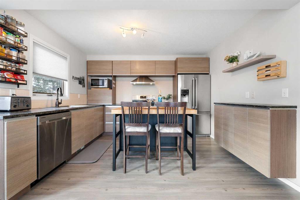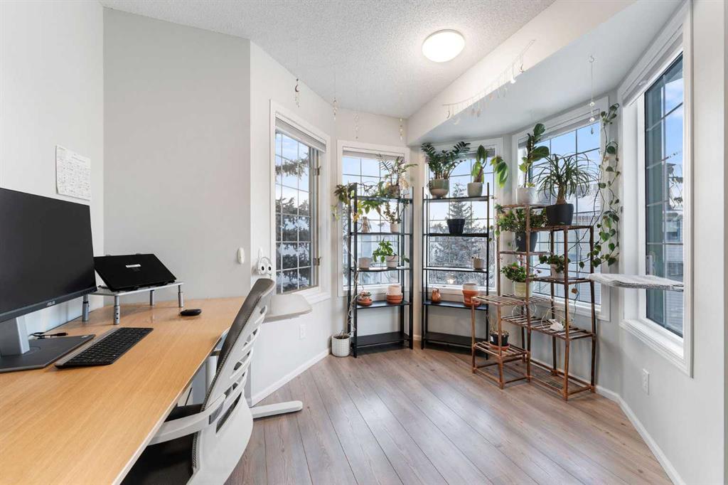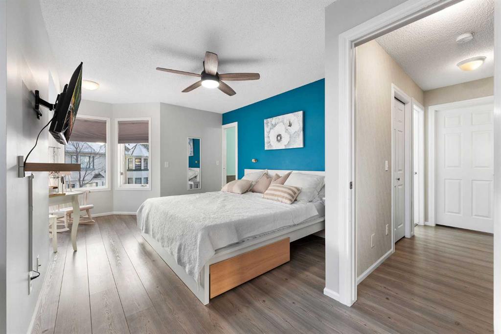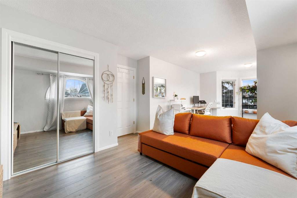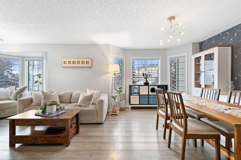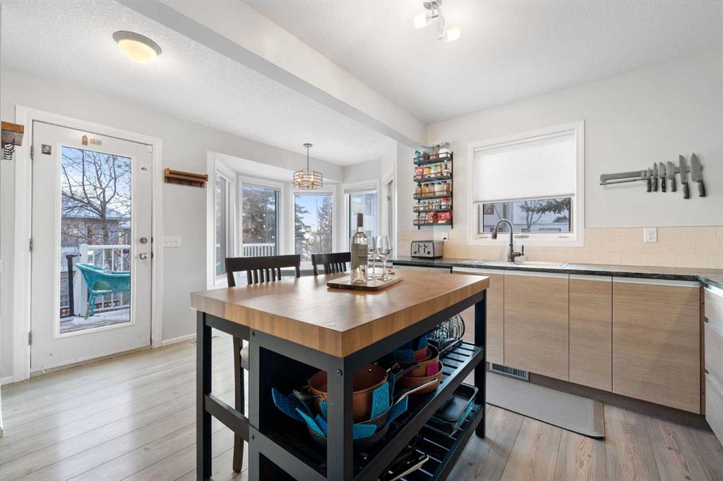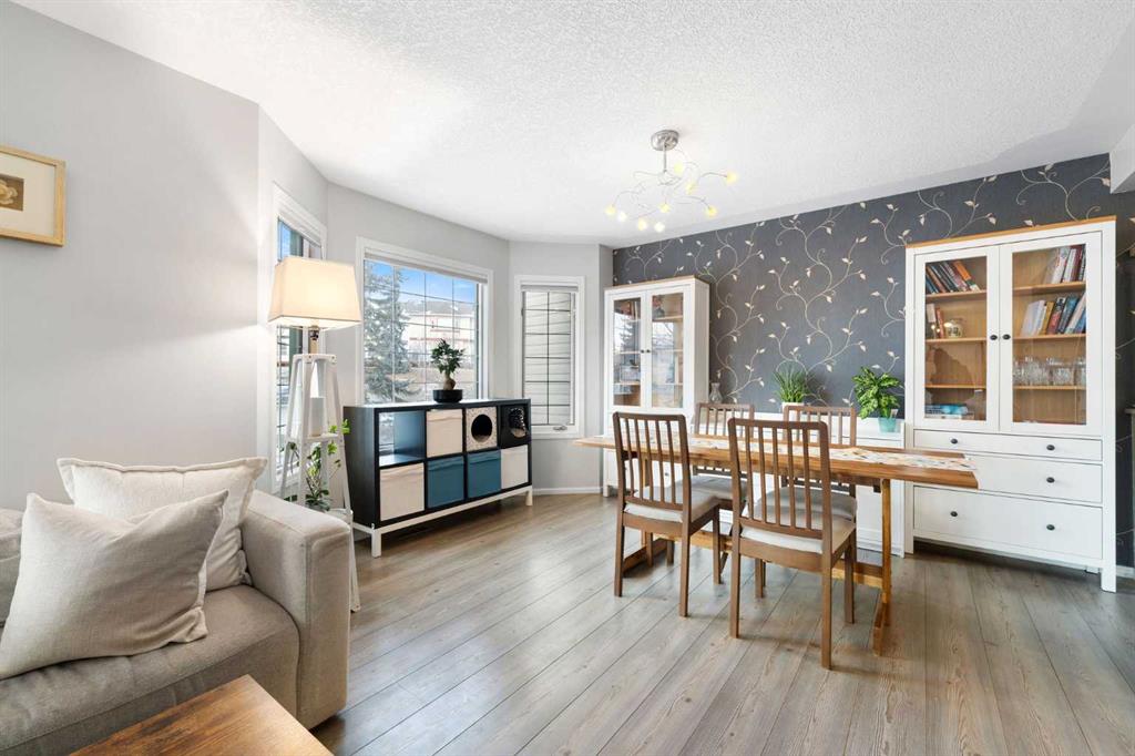 **open House Sunday Feb 1st 12:00-4:00** 2 bedroom corner unit townhome in sought after Patterson, highly updated and well maintained. End unit with large bay windows allowing tons of natural light throughout. Vinyl plank flooring runs through all levels. The fully renovated kitchen includes modern cabinetry, a full built in coffee bar, and newer stainless steel appliances. The dining area sits in a bayed turret and opens onto the rear balcony with a gas line. The living room features a gas fireplace and functional layout for everyday living. A 2 piece powder room and main floor laundry complete this level. Upstairs offers two spacious bedrooms. The primary bedroom includes a walk in closet and direct access to the 4 piece bathroom with soaker tub and separate shower. The second bedroom comfortably fits a bedroom setup with additional space for an office. Ground level access leads to a double garage with side by side parking, a rare feature in the complex. The garage includes a heater sold as is, a workstation, and access to a large heated storage and mechanical room. Capilano Gardens is a well managed complex with low condo fees. Recent updates include a new roof in 2018, refreshed decks, and repainted garage door trims. Parks, pathways, schools, Winsport, and Calgary Farmers Market West are all nearby, with easy access to downtown and the mountains.