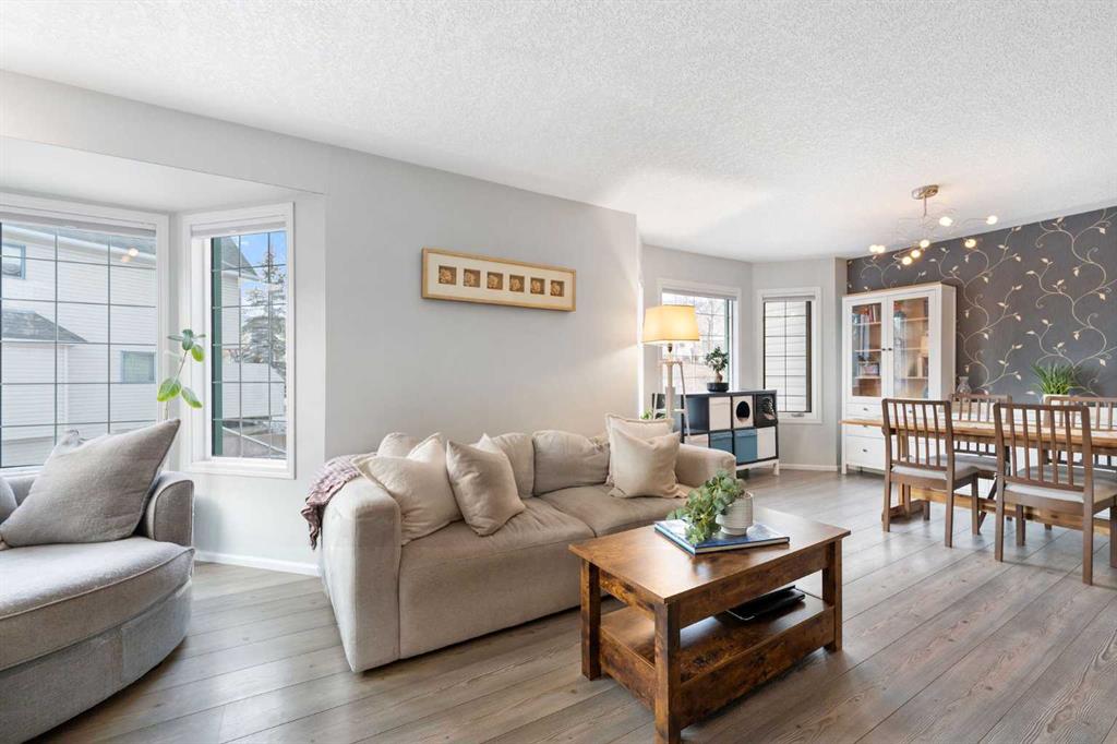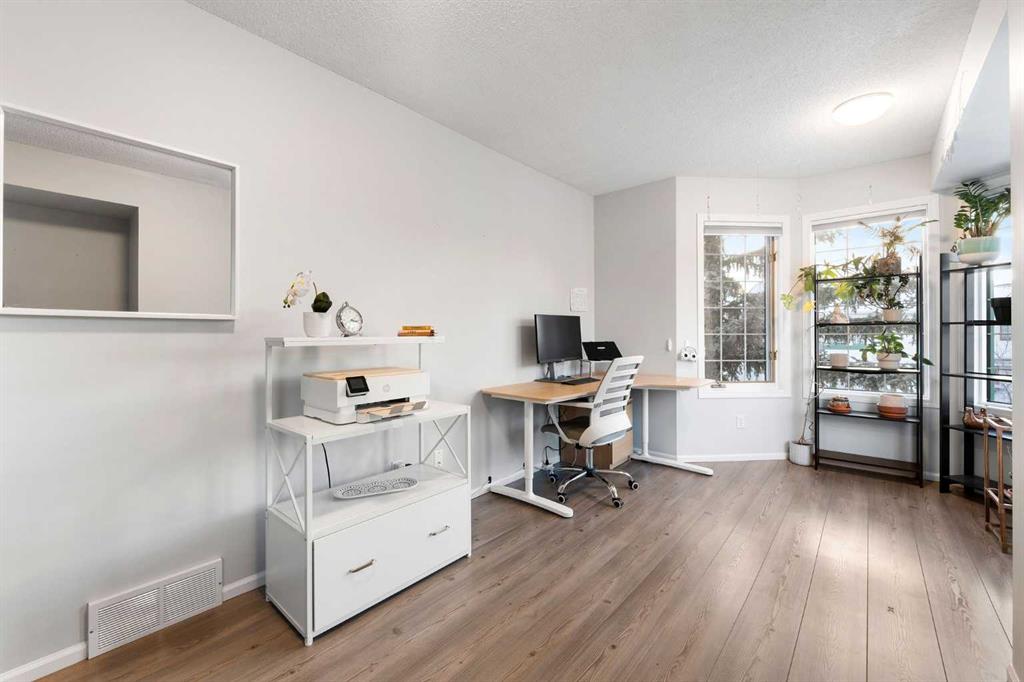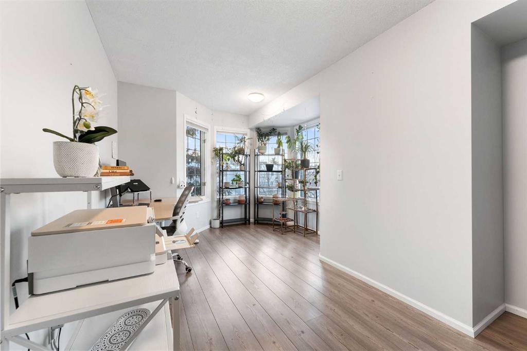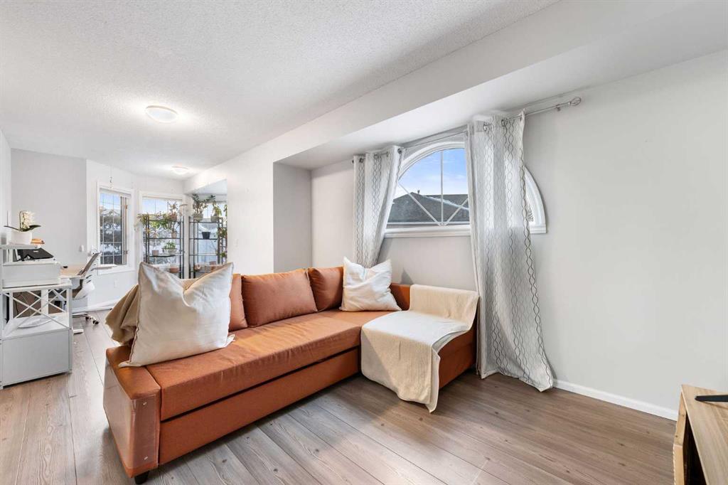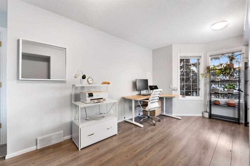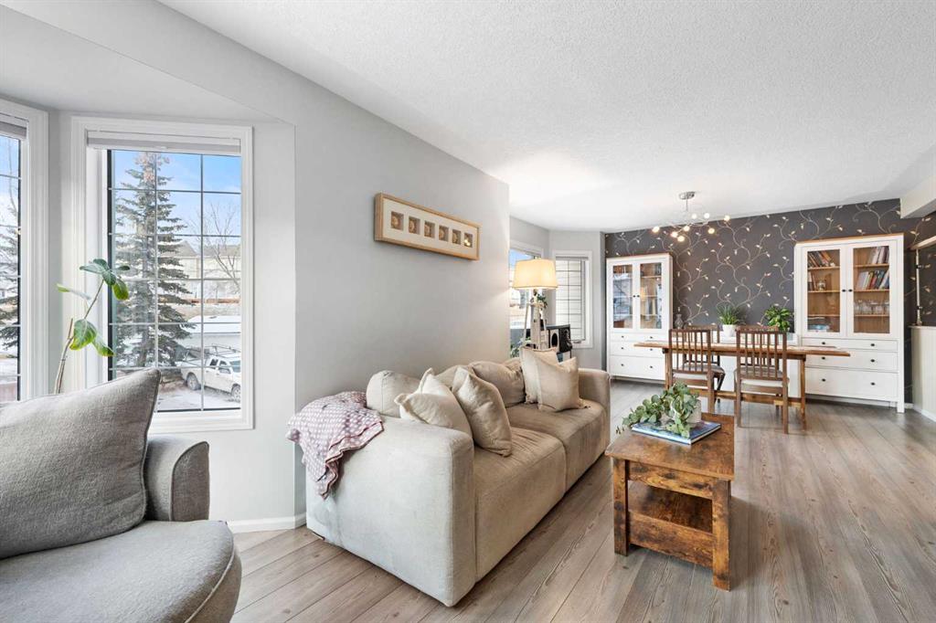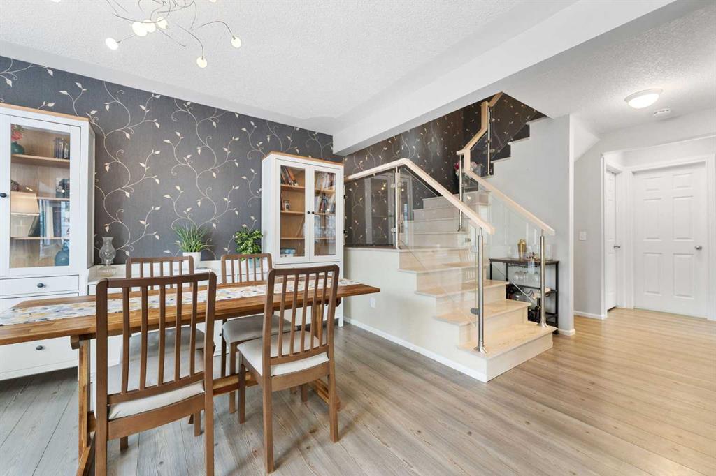 **open House Sunday Feb 1st 12:00-4:00** 2 bedroom corner unit townhome in sought after Patterson, highly updated and well maintained. End unit with large bay windows allowing tons of natural light throughout. Vinyl plank flooring runs through all levels. The fully renovated kitchen includes modern cabinetry, a full built in coffee bar, and newer stainless steel appliances. The dining area sits in a bayed turret and opens onto the rear balcony with a gas line. The living room features a gas fireplace and functional layout for everyday living. A 2 piece powder room and main floor laundry complete this level. Upstairs offers two spacious bedrooms. The primary bedroom includes a walk in closet and direct access to the 4 piece bathroom with soaker tub and separate shower. The second bedroom comfortably fits a bedroom setup with additional space for an office. Ground level access leads to a double garage with side by side parking, a rare feature in the complex. The garage includes a heater sold as is, a workstation, and access to a large heated storage and mechanical room. Capilano Gardens is a well managed complex with low condo fees. Recent updates include a new roof in 2018, refreshed decks, and repainted garage door trims. Parks, pathways, schools, Winsport, and Calgary Farmers Market West are all nearby, with easy access to downtown and the mountains.