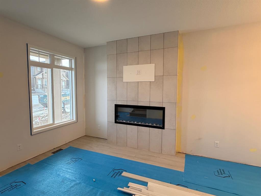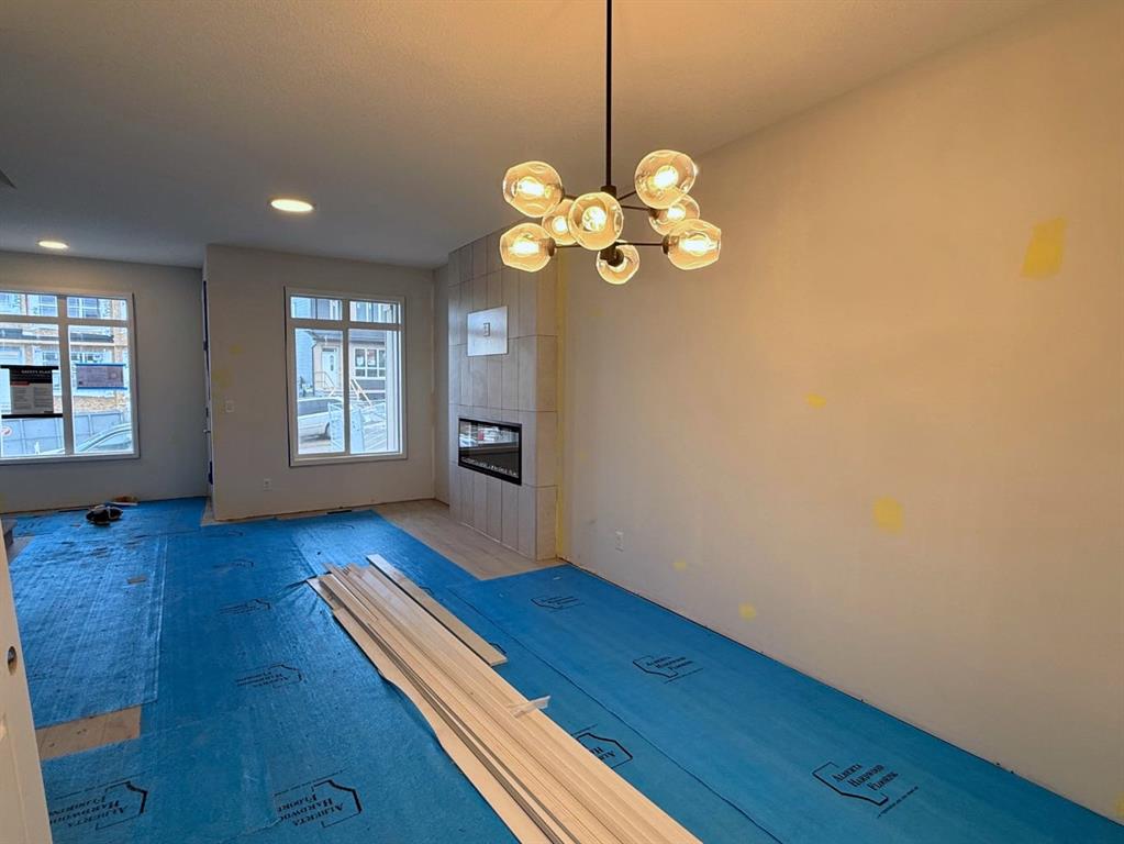 Welcome to this brand new MORRISON HOMES 1,374 sq. ft, Indigo II model home in Glacier Ridge, thoughtfully designed for modern living and future flexibility. Featuring 3 bedrooms, 2.5 bathrooms, and a sunny southeast-facing backyard, this home offers a bright, functional layout in a growing, family-friendly community. The main floor showcases upgraded laminate flooring, and an open-concept great room anchored by a sleek electric fireplace, creating a warm and inviting space to relax or entertain. The gourmet kitchen is a standout with quartz countertops, stainless steel appliances, stylish cabinetry, and plenty of prep space with a spacious island —perfect for everyday living and hosting alike. Upstairs, you’ll find upgraded carpet, a spacious primary retreat with a private ensuite featuring quartz counters, dual sinks and shower, plus two additional bedrooms and a full bathroom—ideal for families, guests, or a home office setup. Washer and dryer are included for added convenience upstairs. The home also features an Exterior Side Entry, 9’ foundation, rough-ins for a future secondary studio suite (with City of Calgary permits and approvals), offering excellent potential for added value or income opportunities. Step outside to enjoy the 10’ x 10’ deck with stairs to grade, complete with a gas line for a future BBQ, and a 20’ x 22’ concrete parking pad ready for your finishing touch. Ideally located close to parks, the community centre, and quick access to 144 Avenue, this home blends comfort, style, and smart planning in one exceptional package. A fantastic opportunity to own brand new in Glacier Ridge—move in and make it yours.