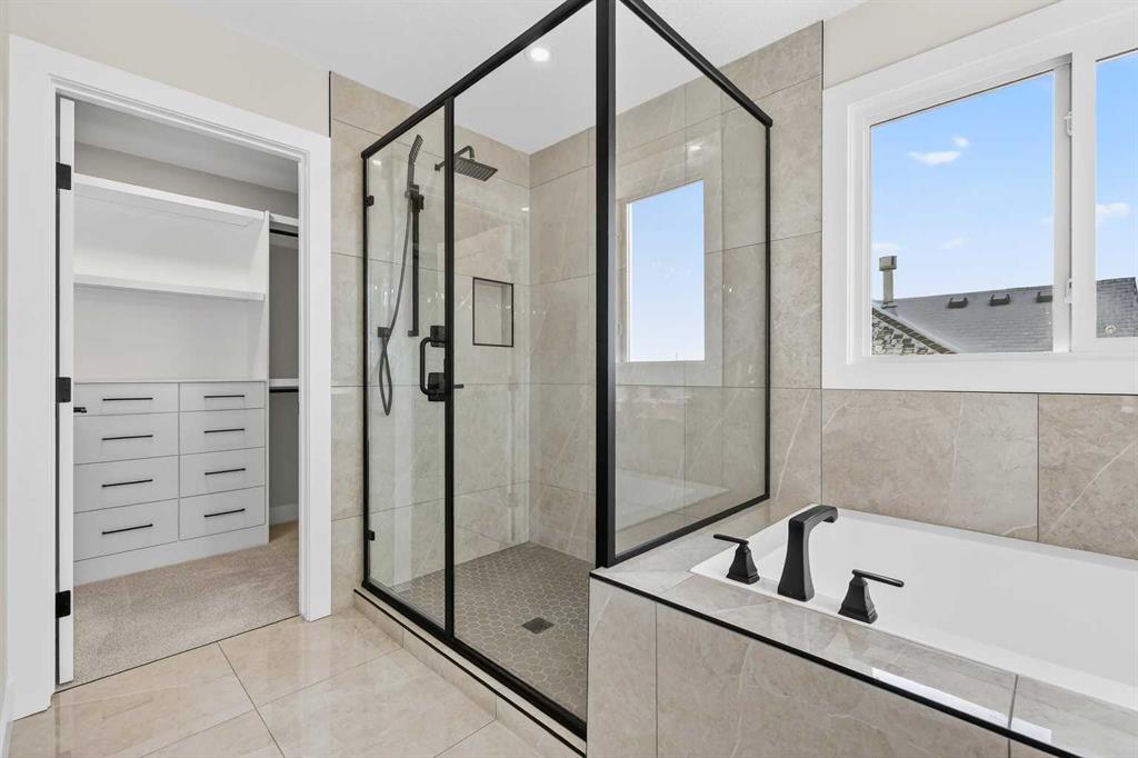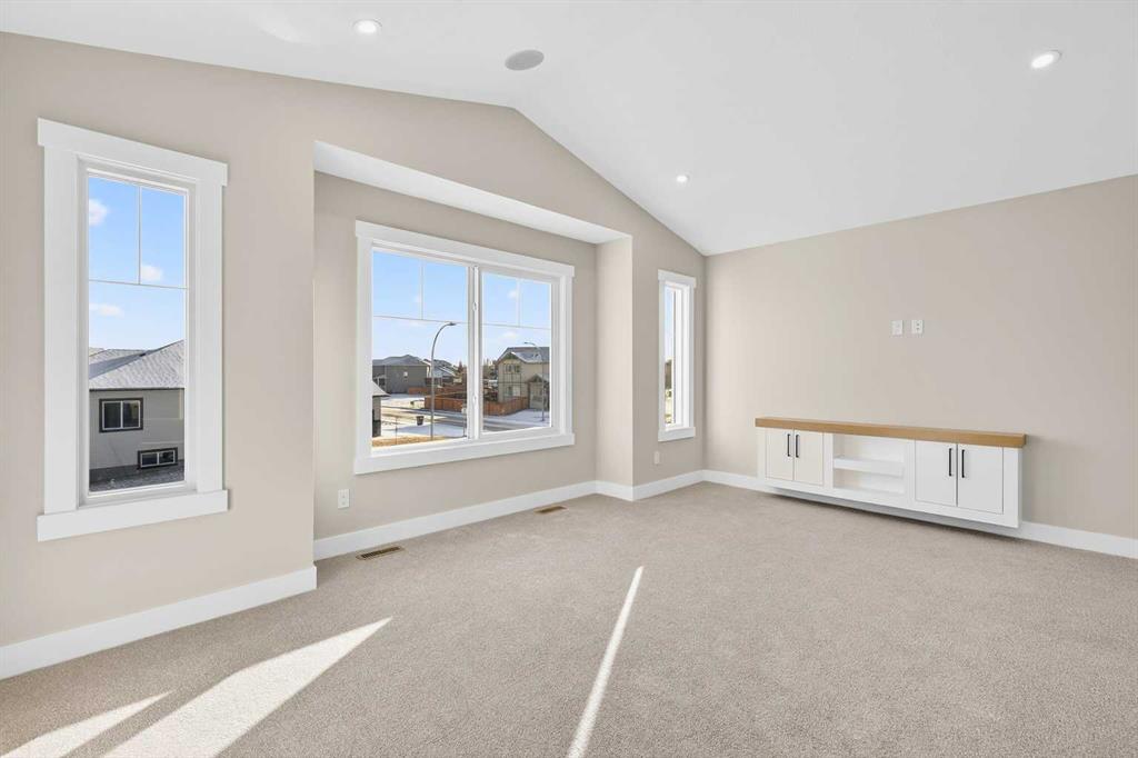 Welcome to 180 Wildrose Drive, nestled in the vibrant and family-friendly community of Wildflower, where scenic pathways, beautiful parks, and peaceful living come together. This stunning, move-in ready home welcomes you with a spacious entryway and soaring ceilings that flood the space with natural light. The main floor features durable LVP flooring complemented by ceramic tile in key areas, blending style with everyday practicality. The open-concept layout is ideal for gathering with loved ones and creating lasting memories. The kitchen is beautifully appointed with ceiling-height cabinetry, quartz countertops, a gas cooktop, built-in oven and microwave, and a gorgeous west-facing view. With 9 ft ceilings on both the main floor and basement, along with 8 ft doors throughout, the home feels bright, airy, and elevated. The living room is a true showstopper, highlighted by a striking feature wall with an electric fireplace and sleek tile surround, creating the perfect space to relax and unwind. Upstairs, the bonus room boasts vaulted ceilings and offers a versatile space ideal for board game nights, a toy room, or family movie nights. The primary suite serves as a private retreat, complete with a tray ceiling, designer feature wall, and a luxurious 4-piece ensuite showcasing a soaker tub, a spacious walk-in shower, and heated floors for year-round comfort. The walk-in closet features custom MDF shelving, thoughtfully designed for both organization and style. Step outside to a private backyard with no rear neighbours, offering exceptional peace and privacy. The yard is not landscaped, providing a blank canvas to design the outdoor oasis of your dreams, whether that is a garden, patio, or play space. The front yard includes sod and a tree provided by the builder, giving the home instant curb appeal. The garage is equipped with a gas line, making it easy to add a heater in the future for added comfort during colder months. A separate side entrance to the basement offers excellent potential for future development and customization to suit your lifestyle. Contact your agent today!