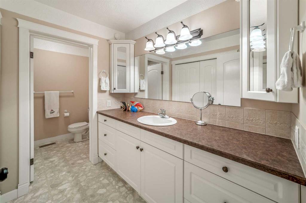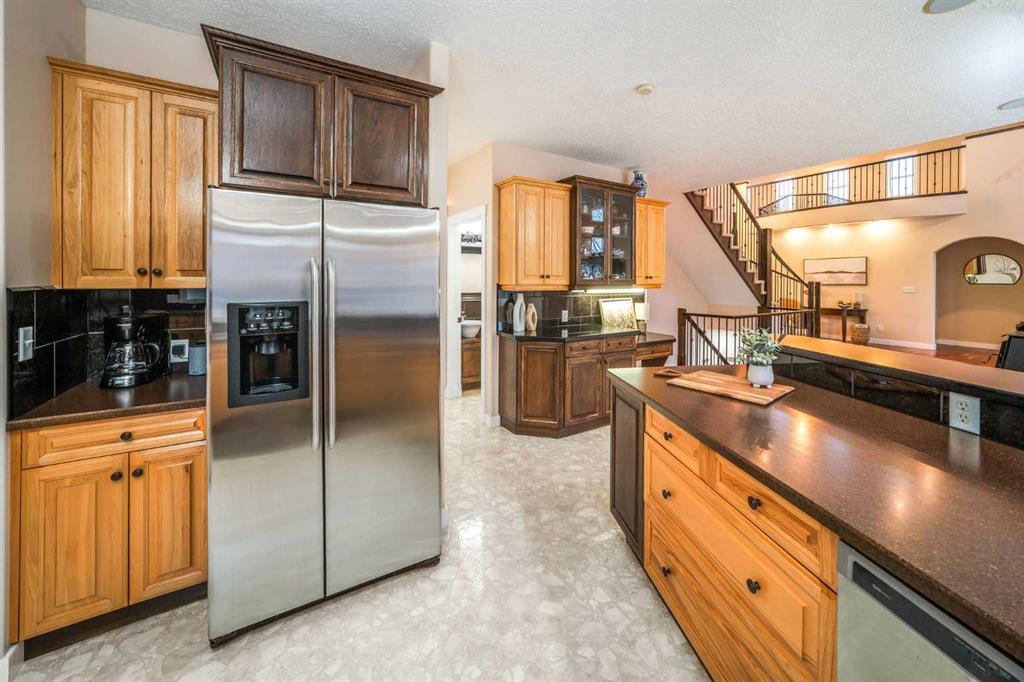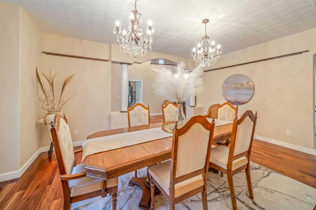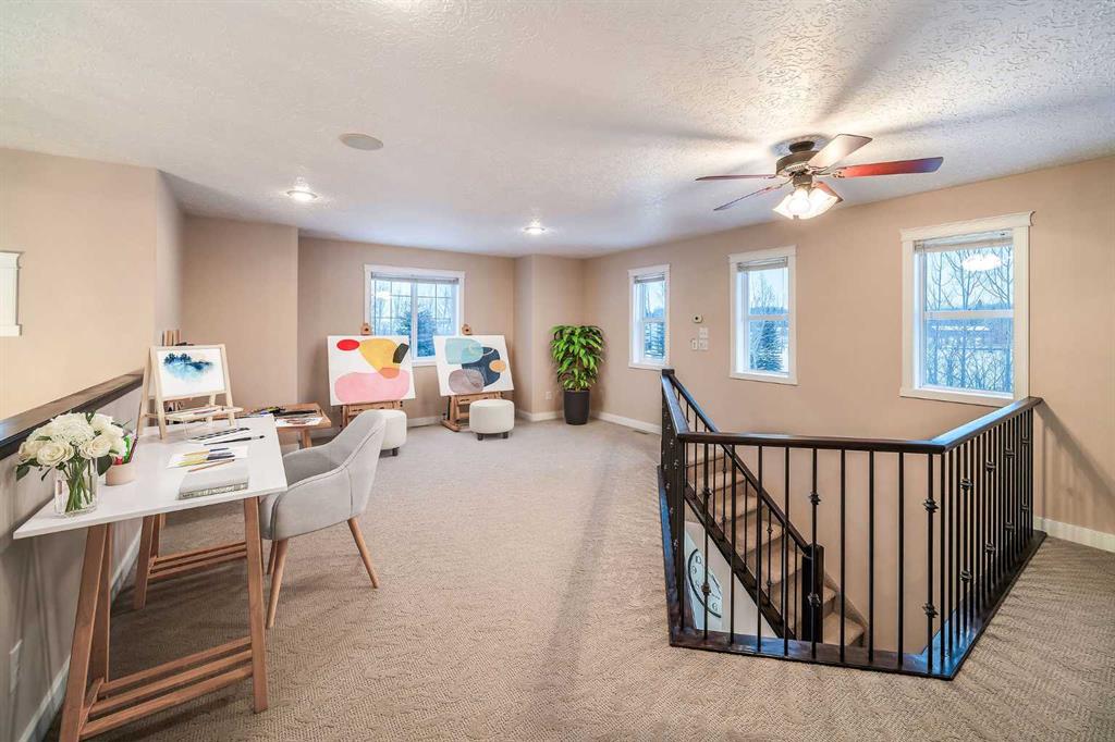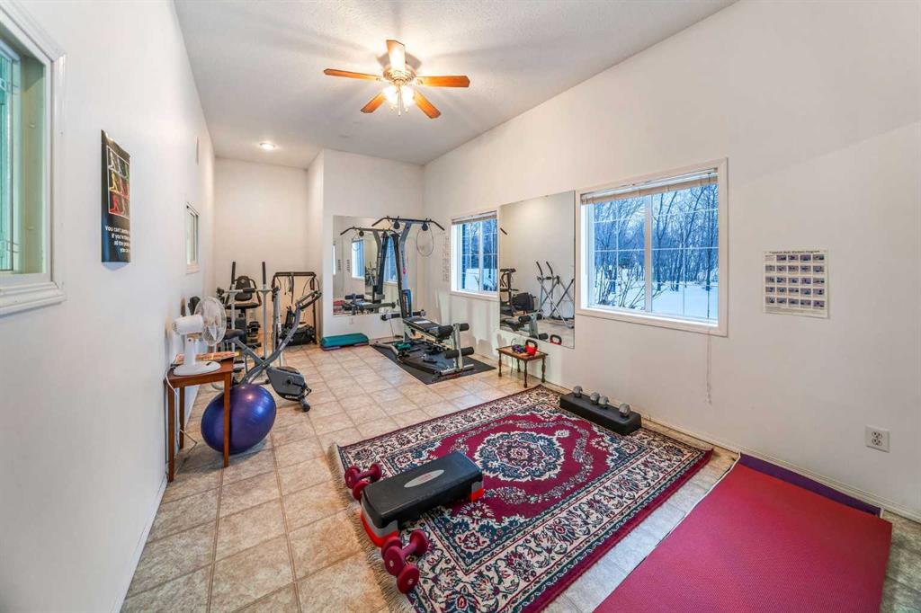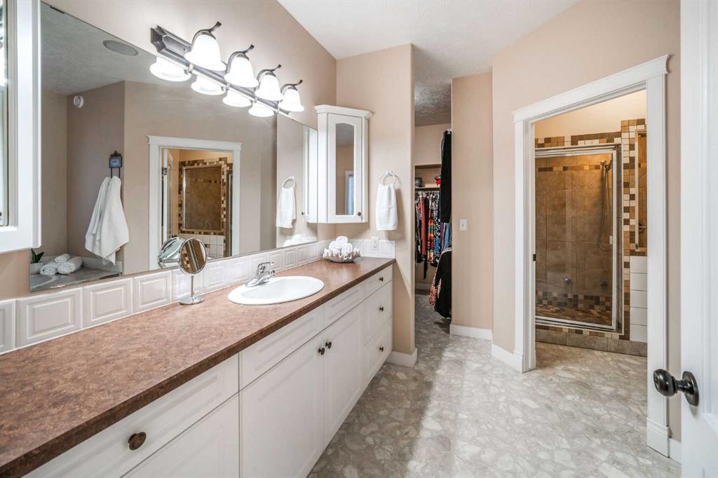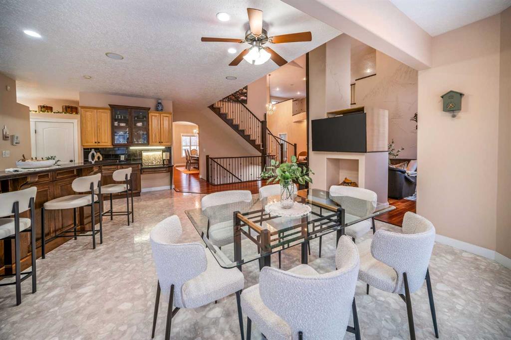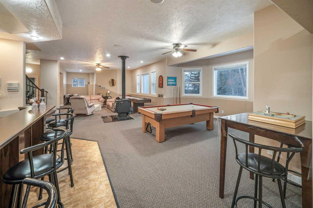 Perched high above the Red Deer River in the prestigious enclave of Olinda Meadows, this remarkable estate acreage offers a lifestyle rooted in space, privacy, and everyday ease - just ten minutes from Red Deer shopping, dining, and services, with Canyon Ski Lodge and Parkland Nurseries only moments away for year-round outdoor enjoyment. Set on 3.01 beautifully treed acres, the property is introduced by a gated, meandering driveway that winds through mature trees and opens to a home that feels both commanding and welcoming. Elevated topography delivers sweeping views, dramatic skies and constant connection to nature, with birdlife and wildlife as part of the daily rhythm. With over 10,000 square feet of developed living space, this residence was purpose built for families who value room to gather, entertain and grow. Soaring ceilings, beautiful hardwood flooring and expansive windows create an open and airy feel throughout. A formal dining room sets the stage for special occasions, while the bright dining nook offers a relaxed space for everyday meals and opens directly onto a sprawling deck that spans the width of the home, perfect for summer gatherings, dining al fresco or enjoying a quiet morning coffee surrounded by treetops. The kitchen is designed for function and flow with a walk in corner pantry, generous cabinetry and seamless connection to the main living areas. A main floor home office, dedicated laundry and sewing room, and thoughtfully designed storage including multiple storage rooms add to the home’s exceptional livability. The flex loft overlooking the main level provides additional space for work, play or retreat. Two wood burning stoves anchor the home with warmth and comfort, creating cozy gathering spaces year round. The walkout lower level mirrors the lifestyle above with expansive recreation areas, custom bar and theatre room, while offering shaded outdoor enjoyment on warm days, allowing you to choose how and where you take in the surrounding beauty. A gym area in the mezzanine of the impressive shop adds yet another layer of versatility. A true standout, the massive attached shop with soaring ceilings accommodates a motorhome, multiple vehicles, workshops, storage and hobbies with ease, ideal for enthusiasts and business owners alike. RV parking and services further enhance the lifestyle. Built with pride and exceptional care, upgrades include newer exterior siding, shingles, 2x8 wall construction with staggered studs, forced air and hot water heating with dual boilers and fan coils, two air conditioning units, paved circular drive, security gate and camera system. Unique artistic wall engravings reflect the craftsmanship and character found throughout, reinforcing that this is a home meant to be experienced in person. Lovingly maintained by the original owners who built it from the ground up, this is a rare opportunity to secure a legacy acreage that blends privacy, quality construction and convenience into one extraordinary forever home.