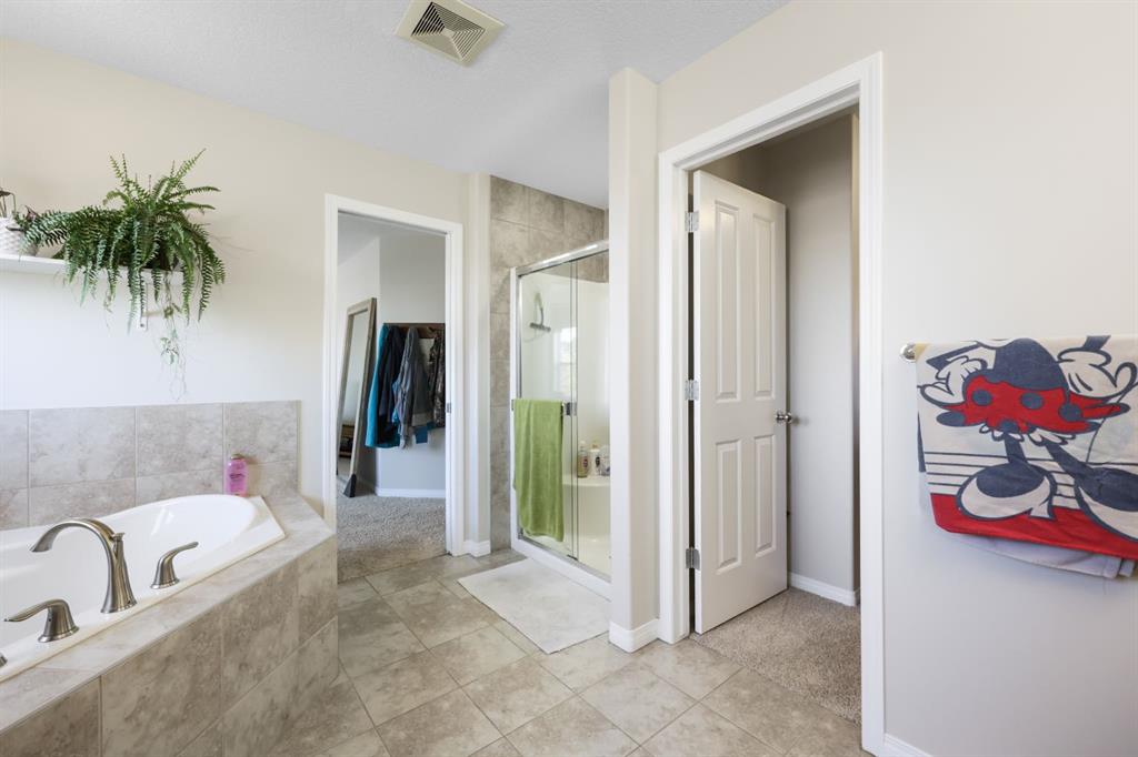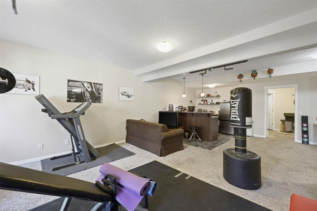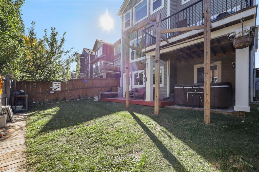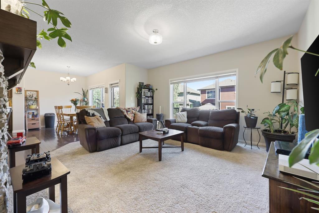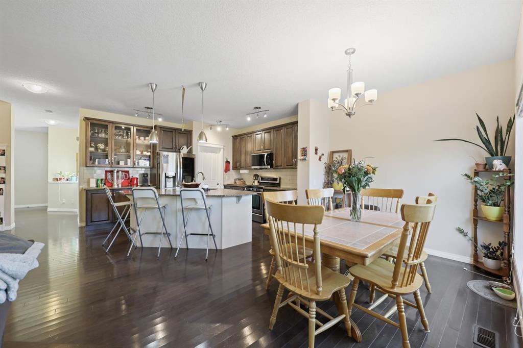 This executive two story WALK OUT home has 3 bedrooms, laundry, and a family room on the upper level with large windows to let in lots of natural light. The main floor features an open concept layout with a kitchen hosting granite countertops, a walk though pantry a spacious living room and a formal dining room, all enhanced by a double sided gas fireplace framed in exquisite stonework. A deck adjacent to the kitchen suitable for an outdoor patio, includes a gas BBQ hook up. The kitchen is equipped with a gas stove, refrigerator featuring a water/ice dispenser with an illuminated front door, and a newly installed dishwasher. The basement contains a private "mother in law" living area with its own laundry facilities, private entrance and privacy door from upstairs. The residence is warmed with forced air heating and cools you with AC! It also offers an attached heated double car garage with spacious back entry coat area and a significant storage room in the basement. The lower patio brings some privacy space, and a cozy sitting area Nearby walking path lead to Jumping Pound Creek, and paths to downtown.