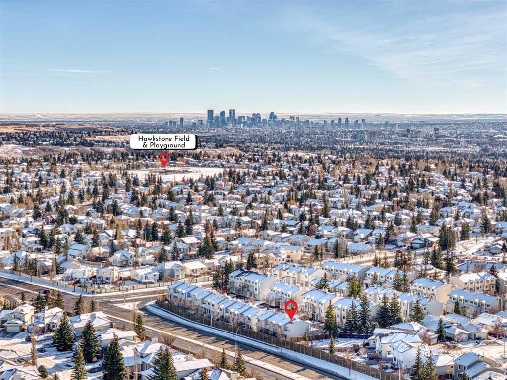 ***Open House Sunday, Feb 1, 2pm to 4pm**** Freshly painted and exceptionally well maintained, this corner end-unit townhome in Hawkstone Manor delivers over 1844 sq ft of finished living space (including basement) and outstanding value—fully move-in ready. The main and upper levels feature newly cleaned carpets in excellent condition, bamboo flooring in the living room, and tile in high-traffic areas. The well-lit kitchen is efficiently designed for everyday use, and the main floor includes a convenient half bath and a gas fireplace. Upstairs offers three bedrooms, including a spacious primary suite with a large walk-in closet and ensuite, plus two additional bedrooms and a full bathroom. The basement adds a fourth bedroom or flexible space for guests, work, or recreation. Mechanical updates include a furnace (2017) and hot water tank (2019). Additional features include an insulated single attached garage, concrete patio with no neighbours behind, and meticulous care throughout. Hawkstone Manor residents enjoy access to a clubhouse, tennis courts, and ample visitor parking adjacent to the clubhouse. Conveniently located close to schools, shopping, public transit, the LRT, Nose Hill Park, and major routes including John Laurie Blvd, Sarcee Trail, Country Hills Blvd, and Stoney Trail.