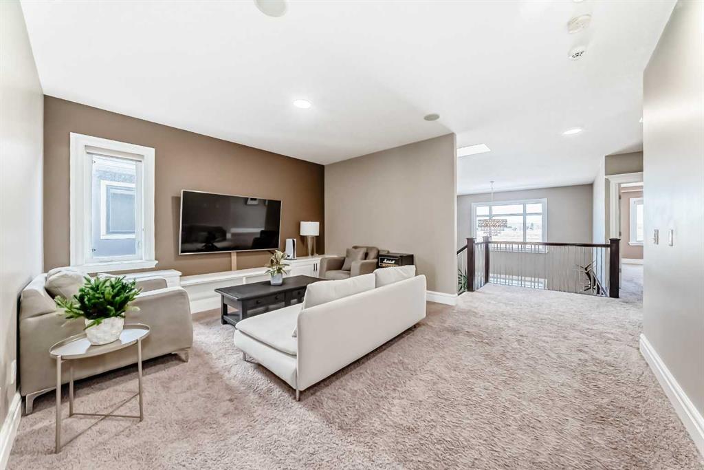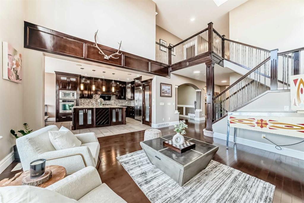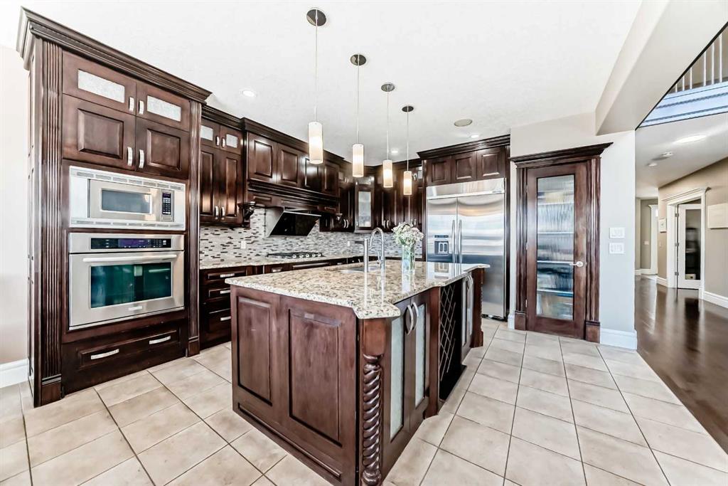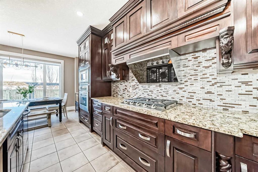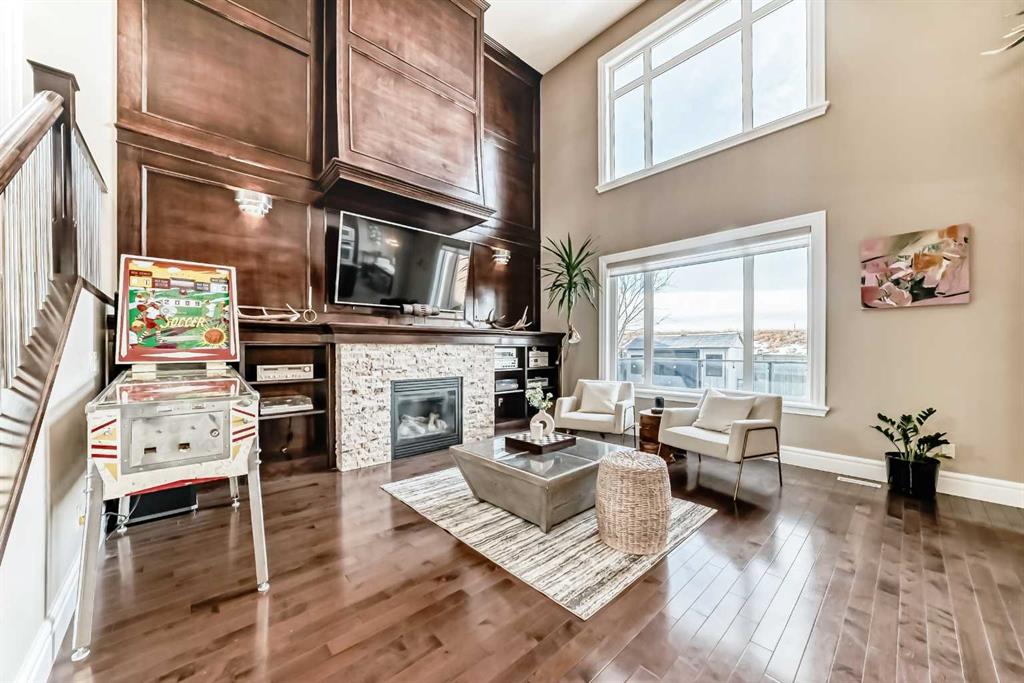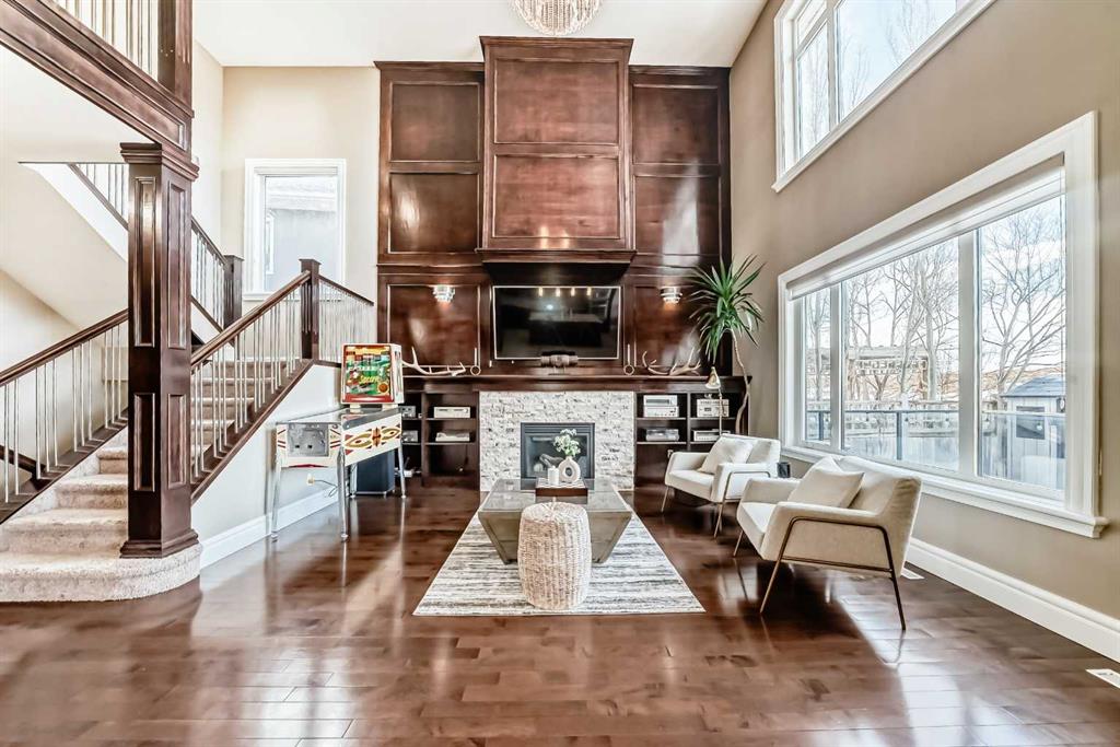 Welcome to this stunning former Show Home in the highly desirable community of Wentworth Hill SW, offering premium finishes, thoughtful upgrades, and timeless design. This beautifully maintained home features 4 bedrooms, 2.5 bathrooms, and a bright open-concept layout ideal for modern family living and entertaining. Extensive upgrades include custom trim, crown moulding, detailed woodworking, LED lighting, and built-in ceiling speakers. The main floor offers a spacious living area and a private home office, perfect for remote work. The chef-inspired kitchen showcases custom cabinetry, granite countertops, stainless steel appliances, a large central island with wine rack and beverage cooler, tiled backsplash, and a glass-top stove with built-in microwave and oven. The impressive great room features a 20-foot ceiling, oversized windows, a skylight, hardwood flooring, and a striking gas fireplace with a two-storey wood mantel, creating a bright and elegant living space.Upstairs, the primary suite includes dual closets, double vanities with granite countertops, a soaker tub, and a tiled shower. Three additional bedrooms are complemented by a media room, a full bathroom, and a convenient upper-floor laundry room. Enjoy a private backyard retreat with an oversized vinyl deck with glass railing, natural gas BBQ hookup, and a pergola—ideal for outdoor relaxation and entertaining.Recent upgrades include: FOTILE range hood fan, 5-head gas cooktop, kitchen water purification system, whole-house fresh paint, updated interior and exterior lighting, and duct cleaning. A rare opportunity to own a move-in-ready former show home in one of Calgary’s most sought-after communities.